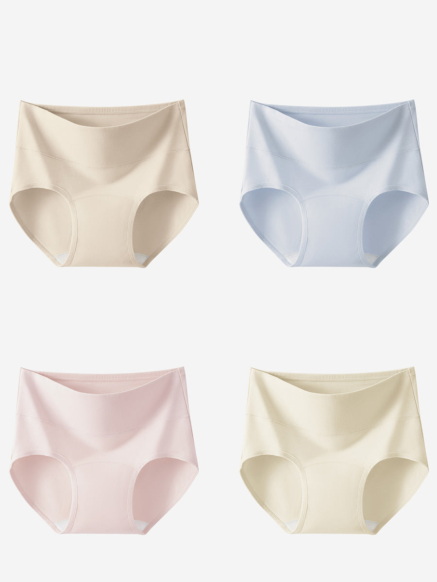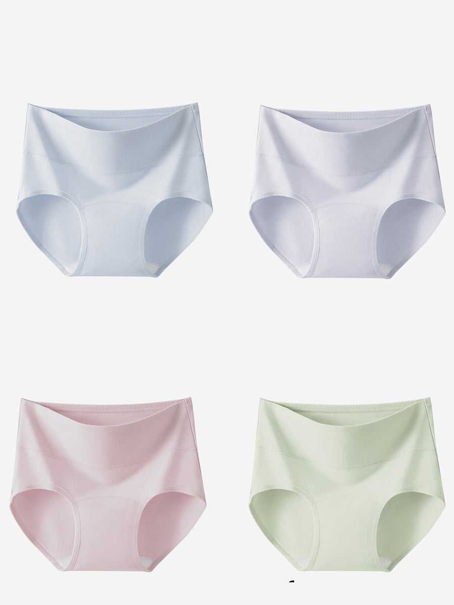 4 Pieces Women Artsy Pure Color High Waist Underwear