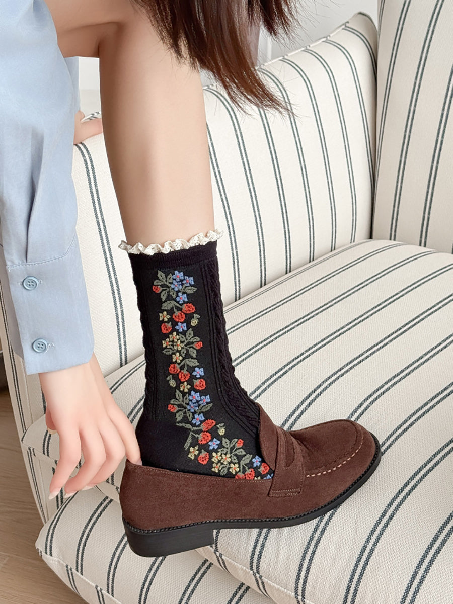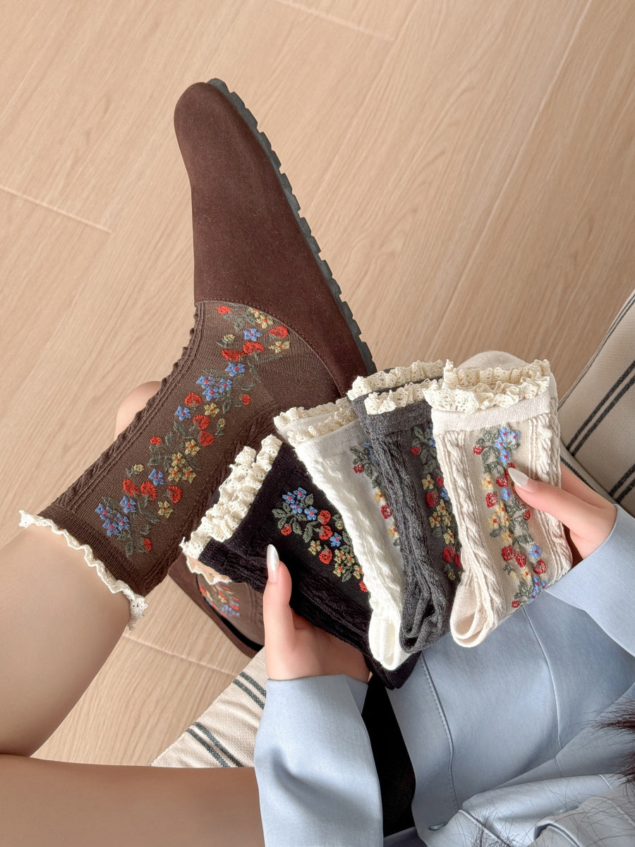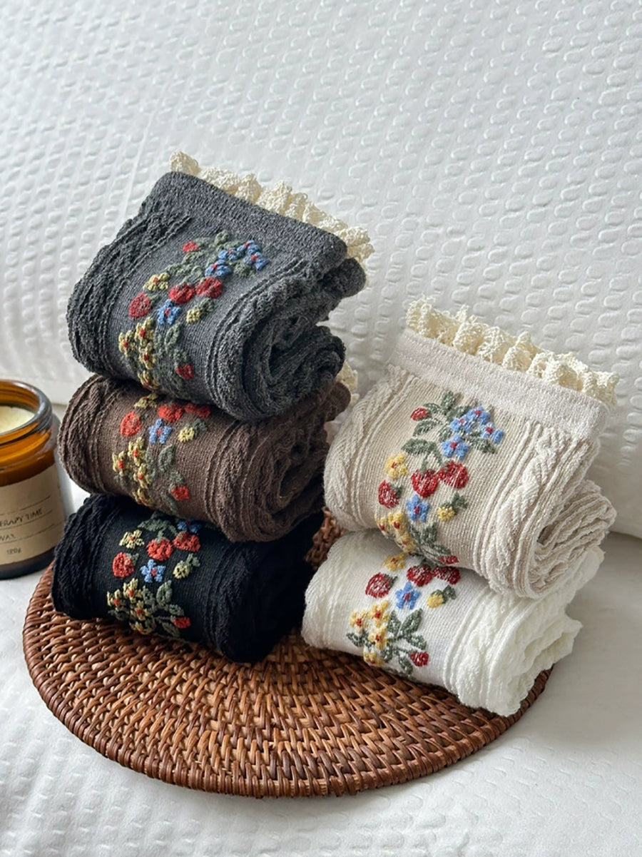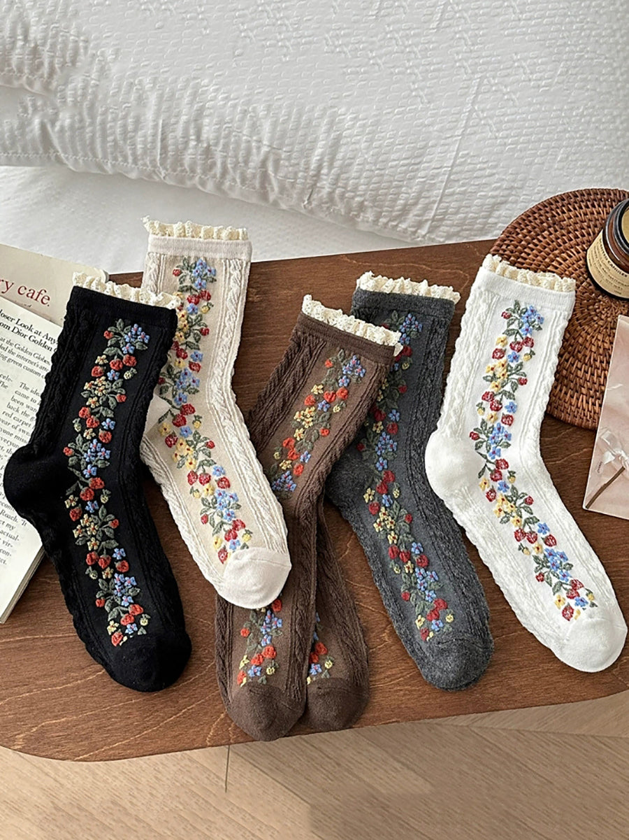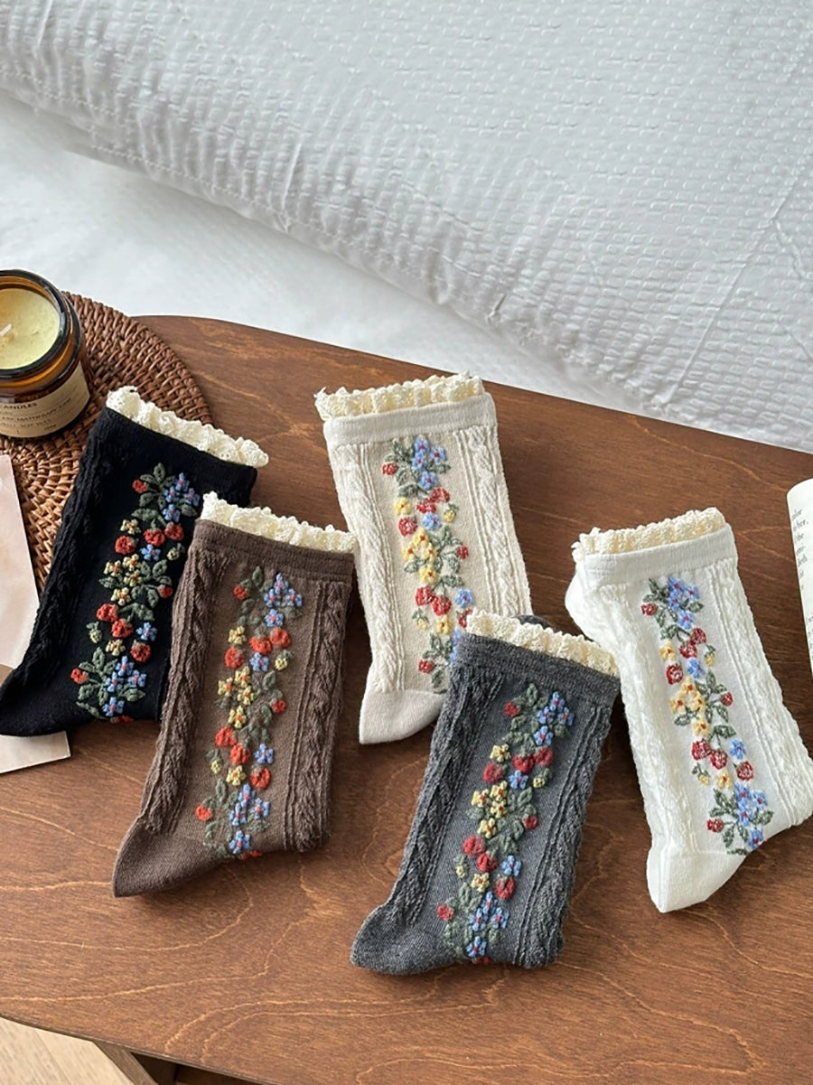 5 Pairs Women Artsy Flower Knitted Lace Socks