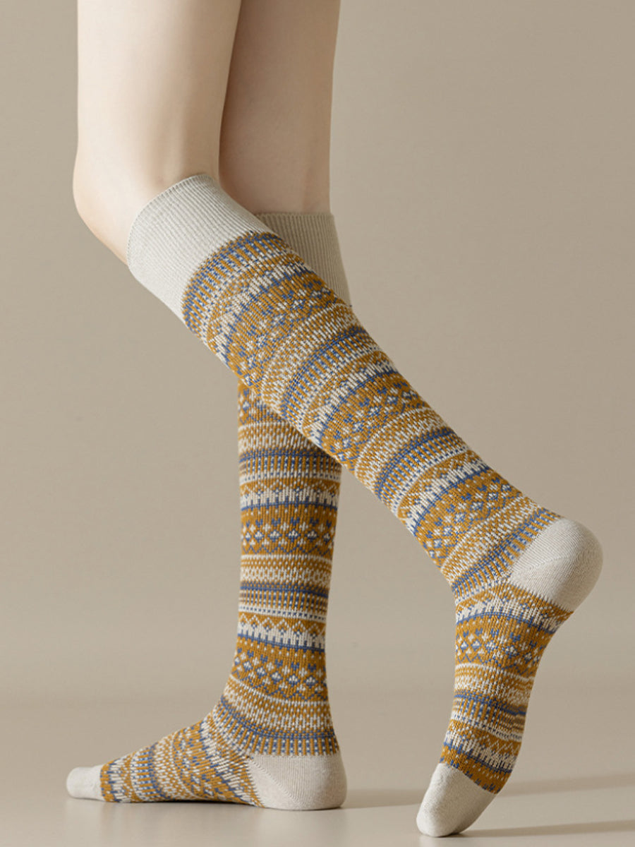 5 Pairs Women Winter Stripe Cotton Long Socks