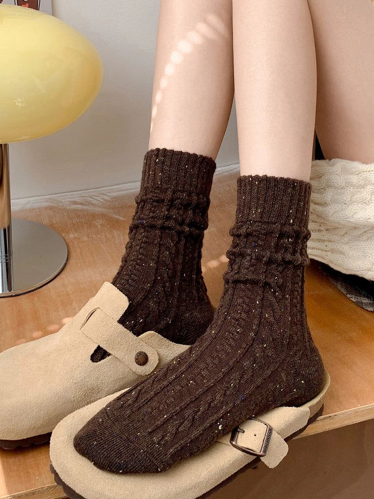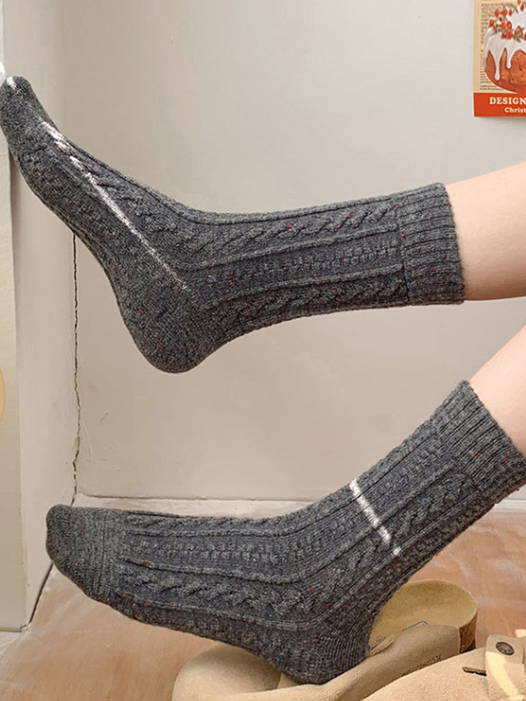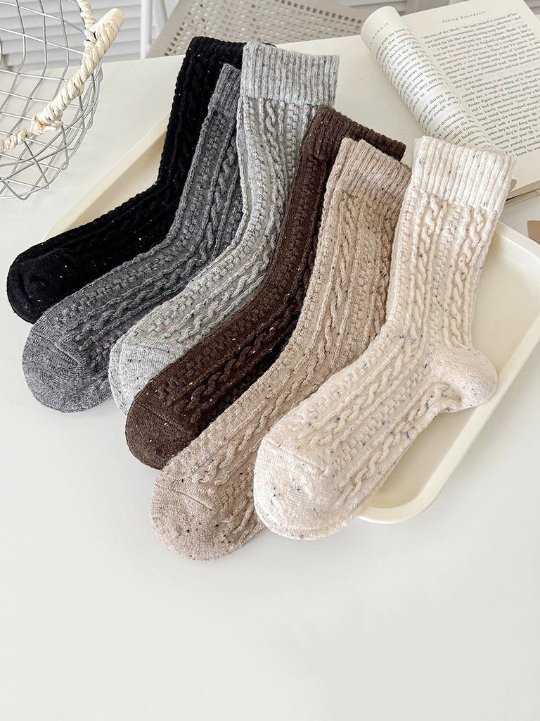 6 Pairs Women Winter Thick Wool Mid-Heel Socks