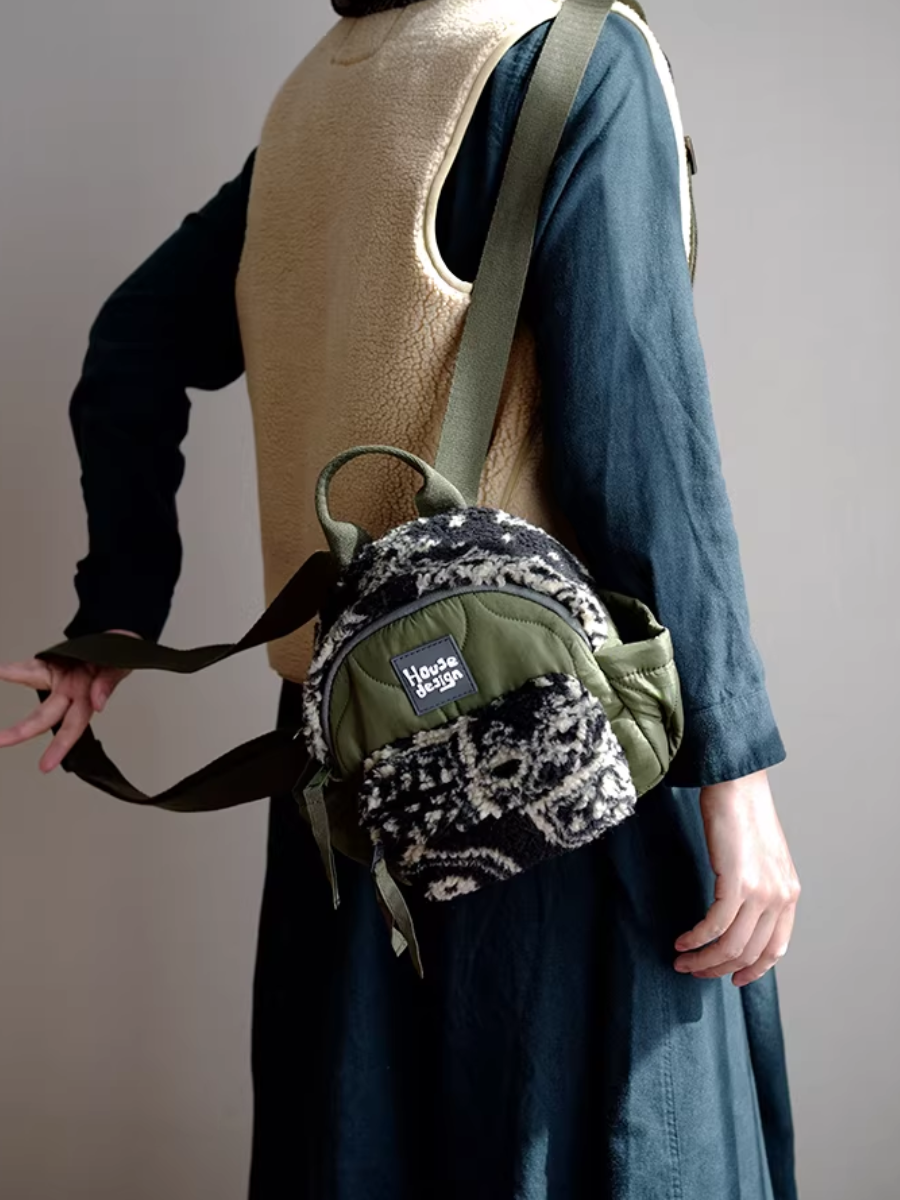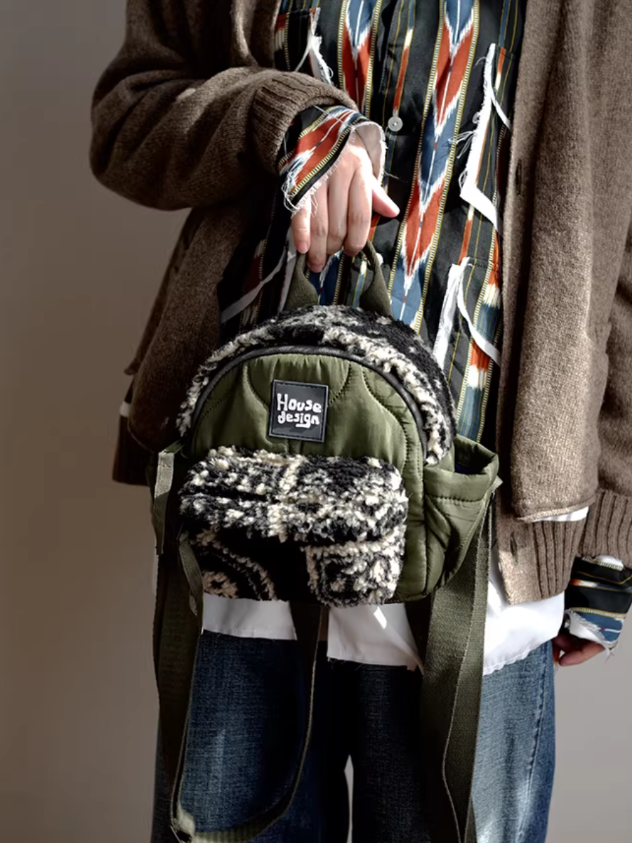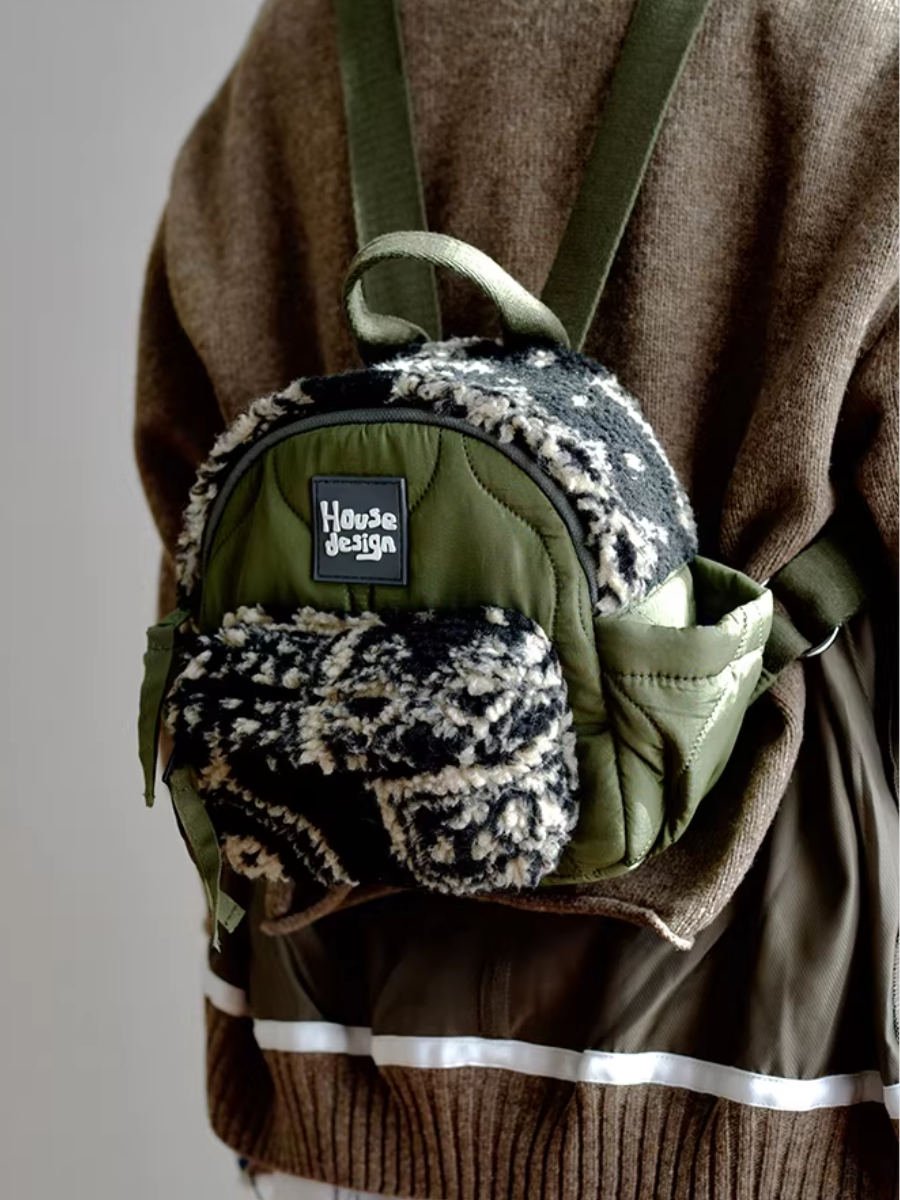 Artistic Green Fluffy Floral Spliced Mini Backpack