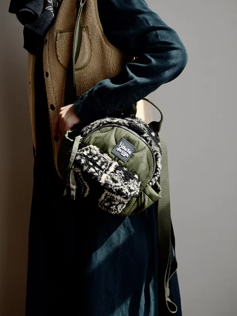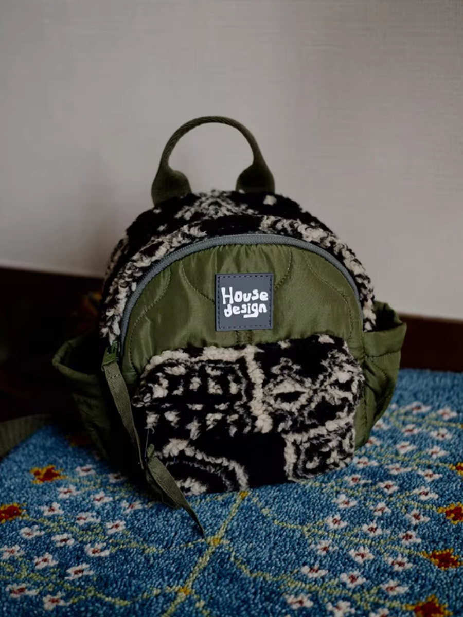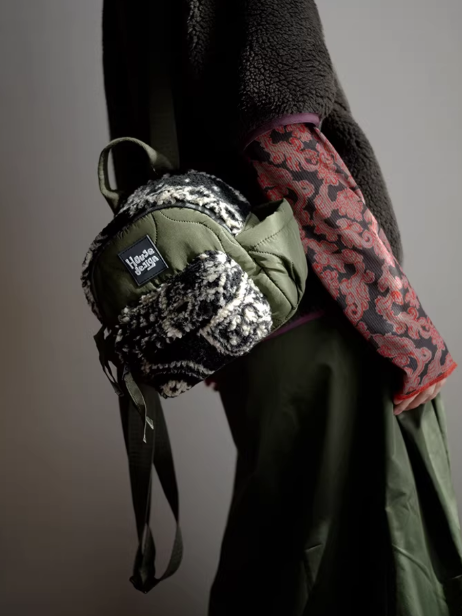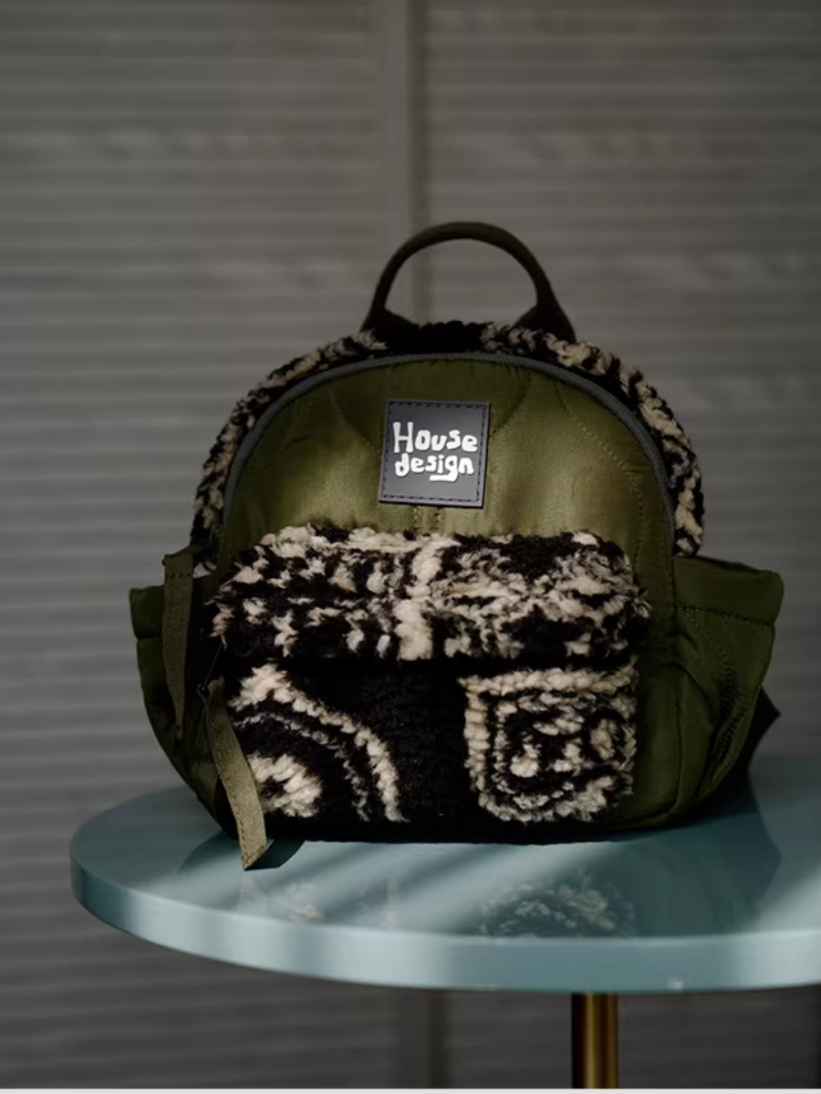 Artistic Green Fluffy Floral Spliced Mini Backpack