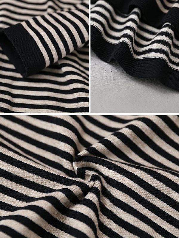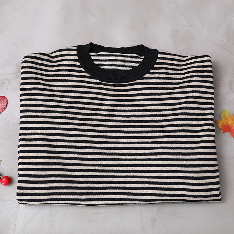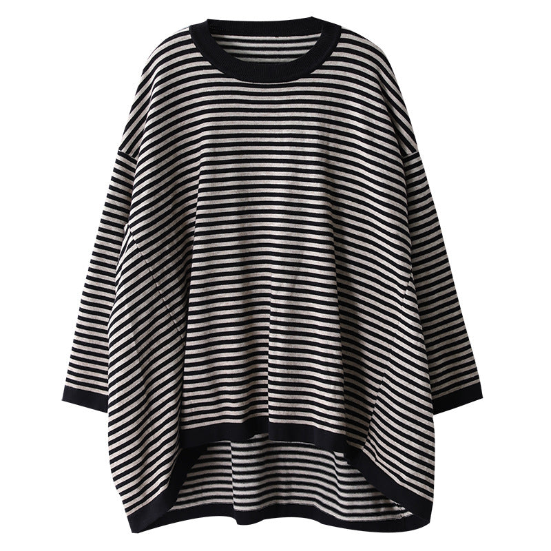 Buykud Ultra-loose Classic Striped Round Neck Sweater
