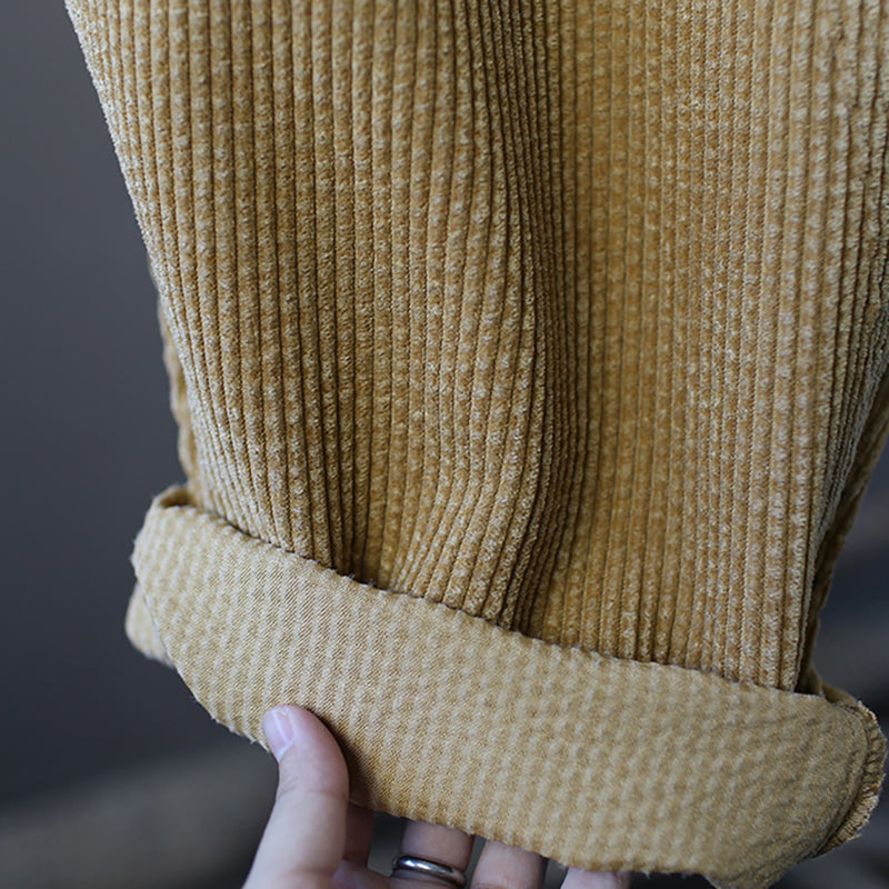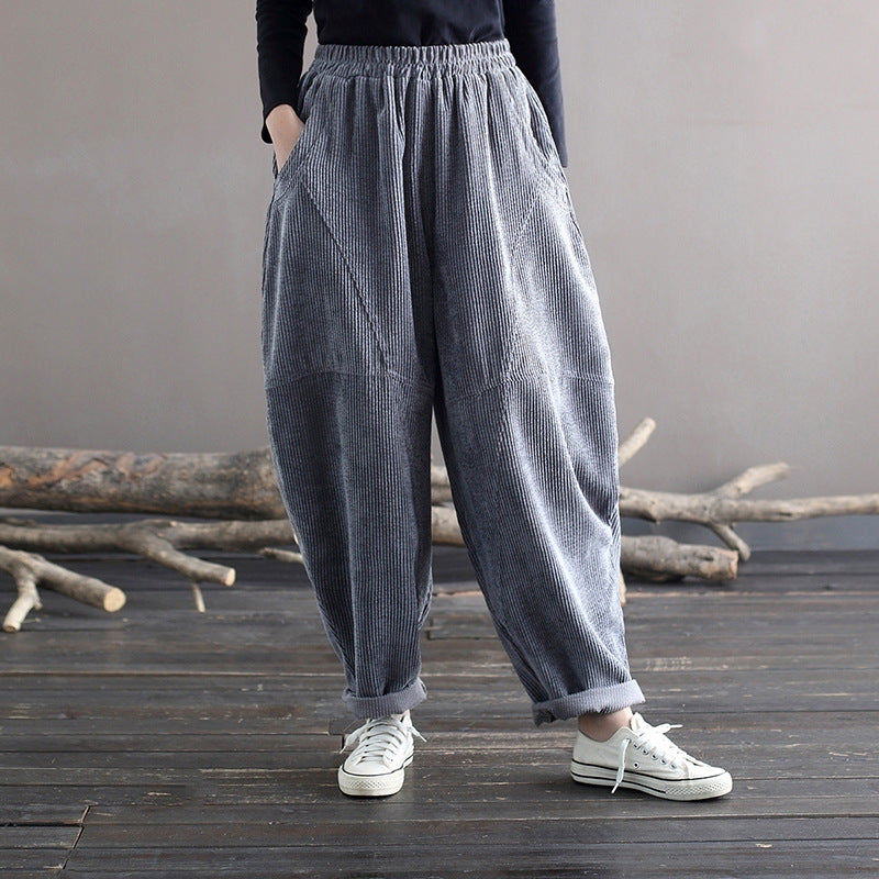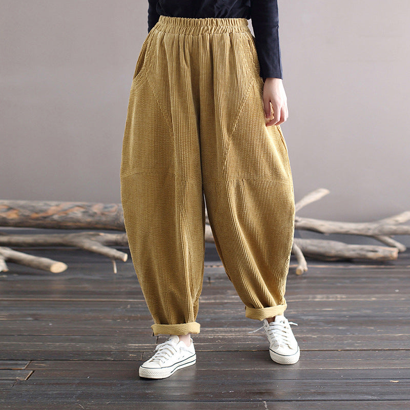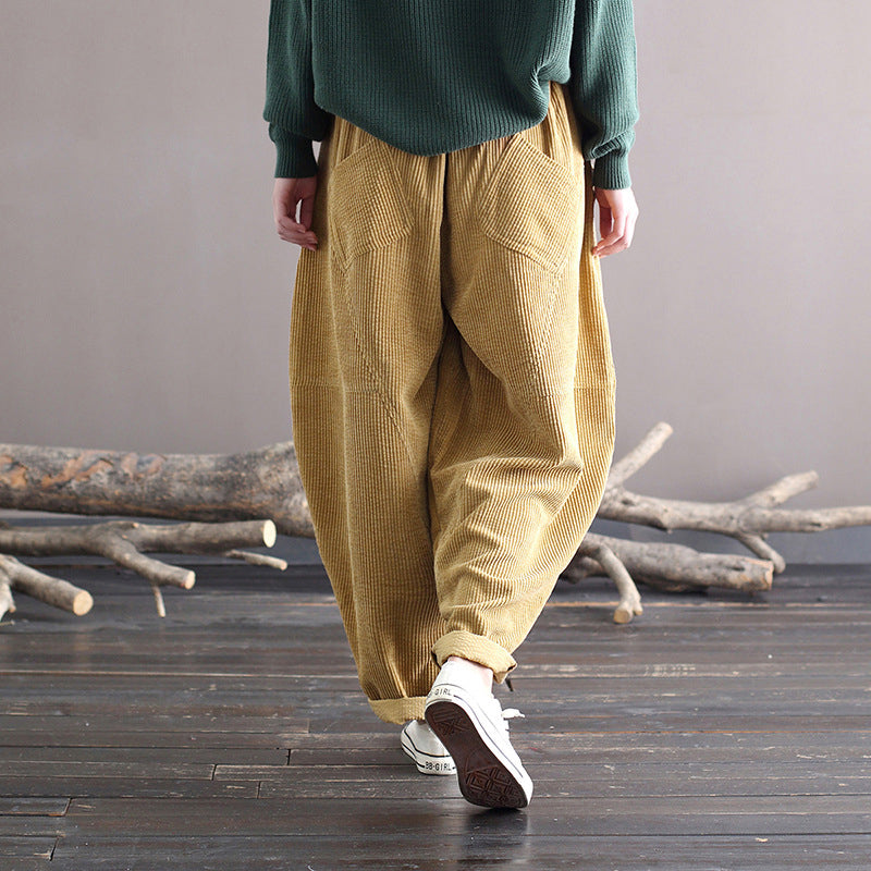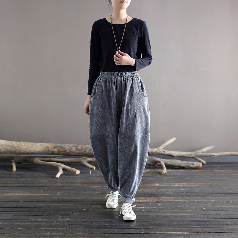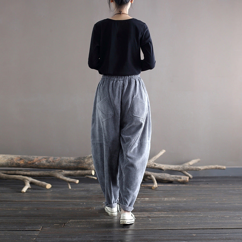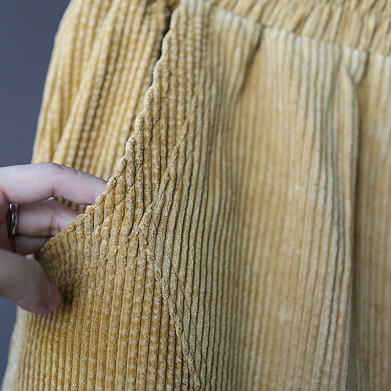 Corduroy Women Pocket Elastic Waist Solid Color Pants