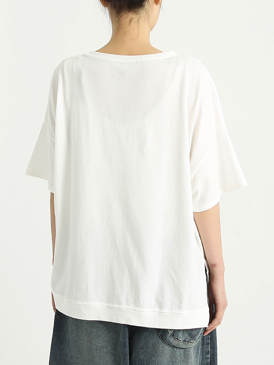 Plus Size Cotton Women Short Sleeve Casual Loose T Shirt