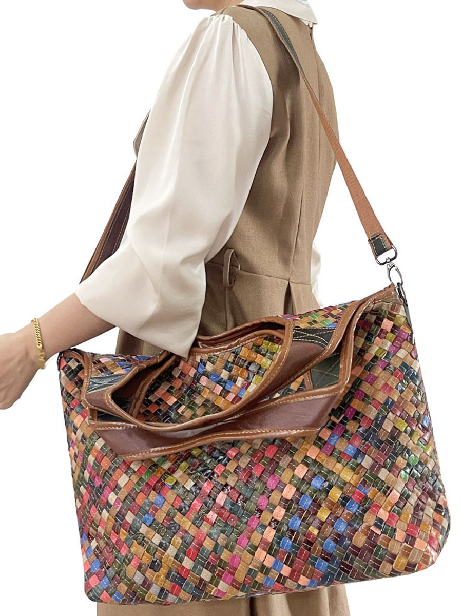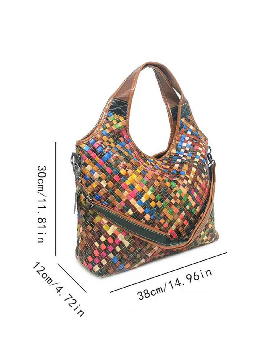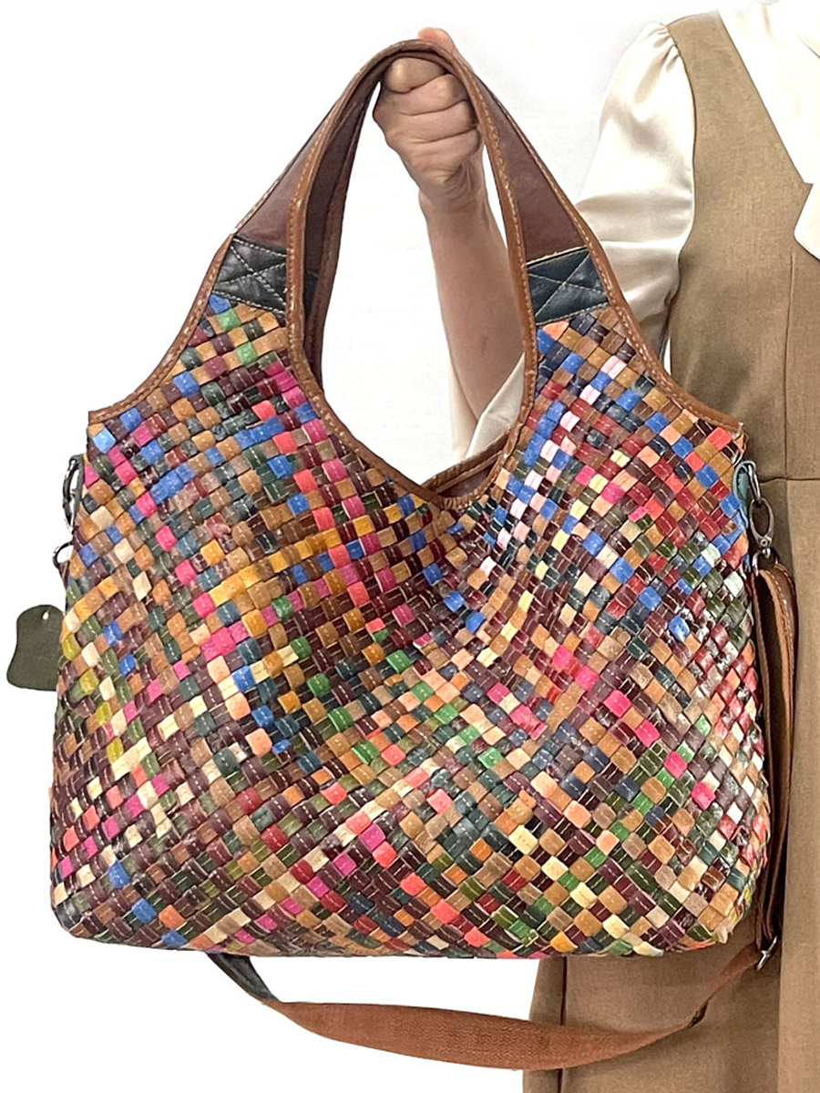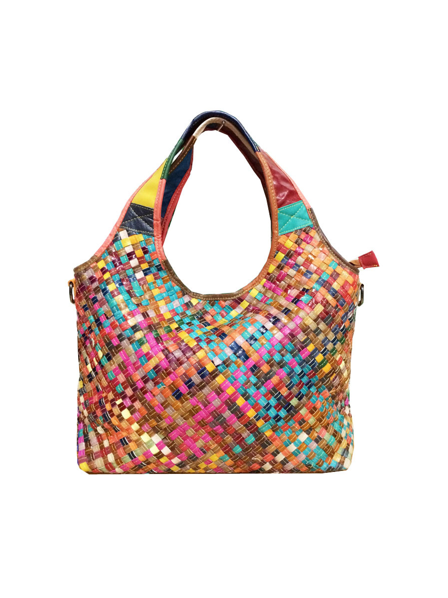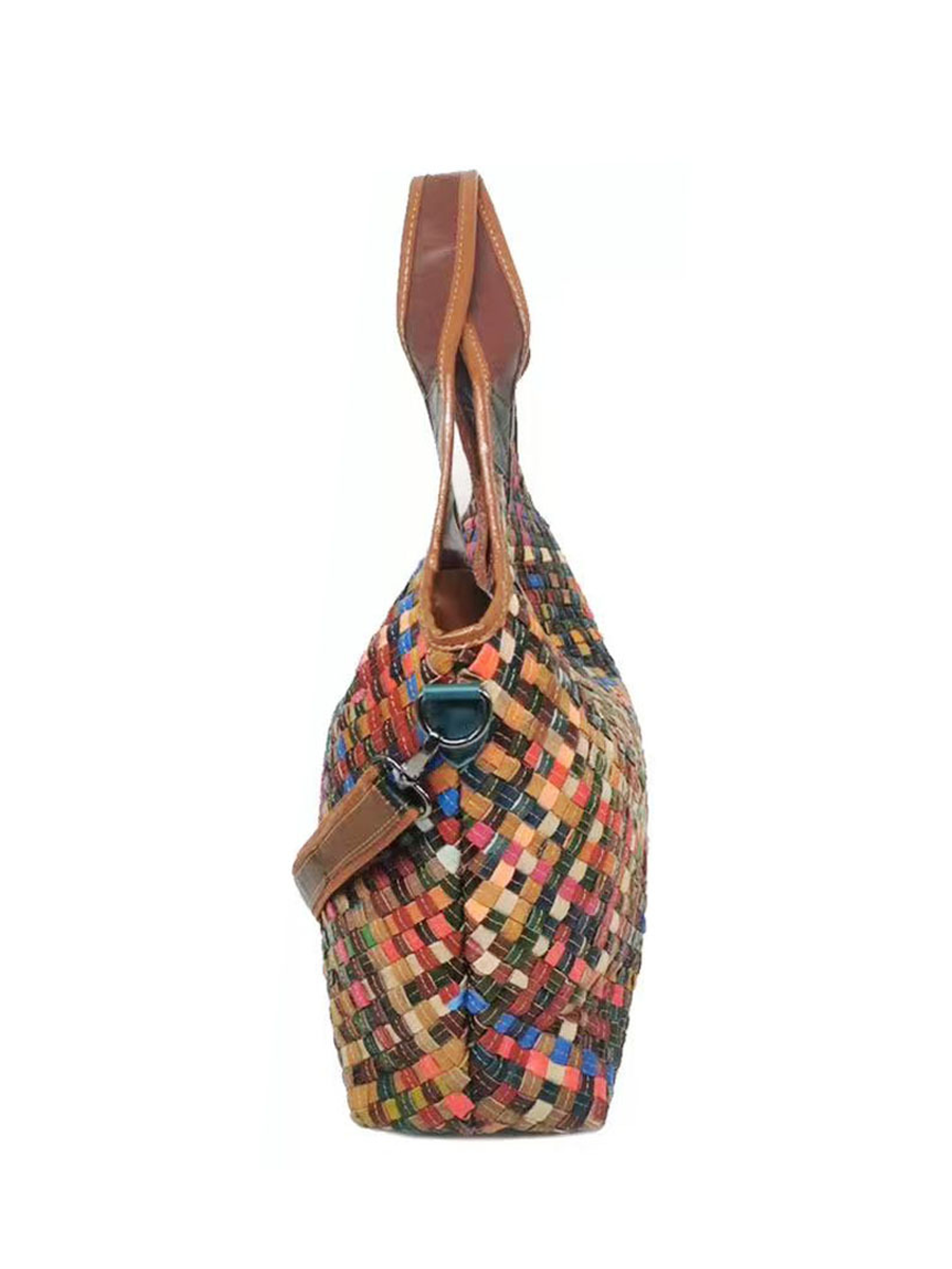 Mulitcolor Leather Woven Shoulder Bag
