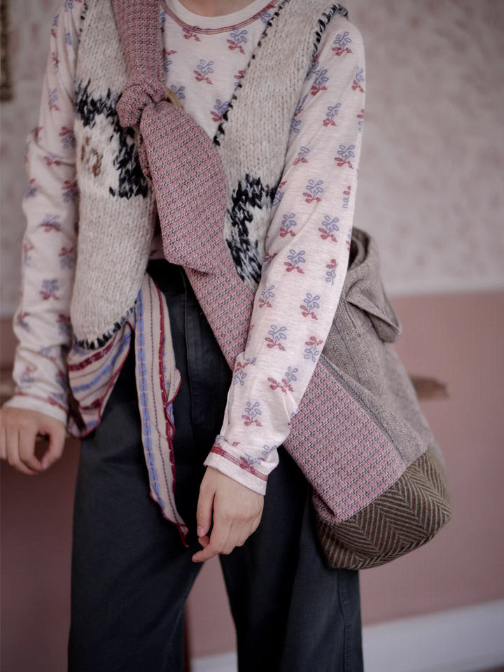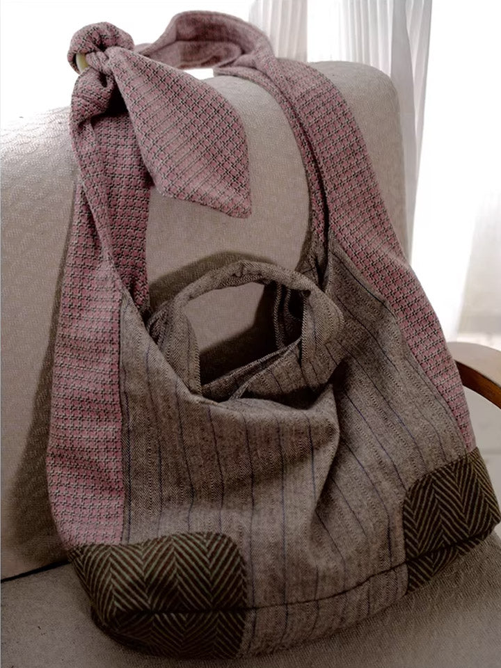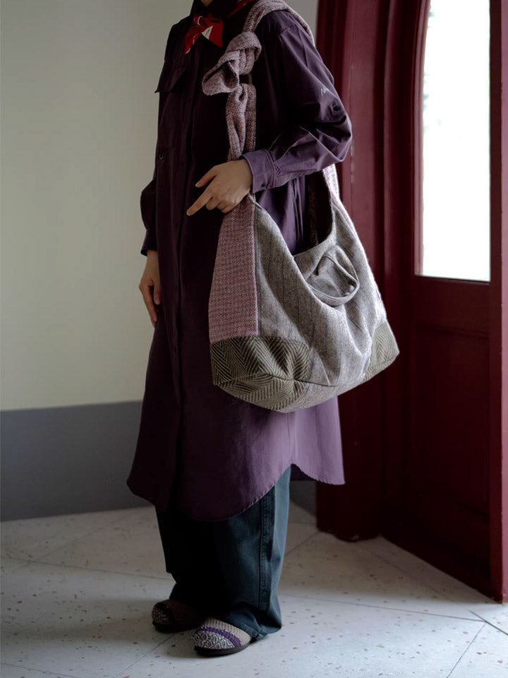 Pink-Grey Retro Wool Large Capacity Crossbody Bag
