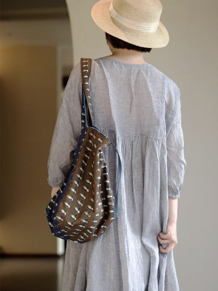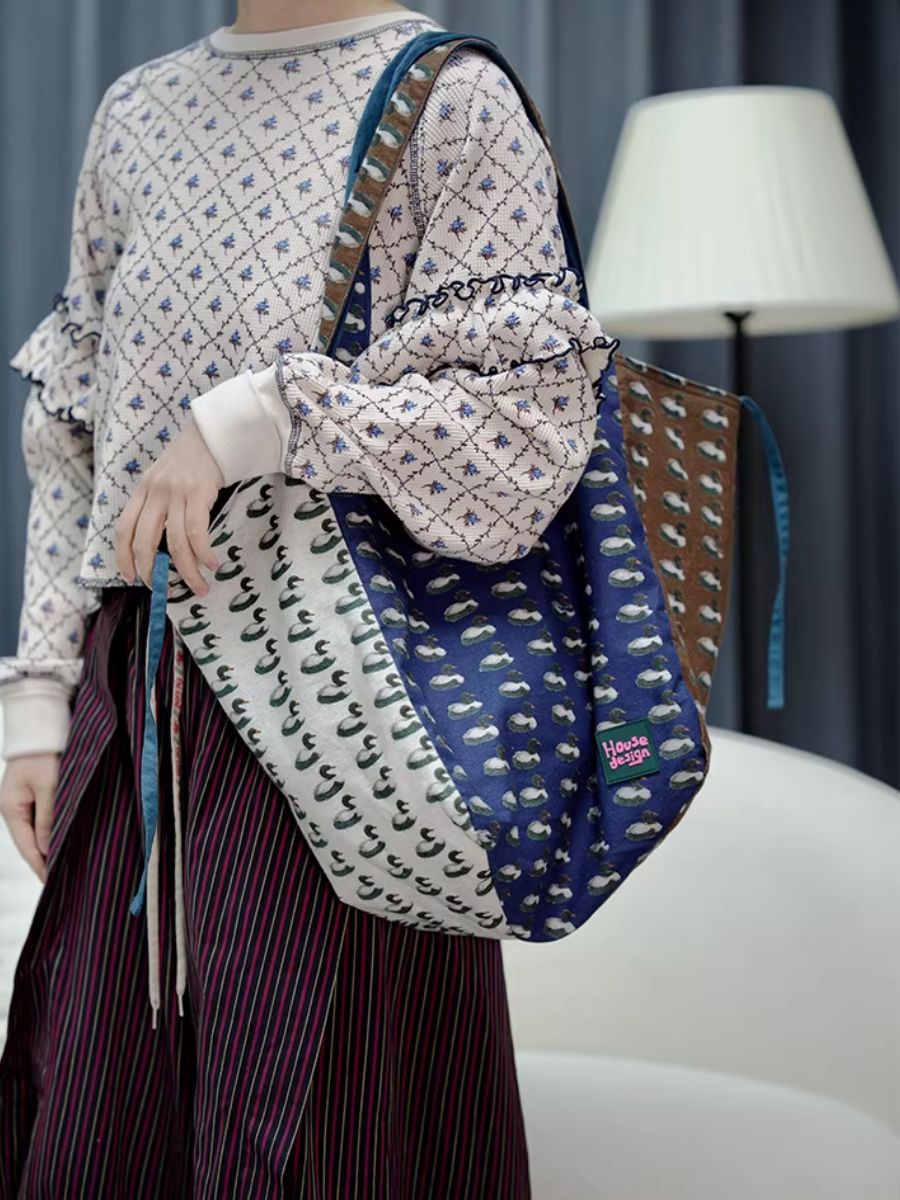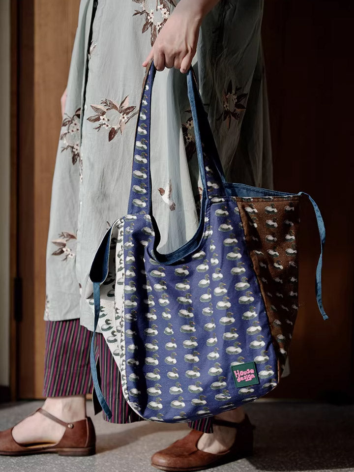 Retro Duck Print Spliced Shoulder Bag