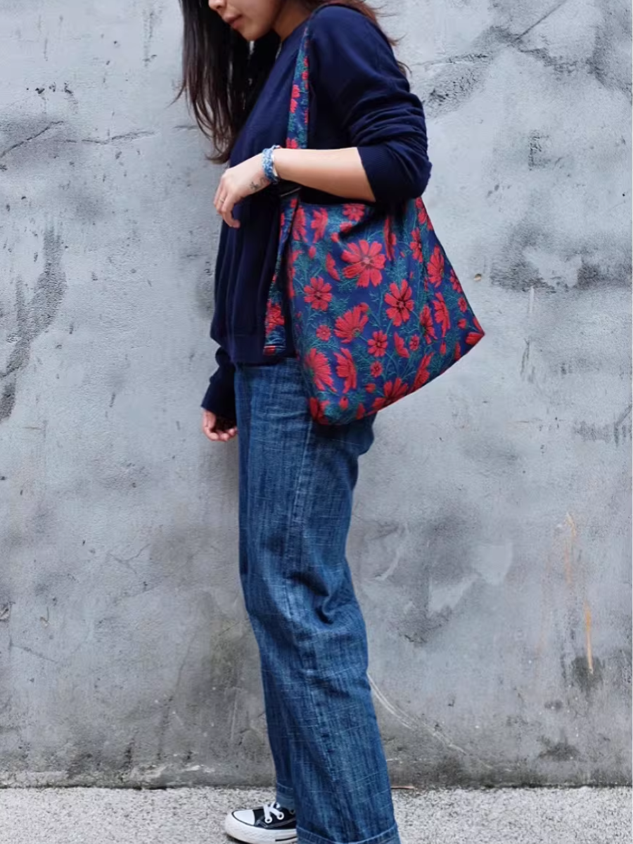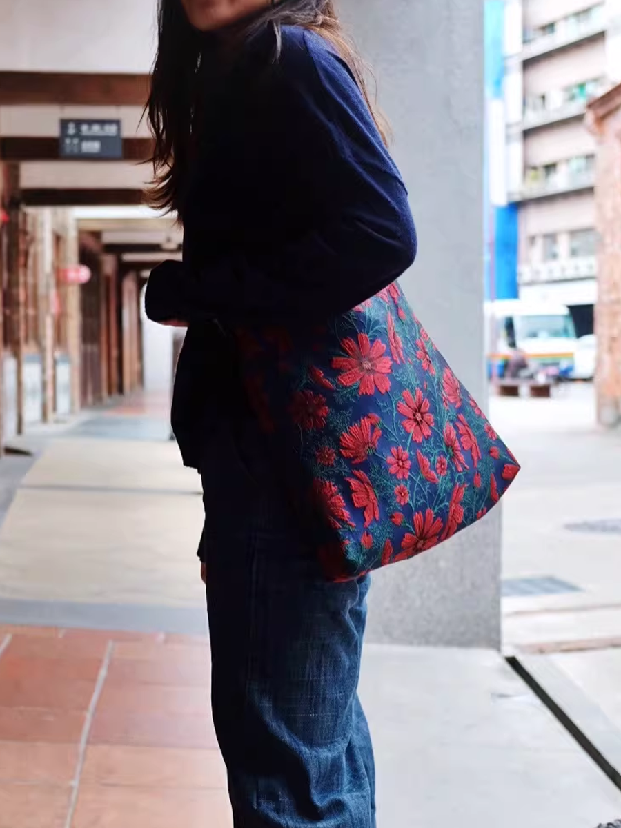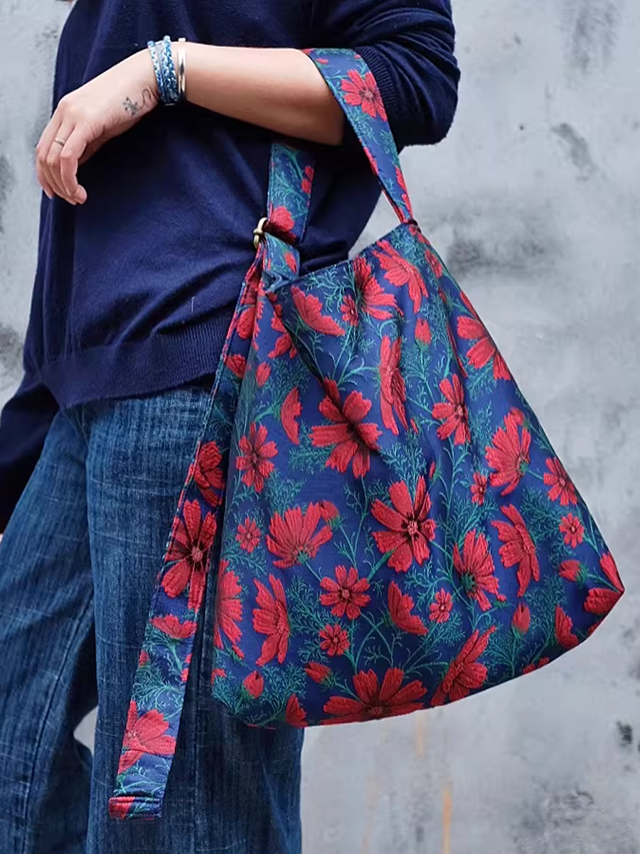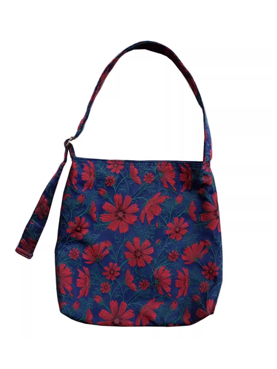 Retro Gelsang Flower Jacquard Large Capacity Shoulder Bag