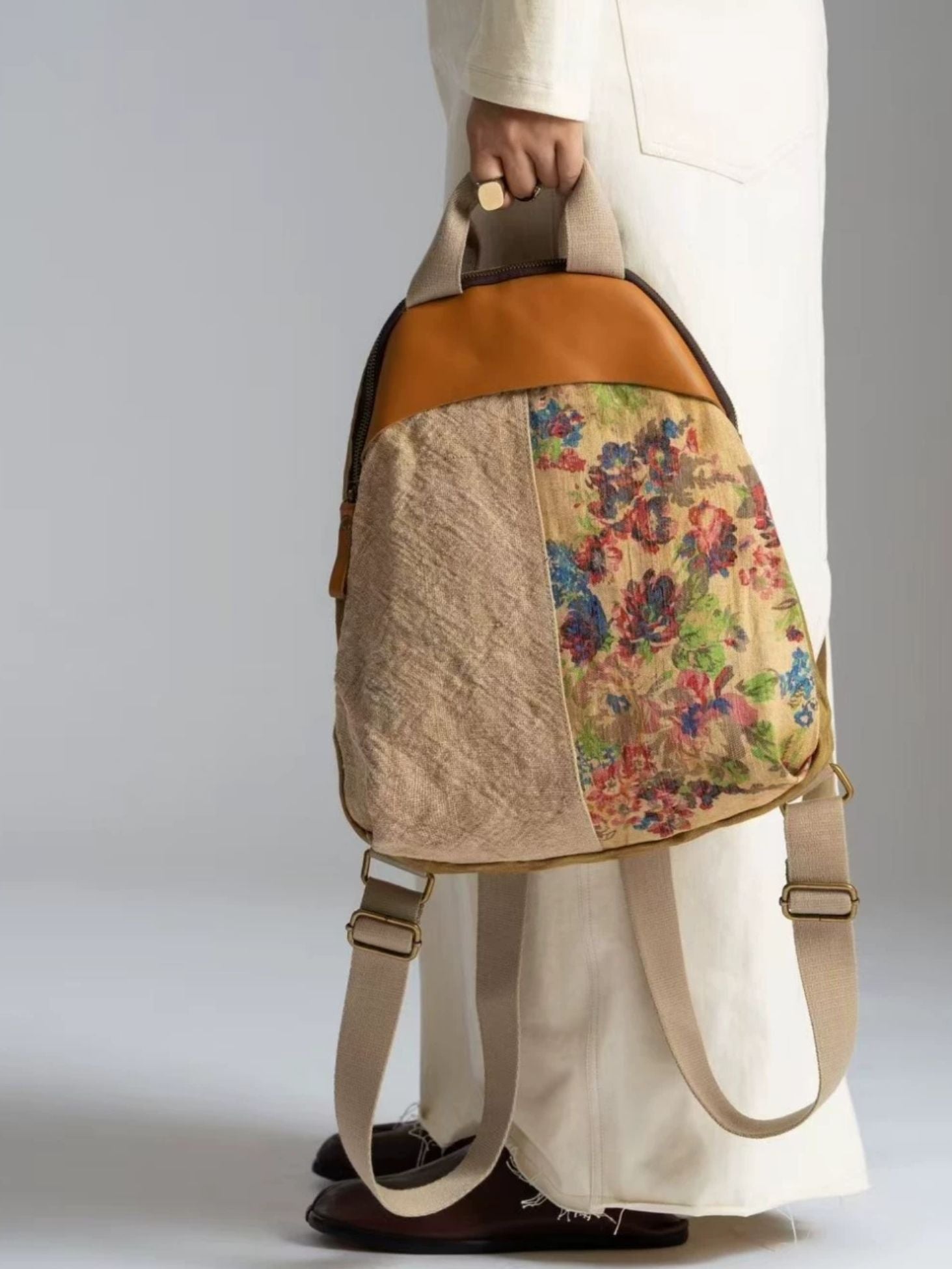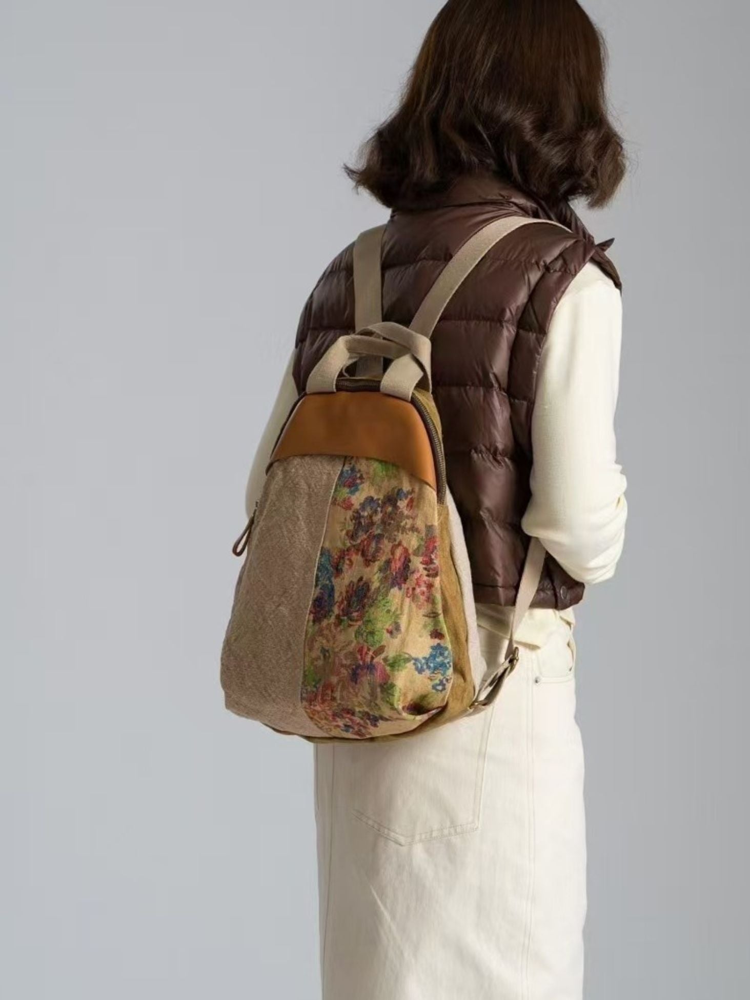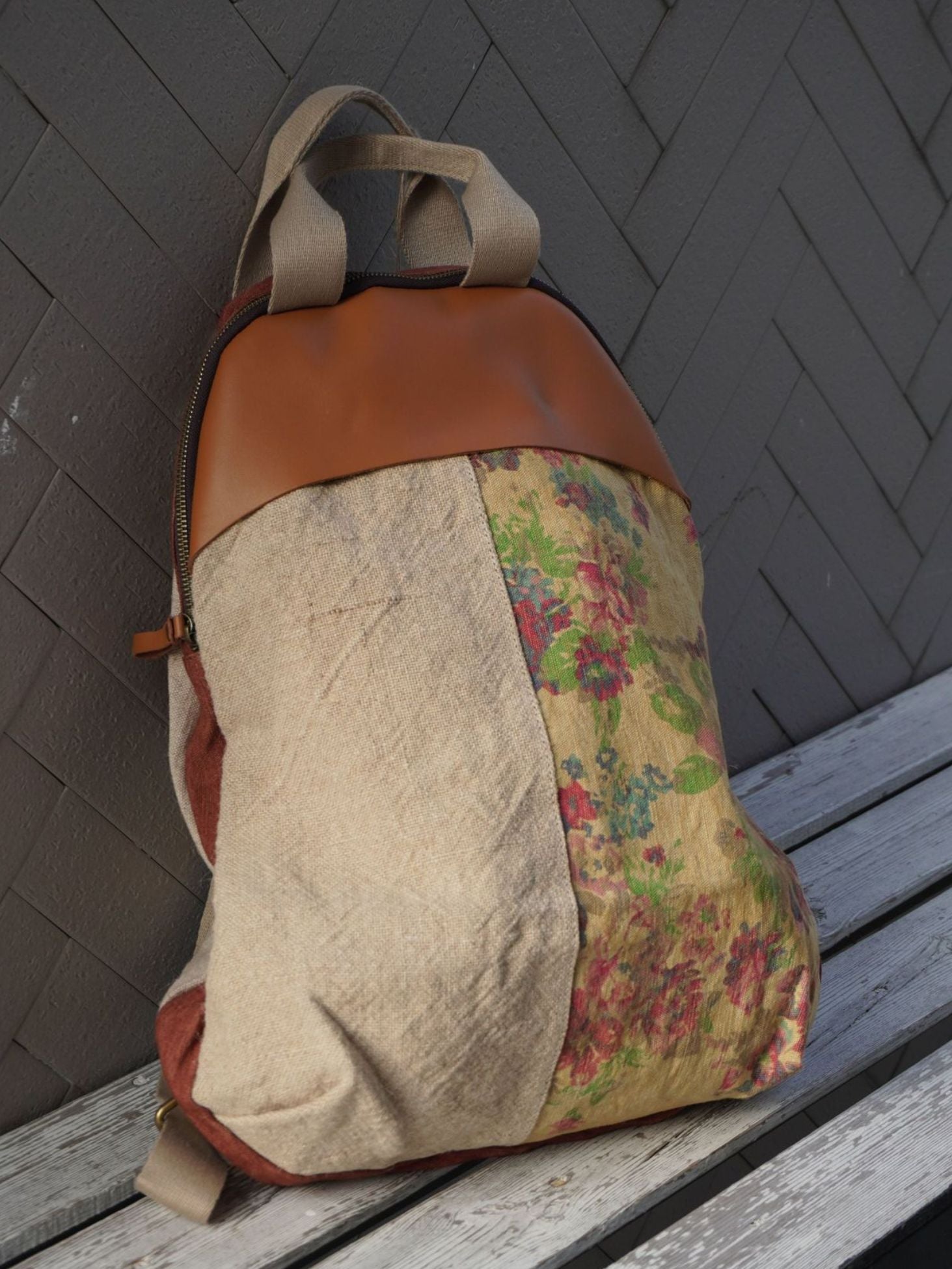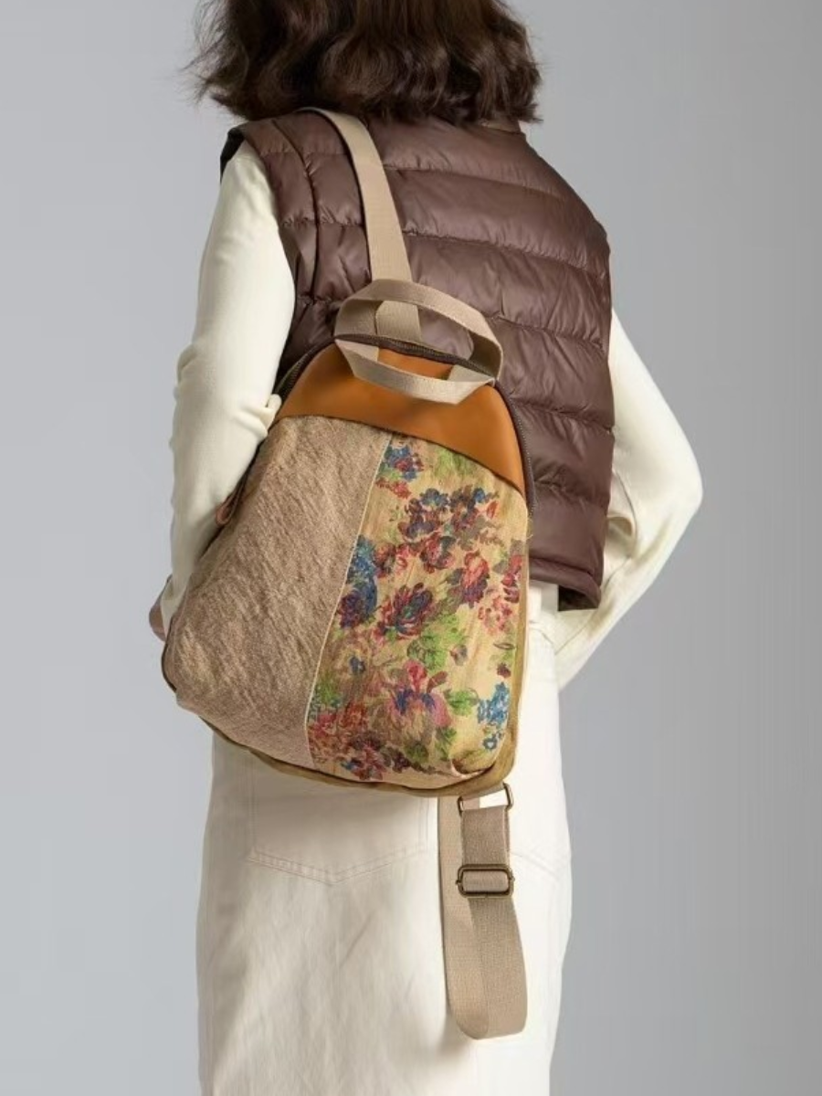 Vintage Linen Spliced Leather Backpack