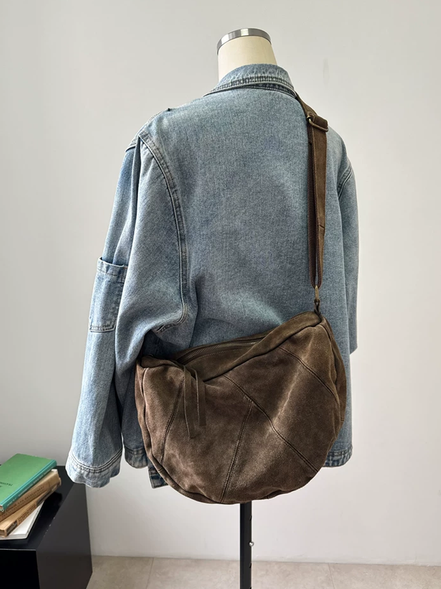 Vintage Leather Spliced Hobo Bag