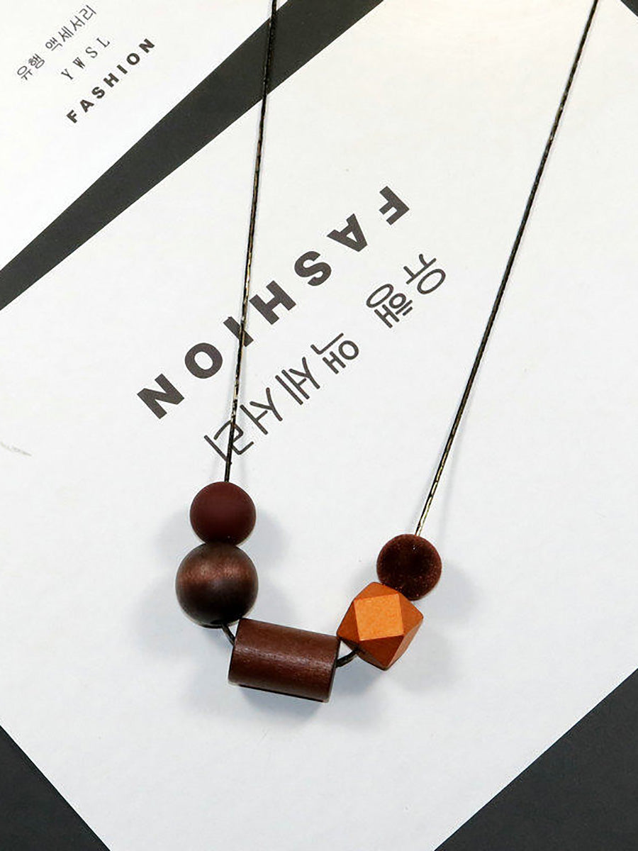 Women Artsy Colorful Geometric Wood Necklace