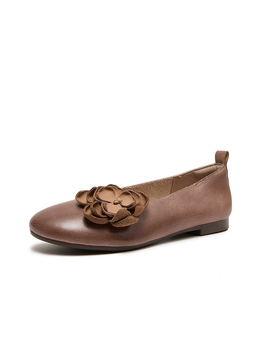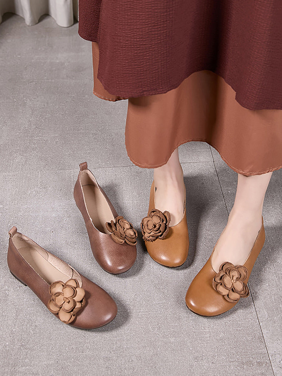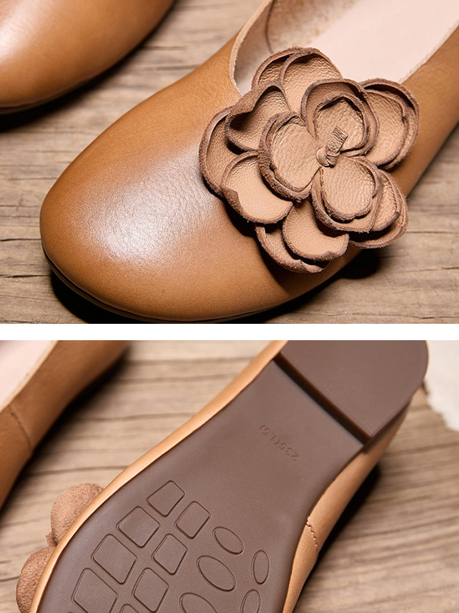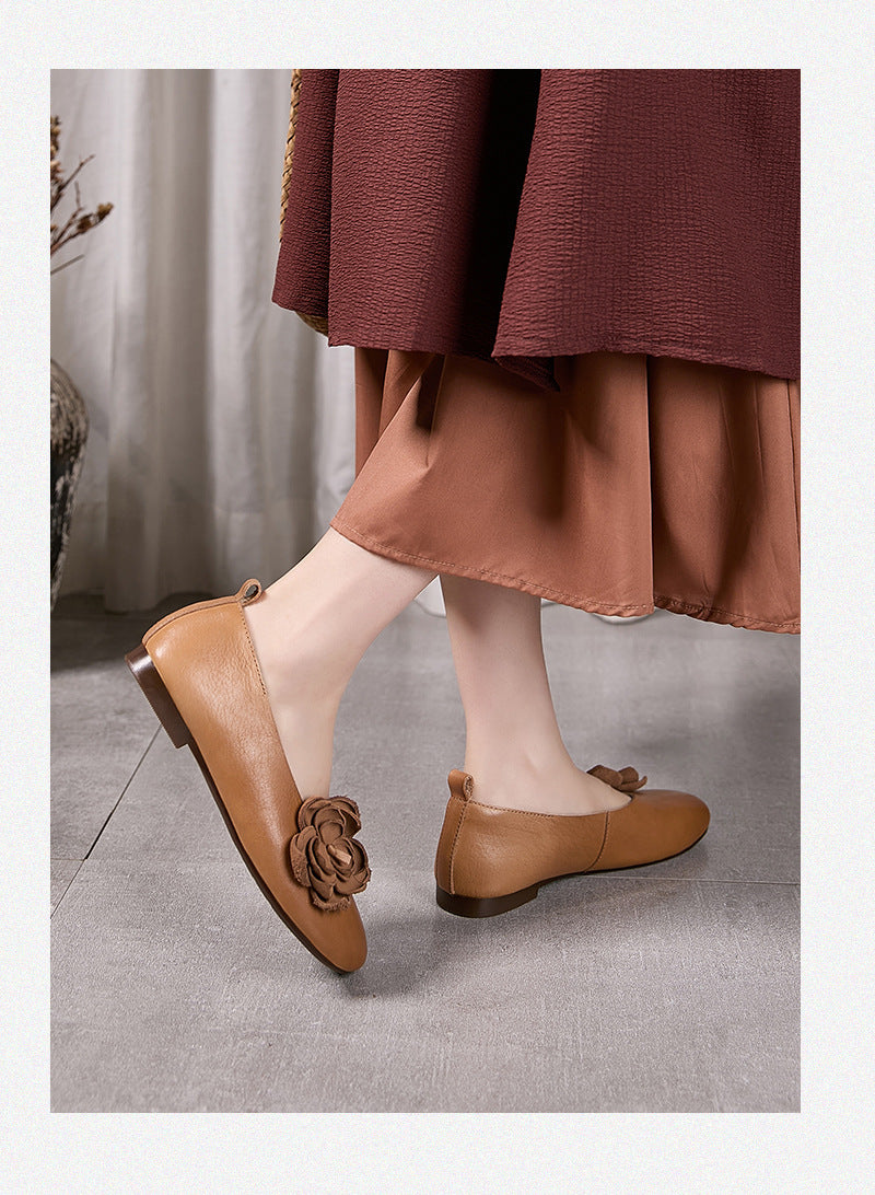 Women Artsy Flower Leather Spliced Low Heel Shoes