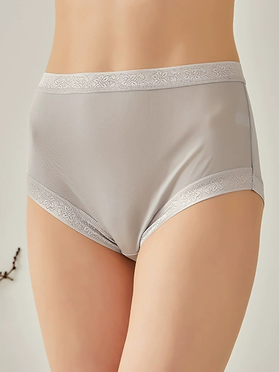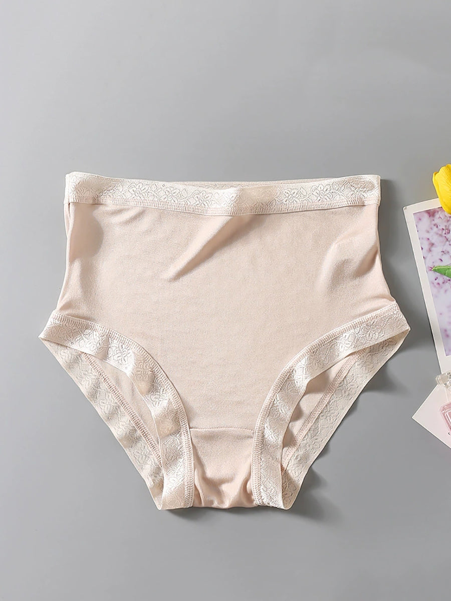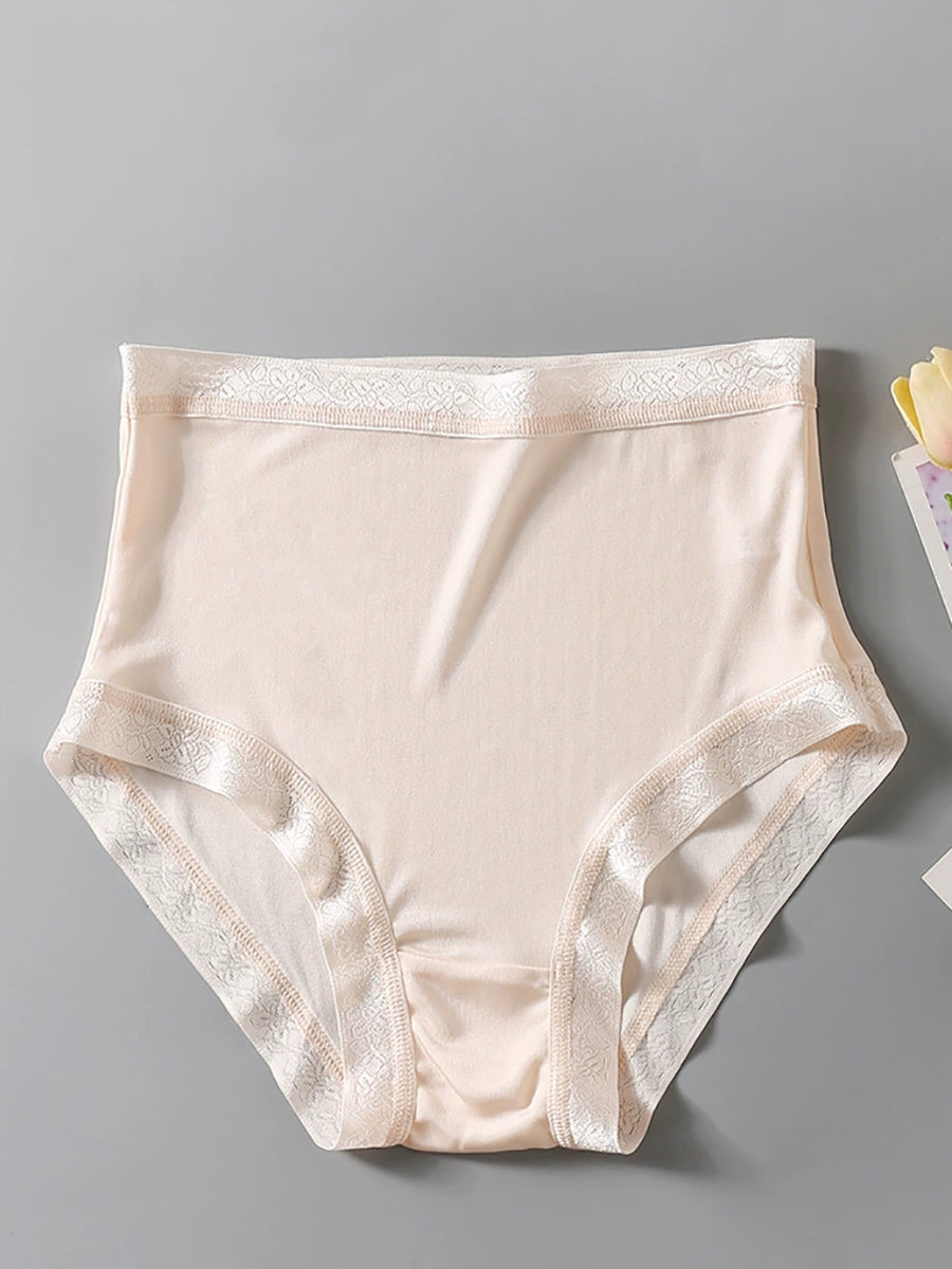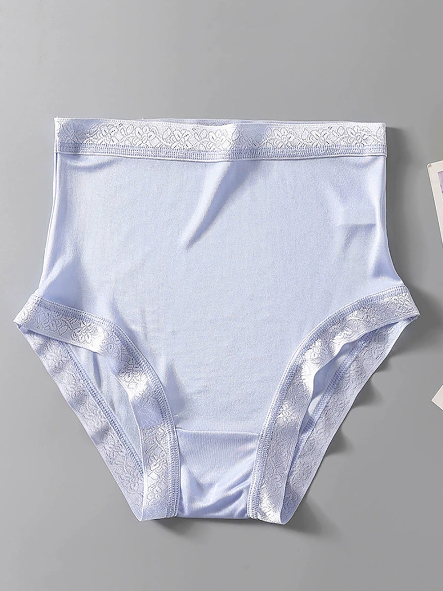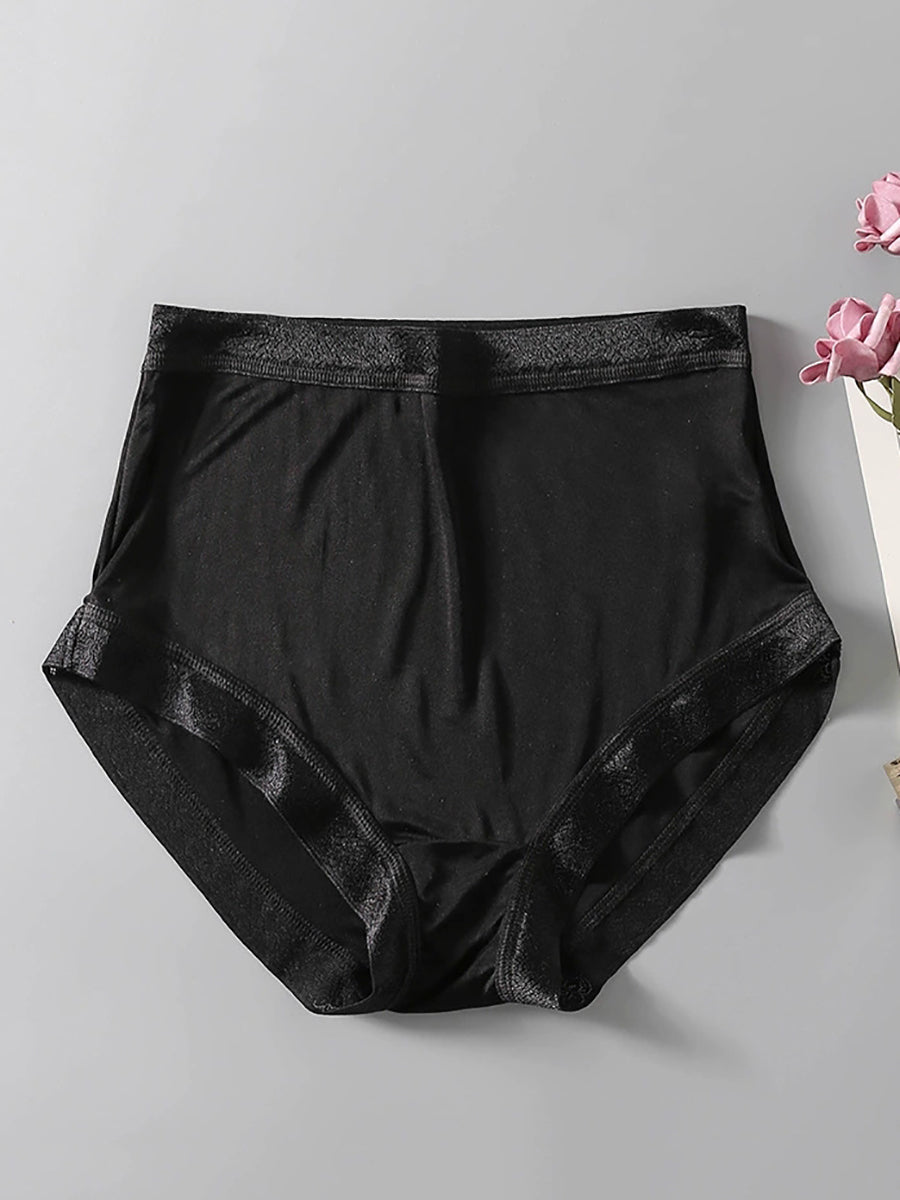 Women Artsy Pure Color High Waist Silk Underwear