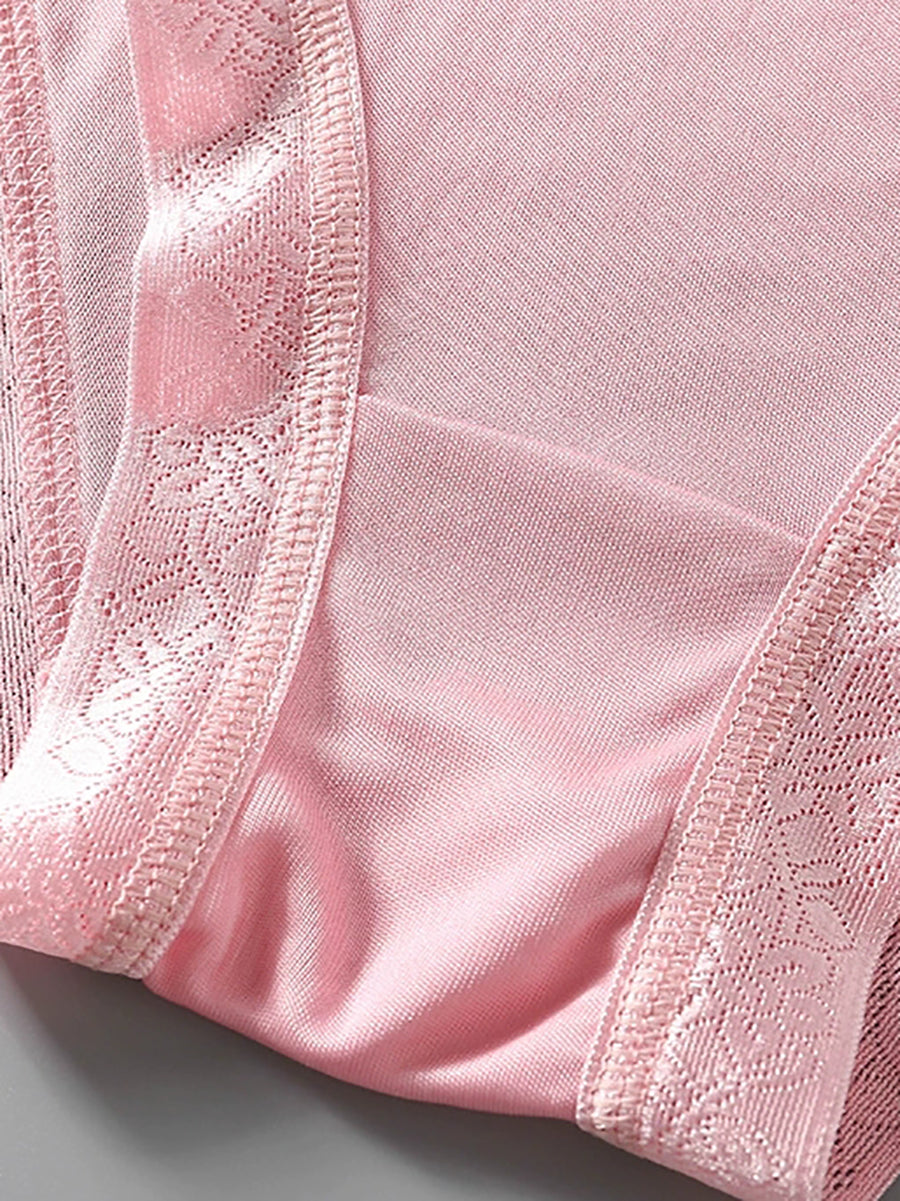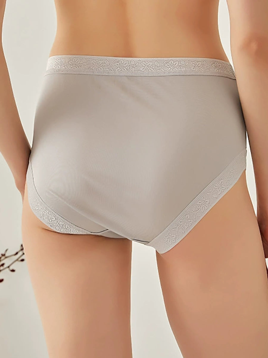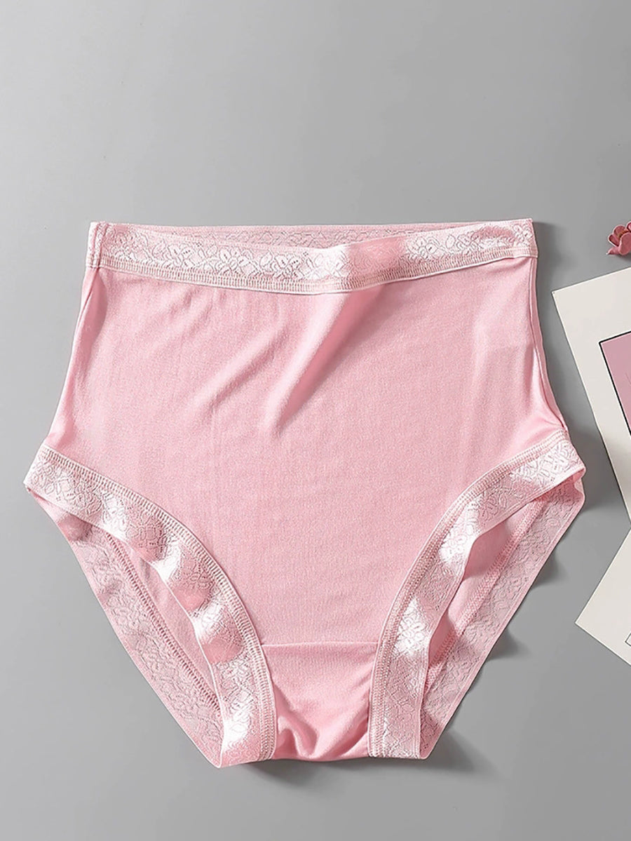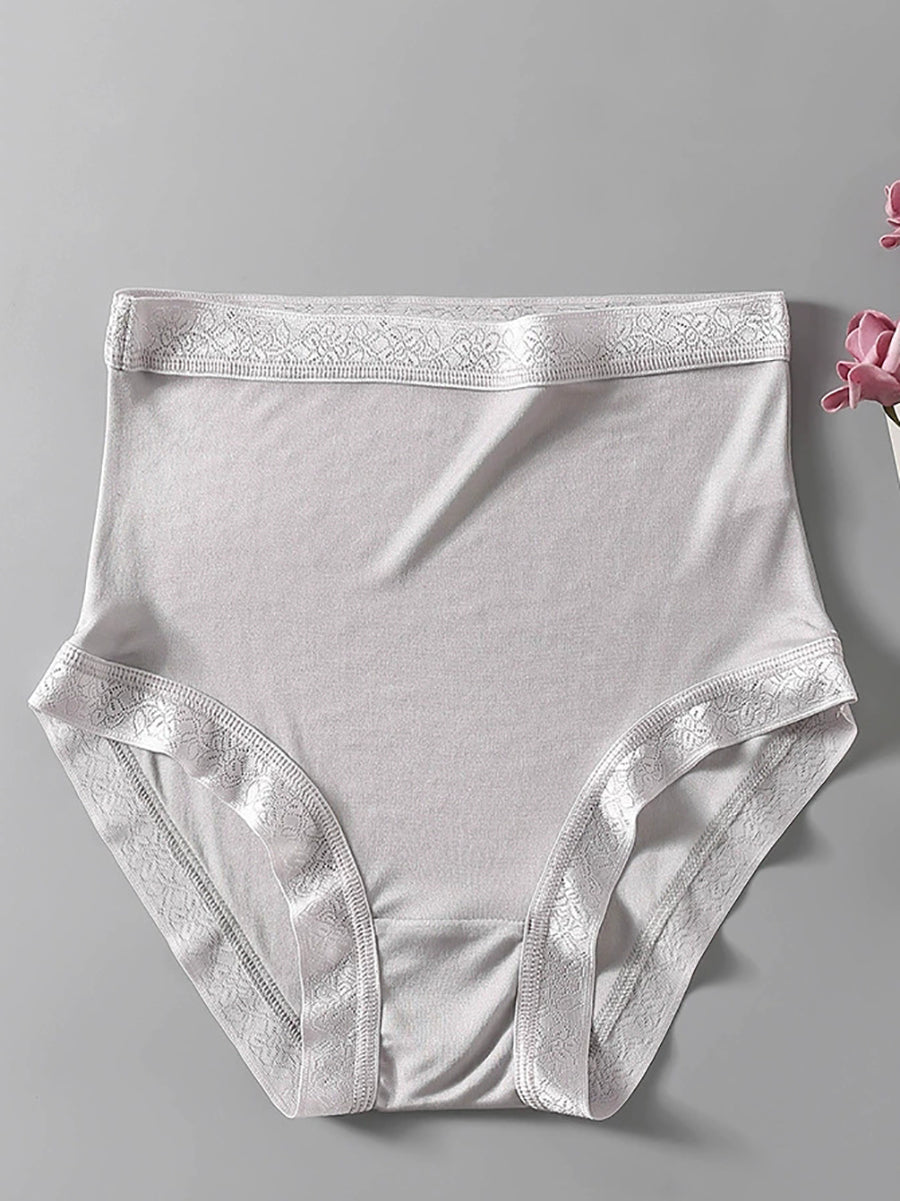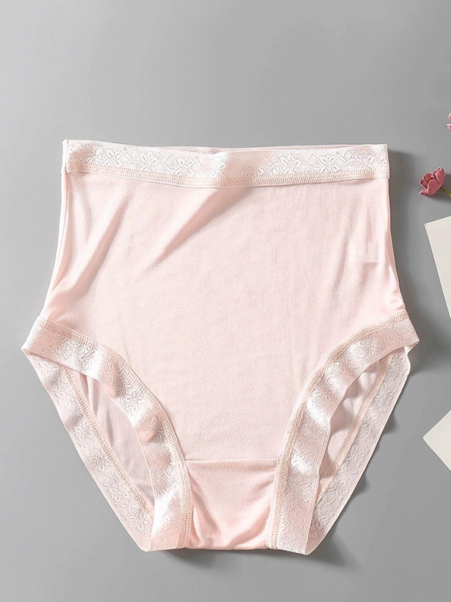 Women Artsy Pure Color High Waist Silk Underwear