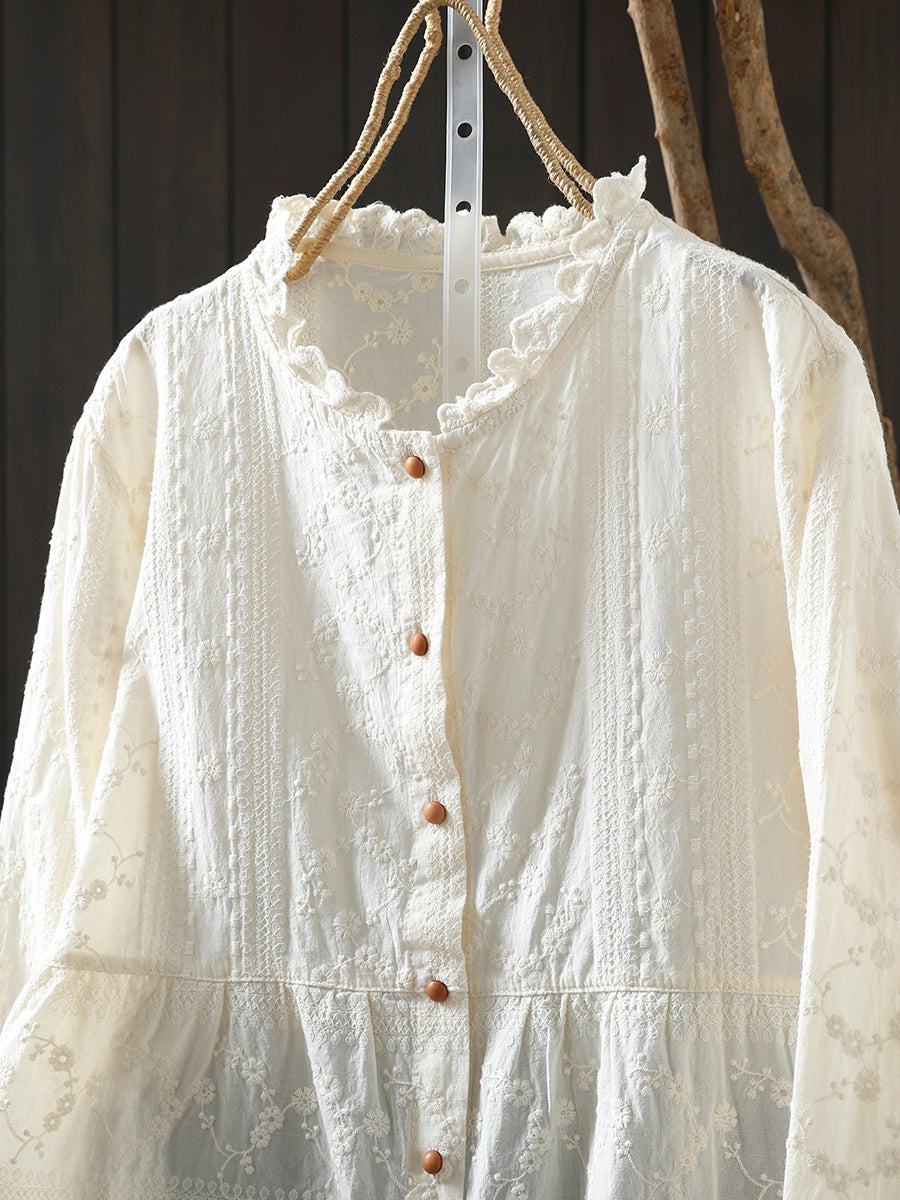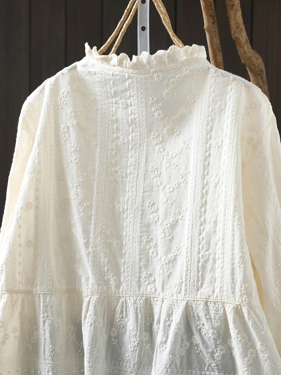 Women Artsy Spring Embroidery 100%Cotton Shirt