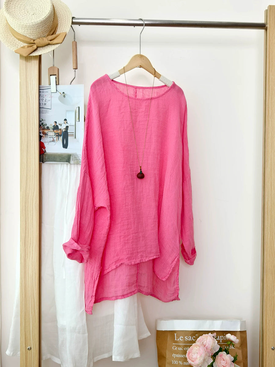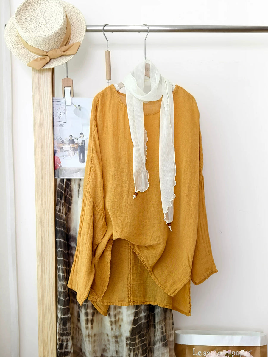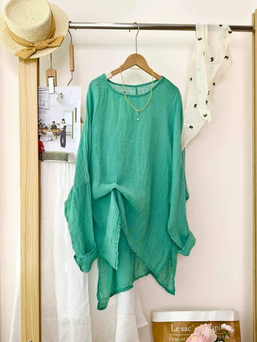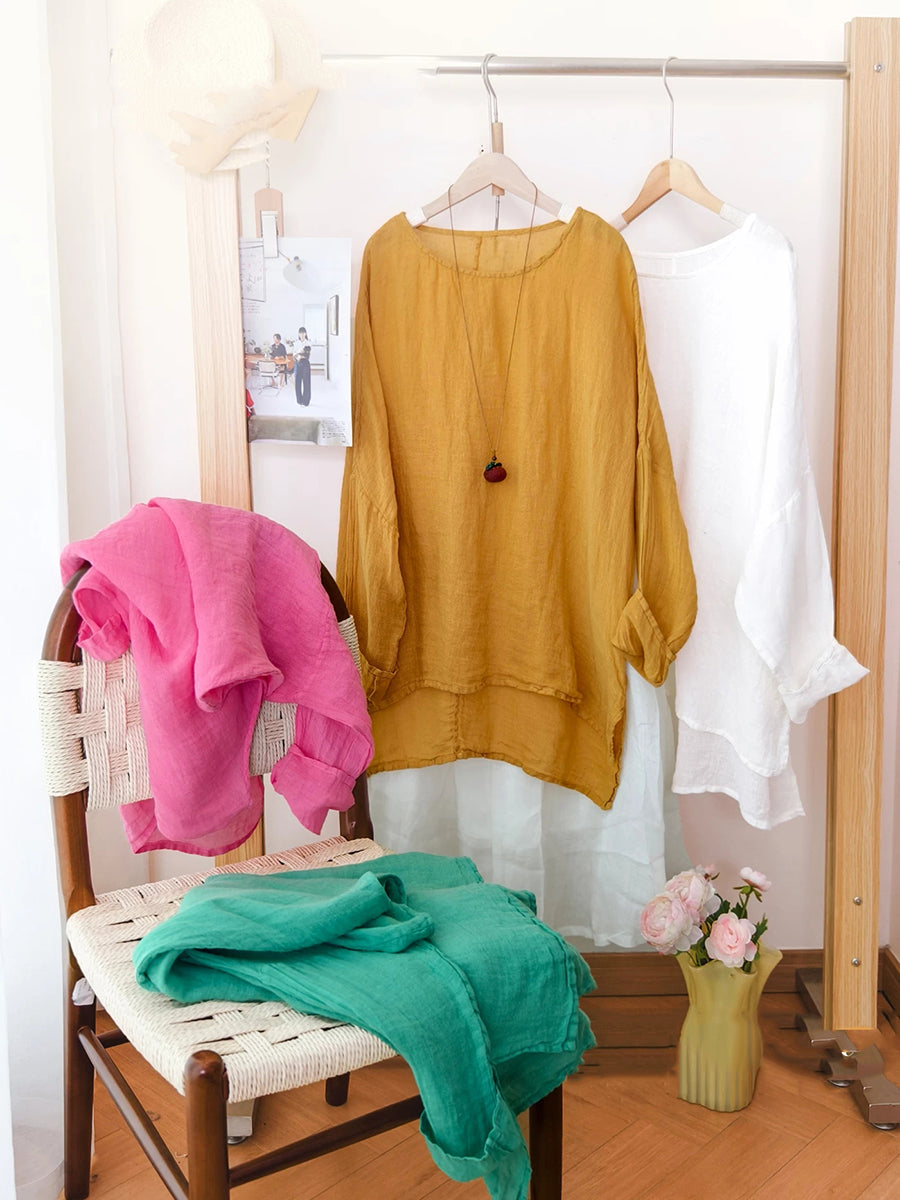 Women Artsy Summer Pure Color 100%Linen Blouse