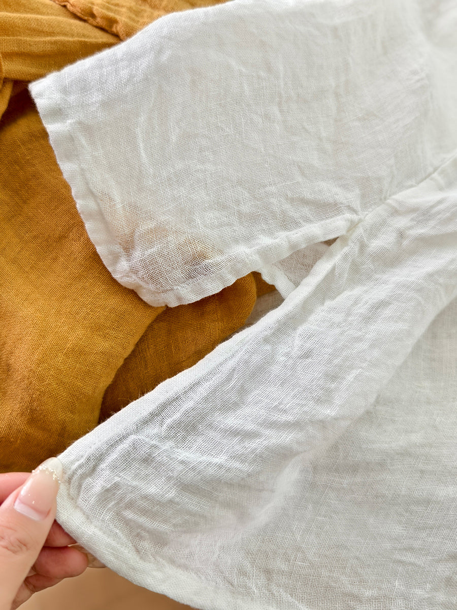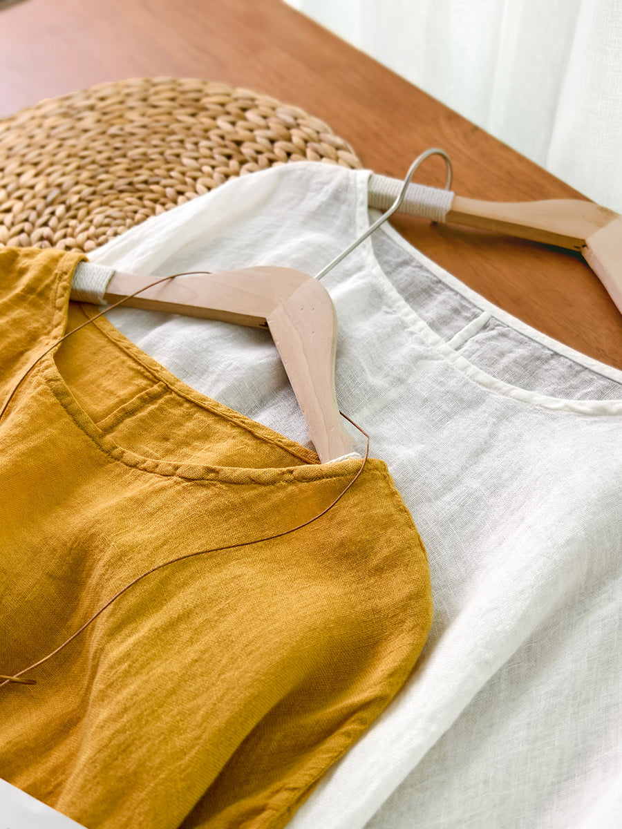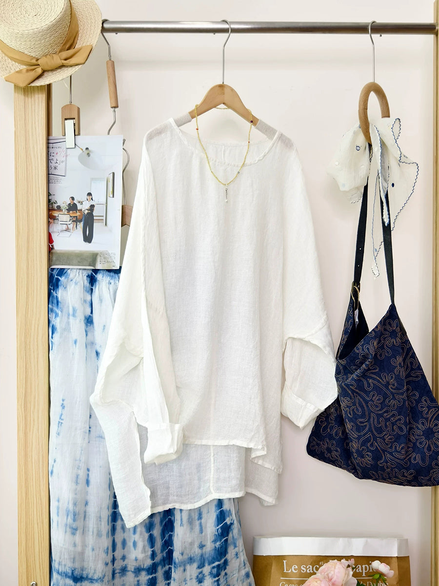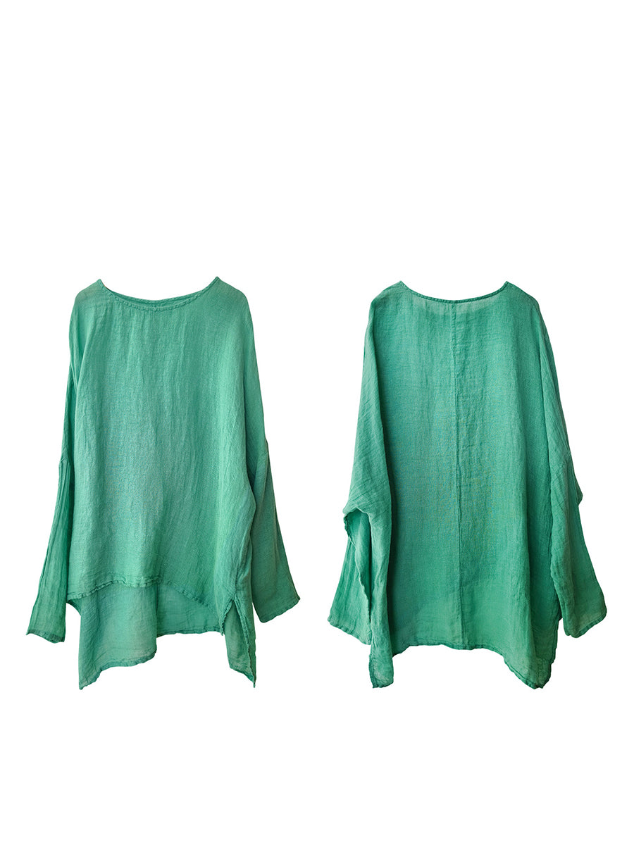 Women Artsy Summer Pure Color 100%Linen Blouse