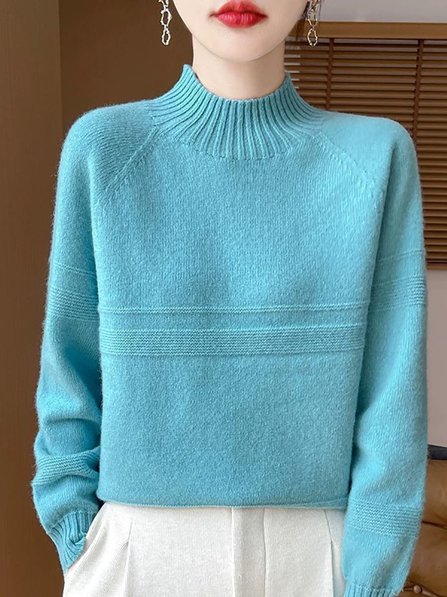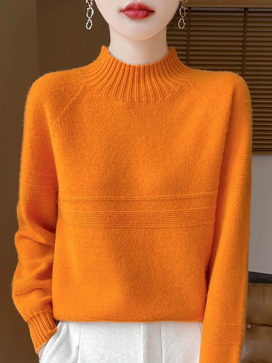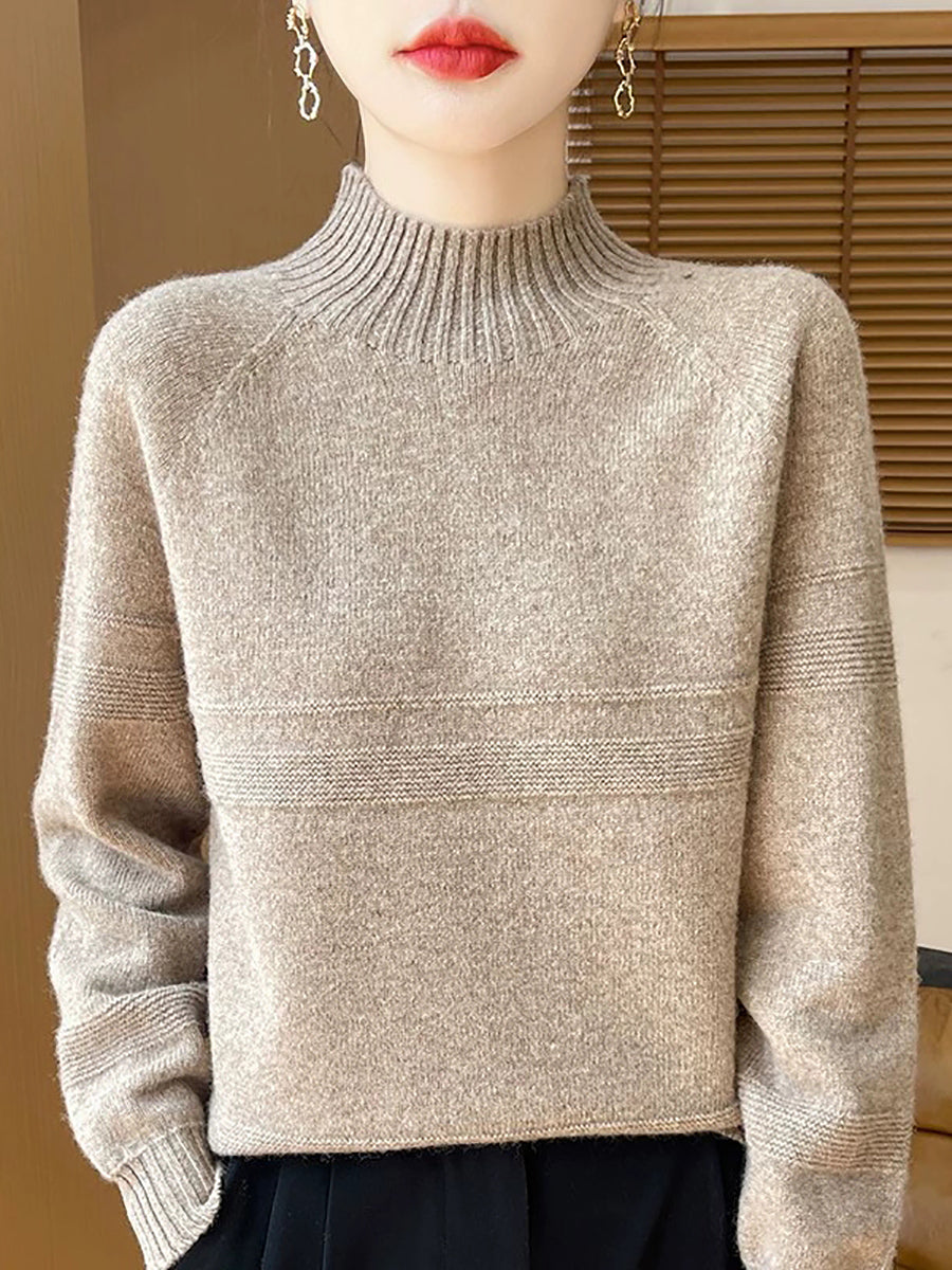 Women Artsy Winter Pure Color Turtleneck Wool Sweater