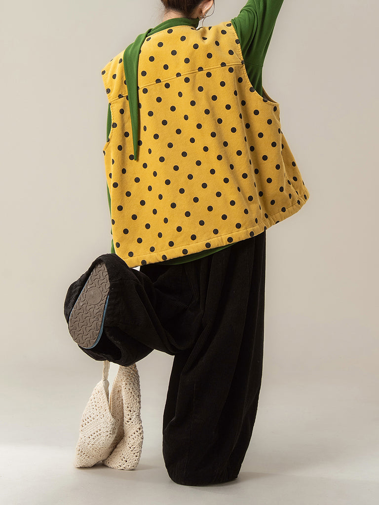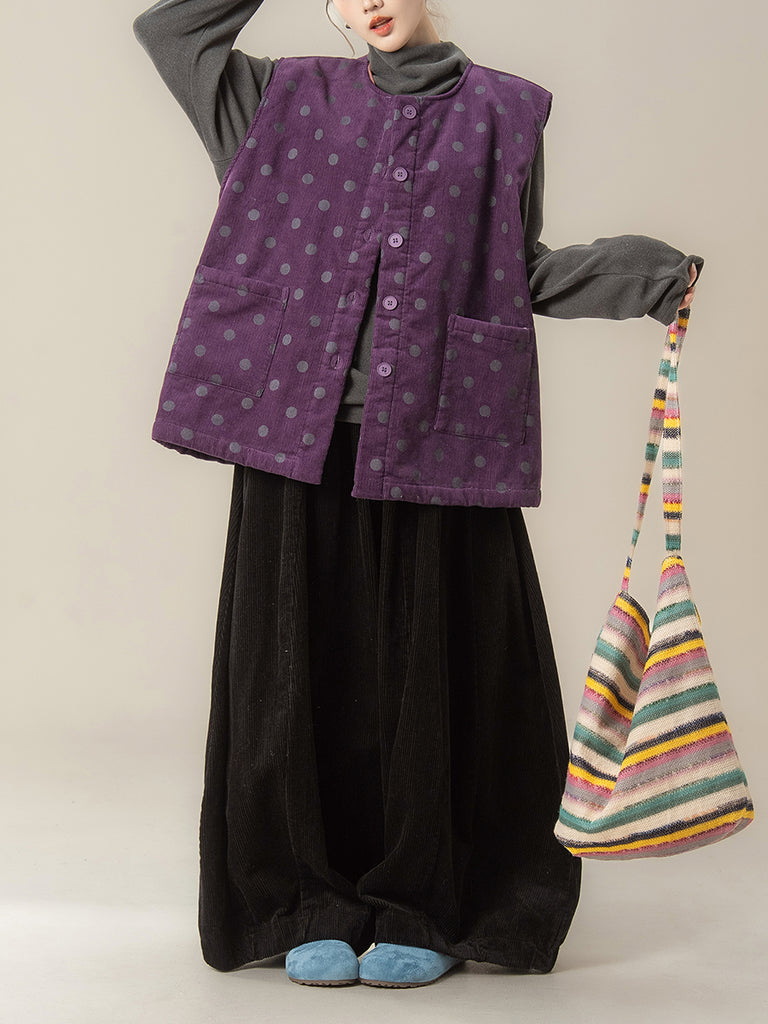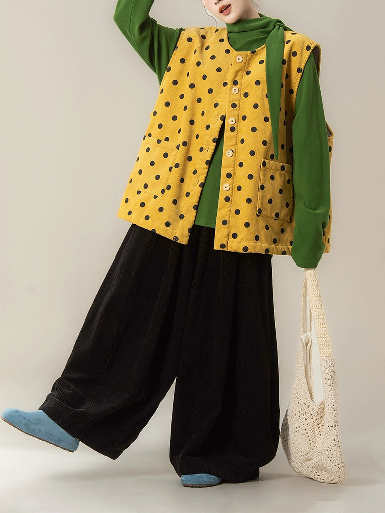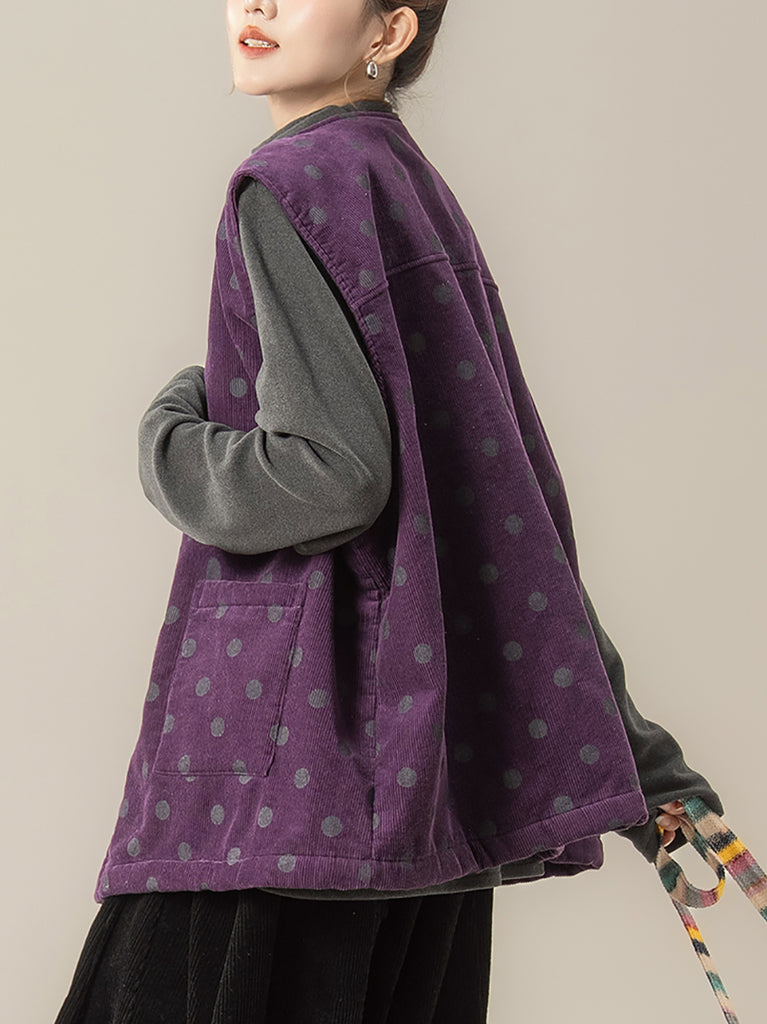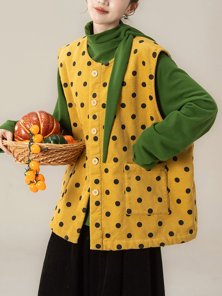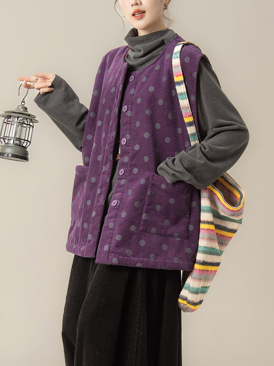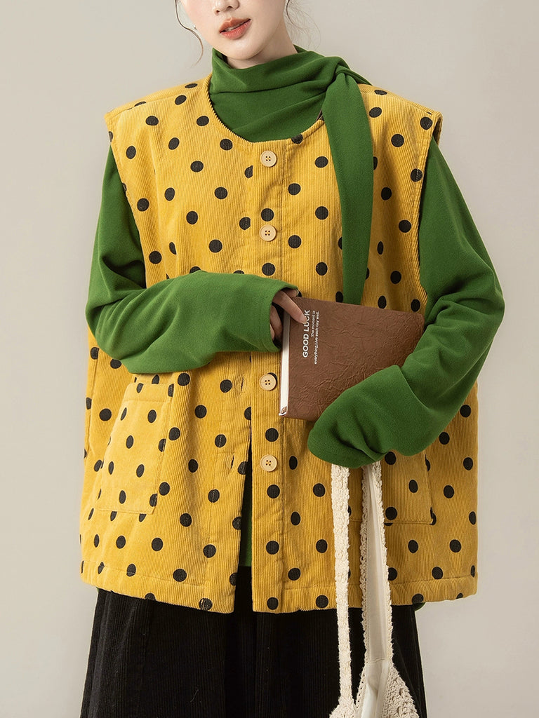 Women Autumn Artsy Dot O-Neck Corduroy Vest
