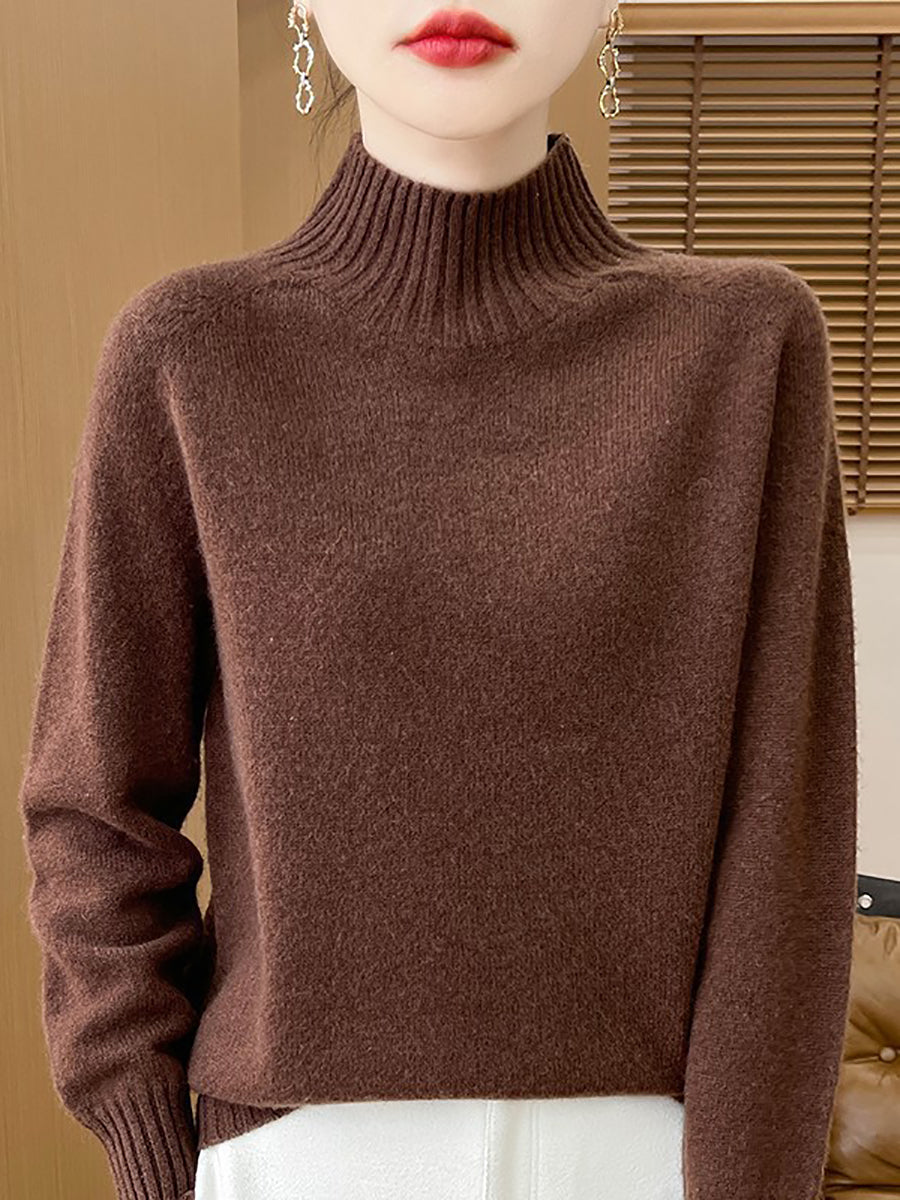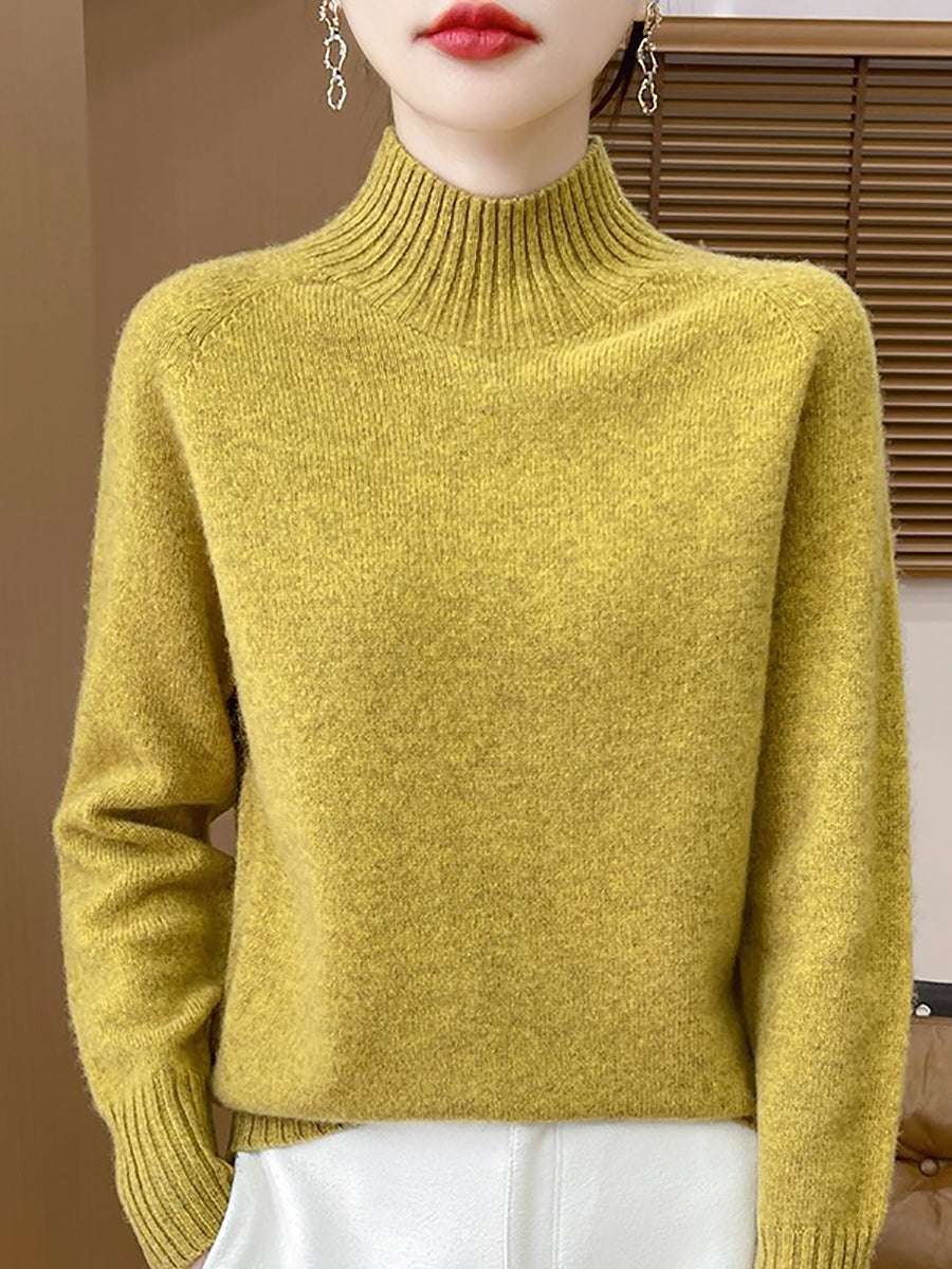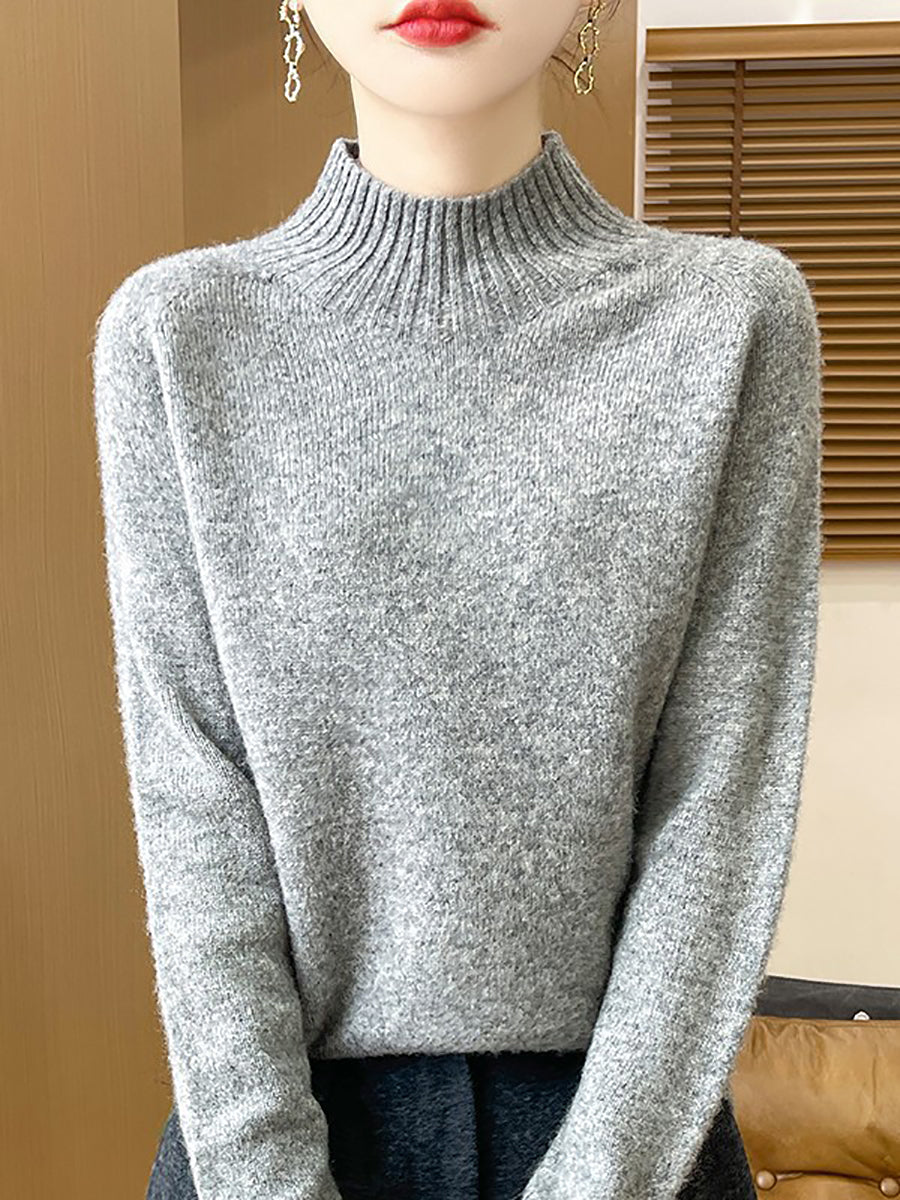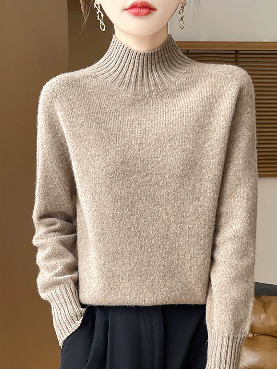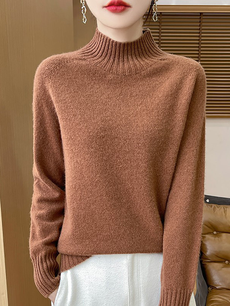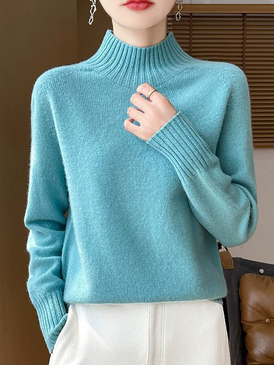 Women Autumn Artsy Pure Color Half Turtleneck Sweater