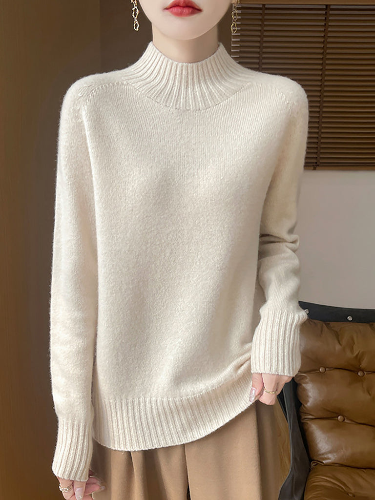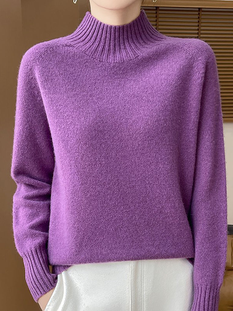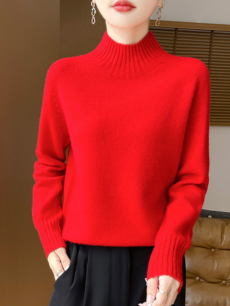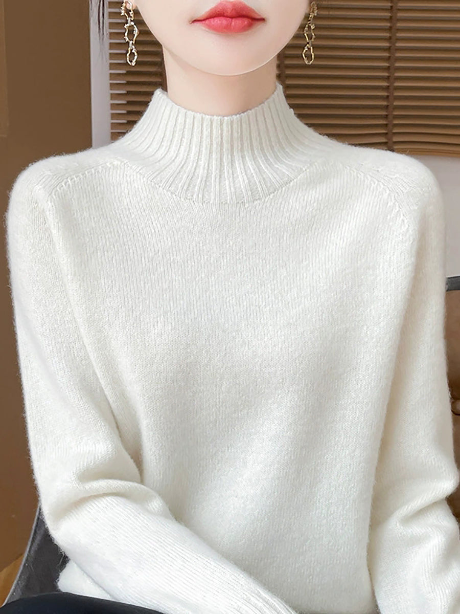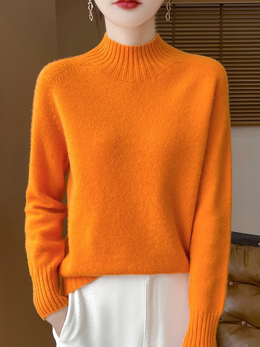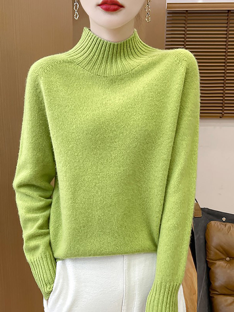 Women Autumn Artsy Pure Color Half Turtleneck Sweater