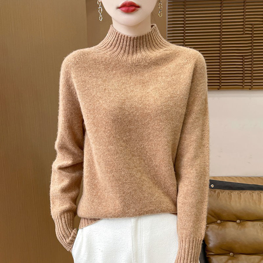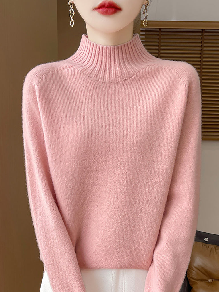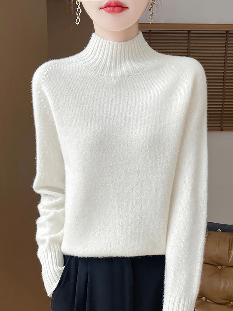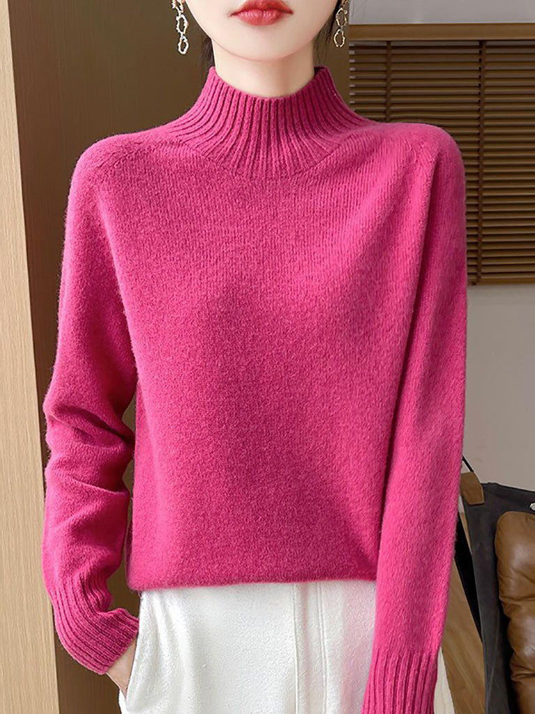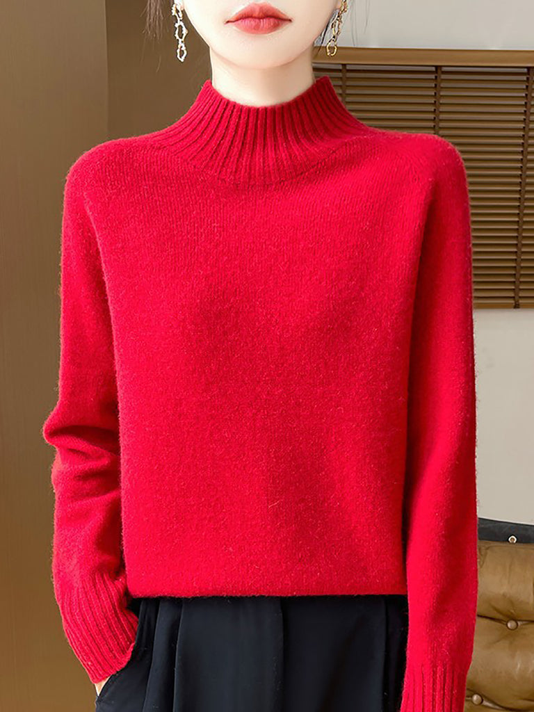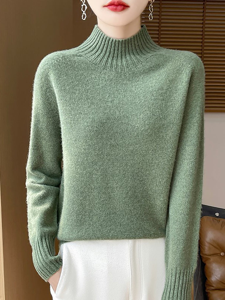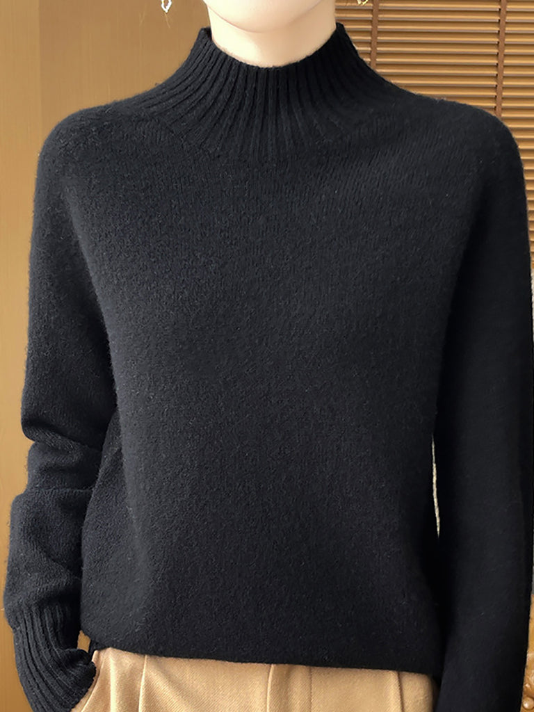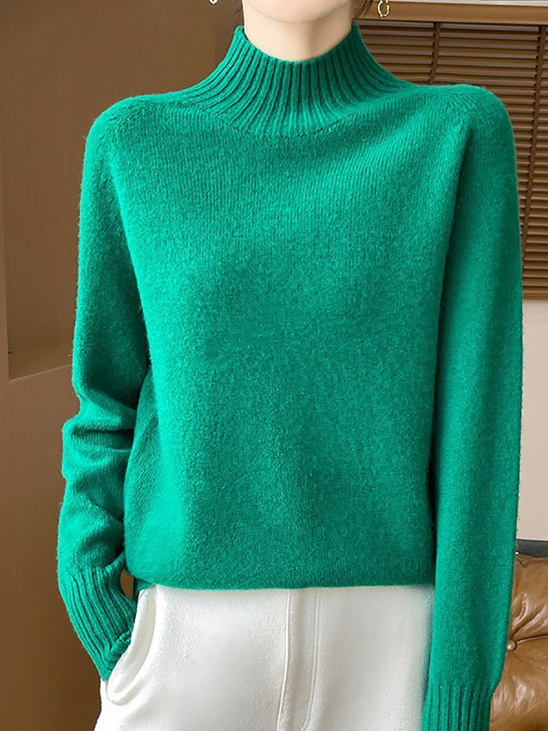 Women Autumn Artsy Pure Color Half Turtleneck Sweater