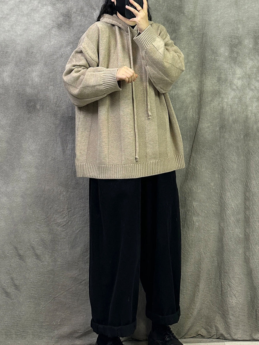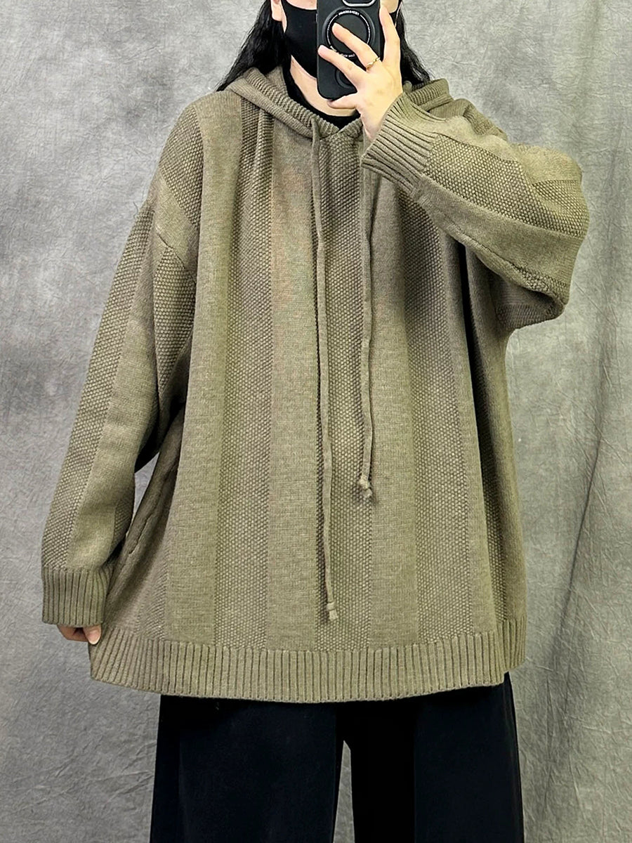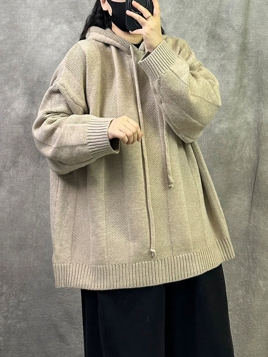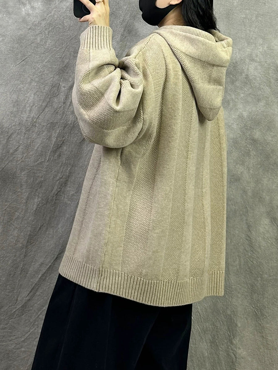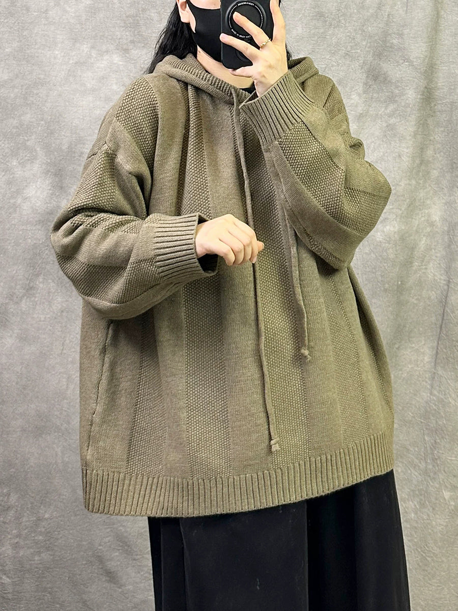 Women Autumn Artsy Pure Color Hooded Sweater