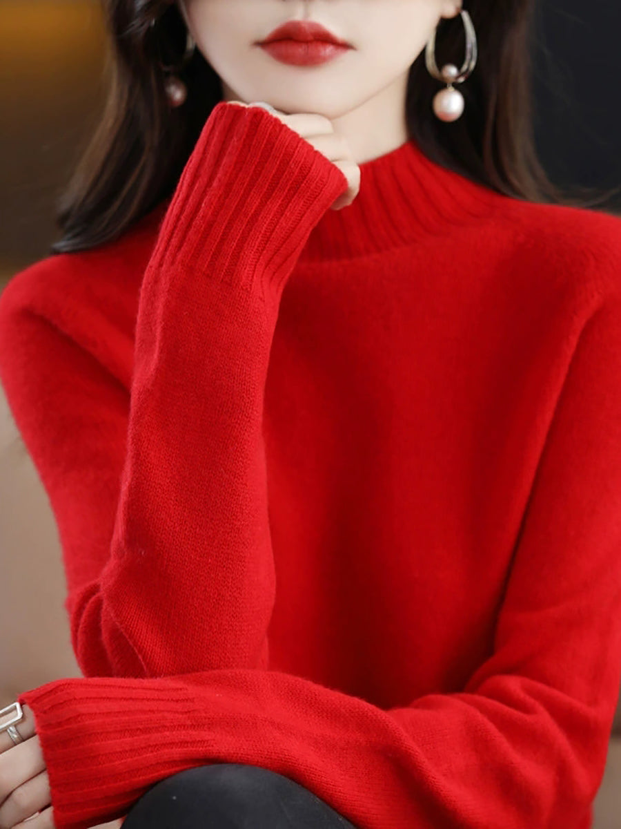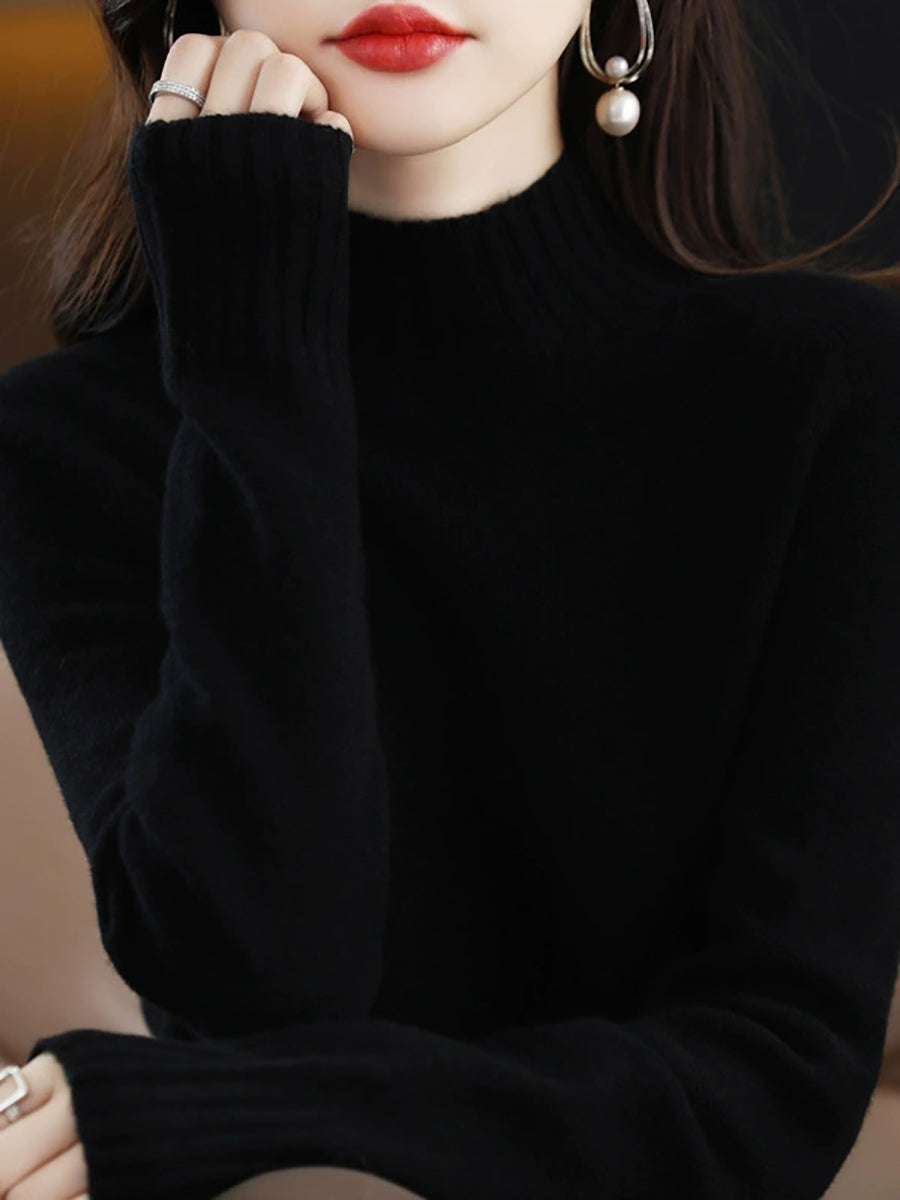 Women Autumn Artsy Pure Color Knitted Half-Turtleneck Sweater