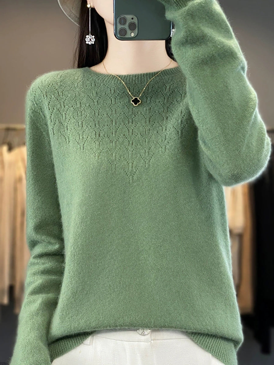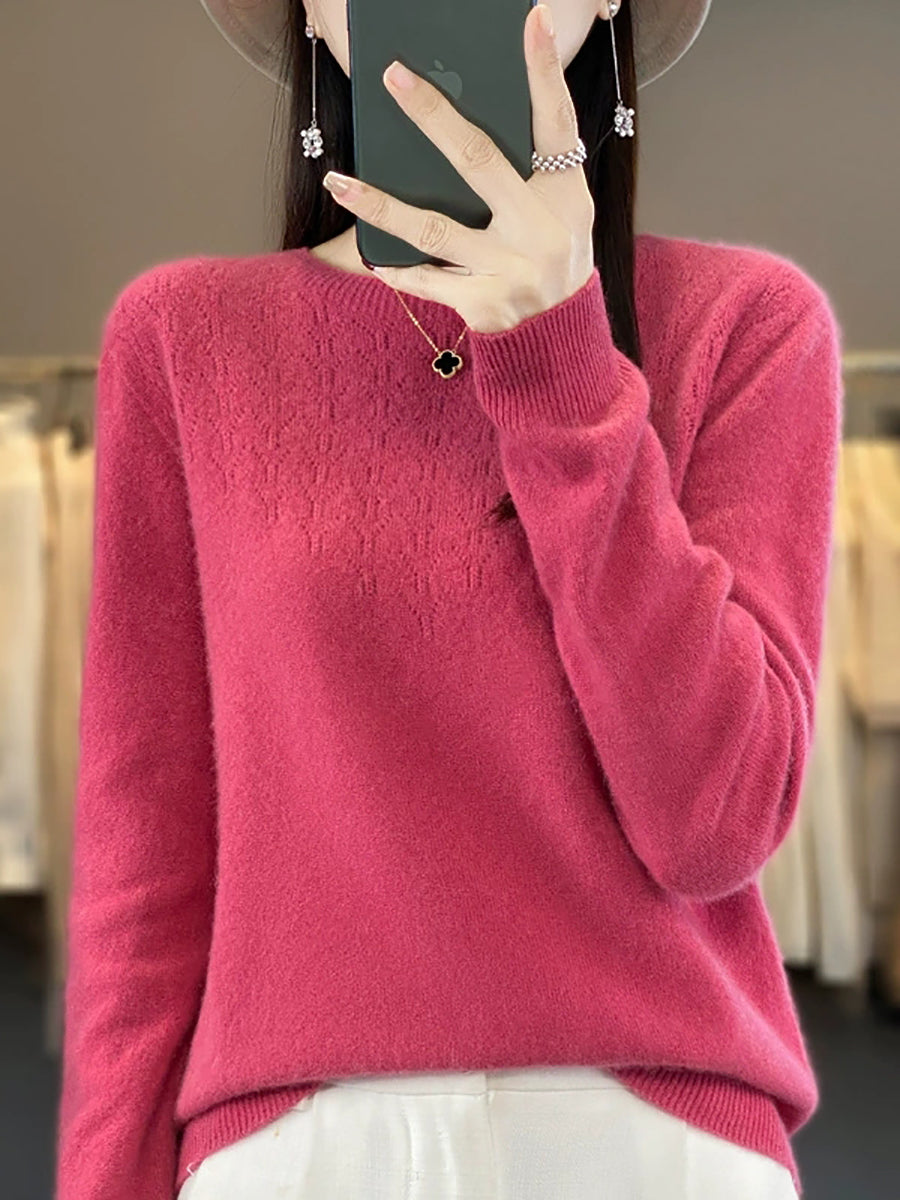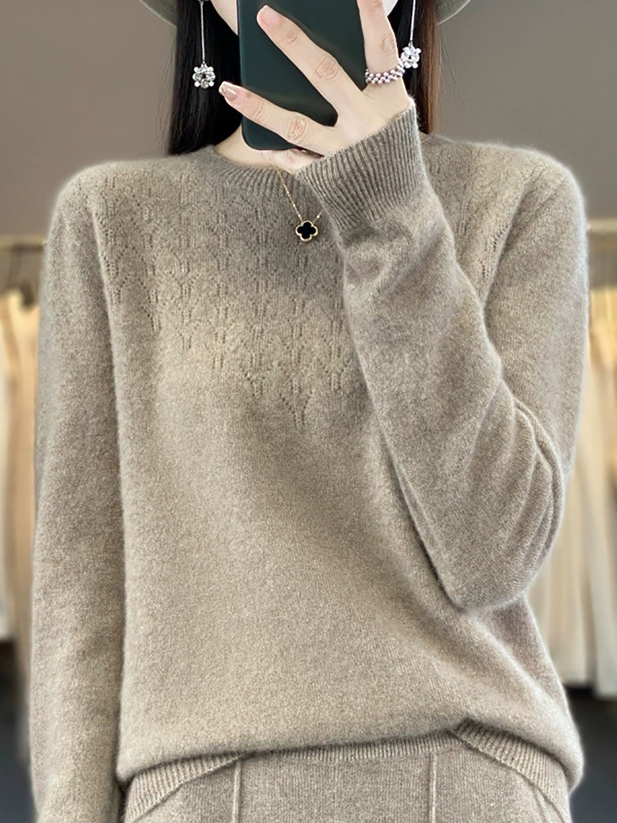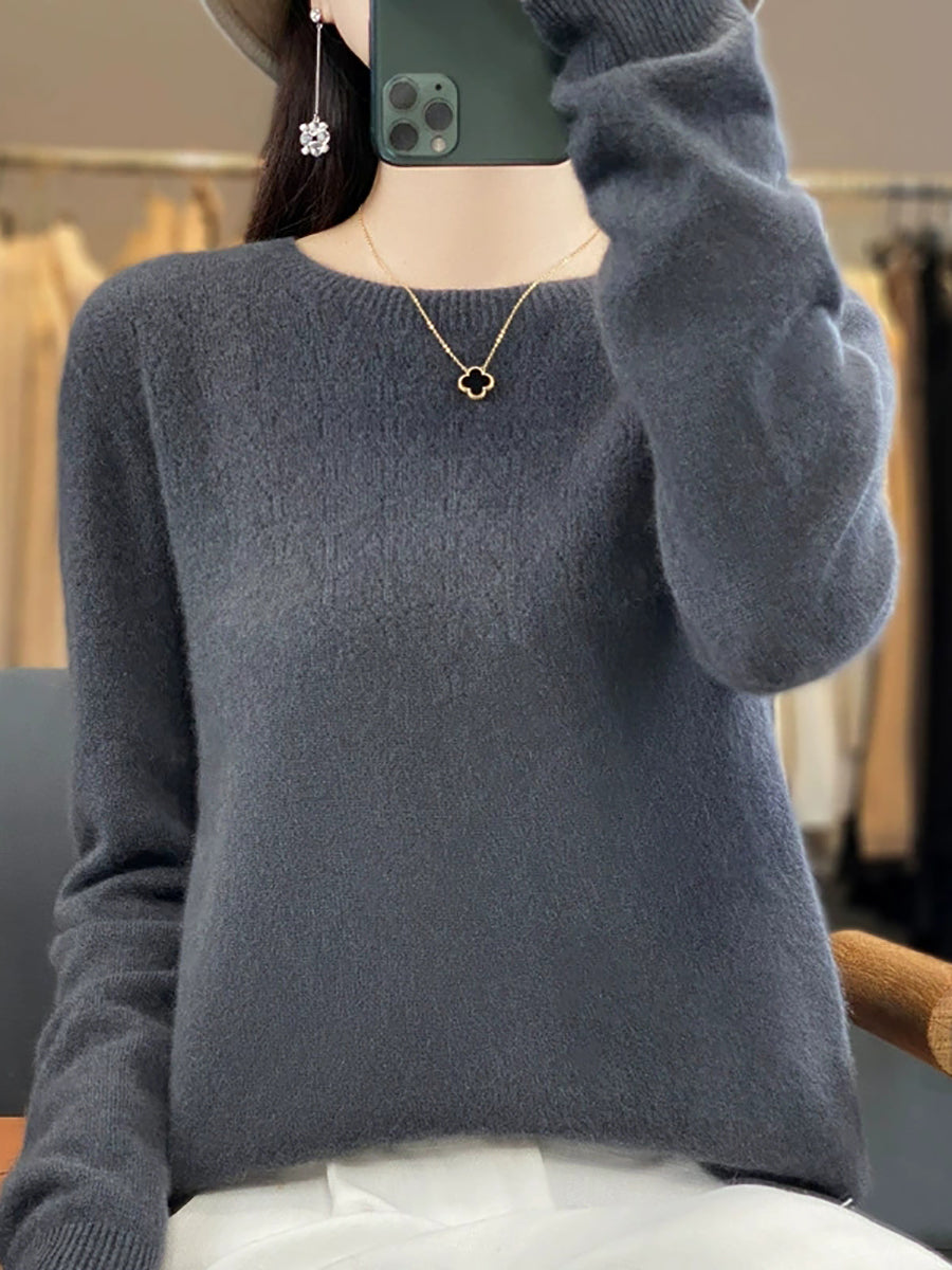 Women Autumn Artsy Pure Color O-Neck Sweater