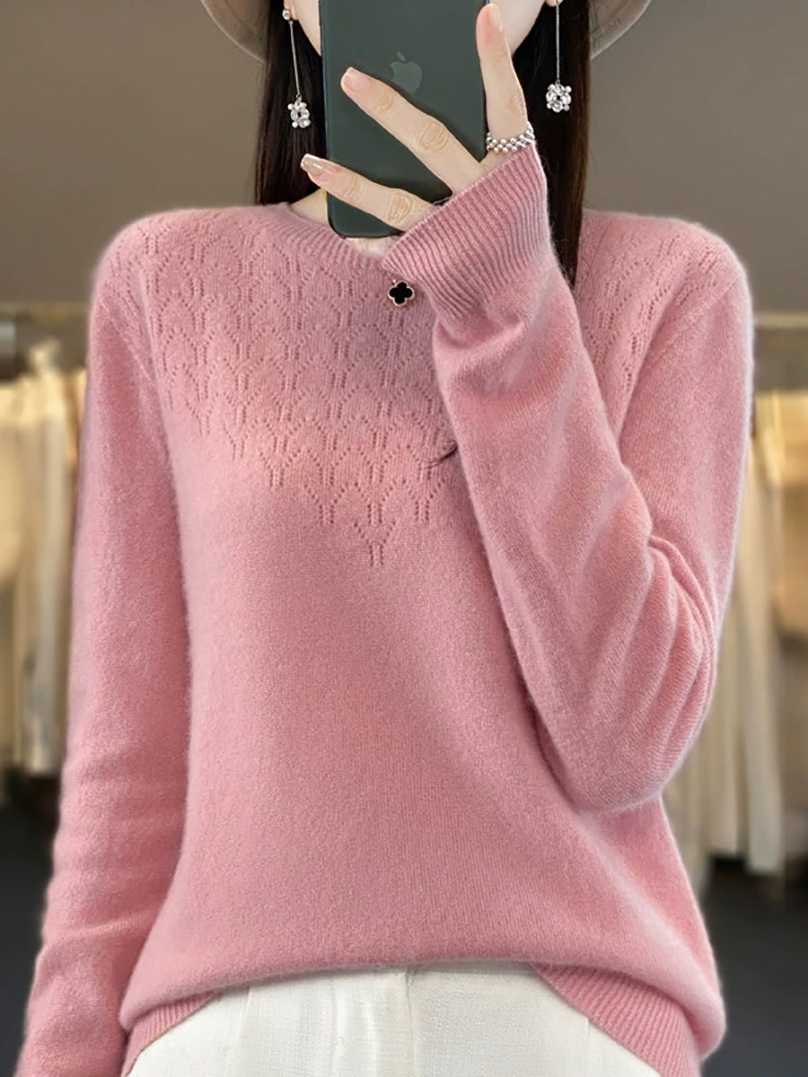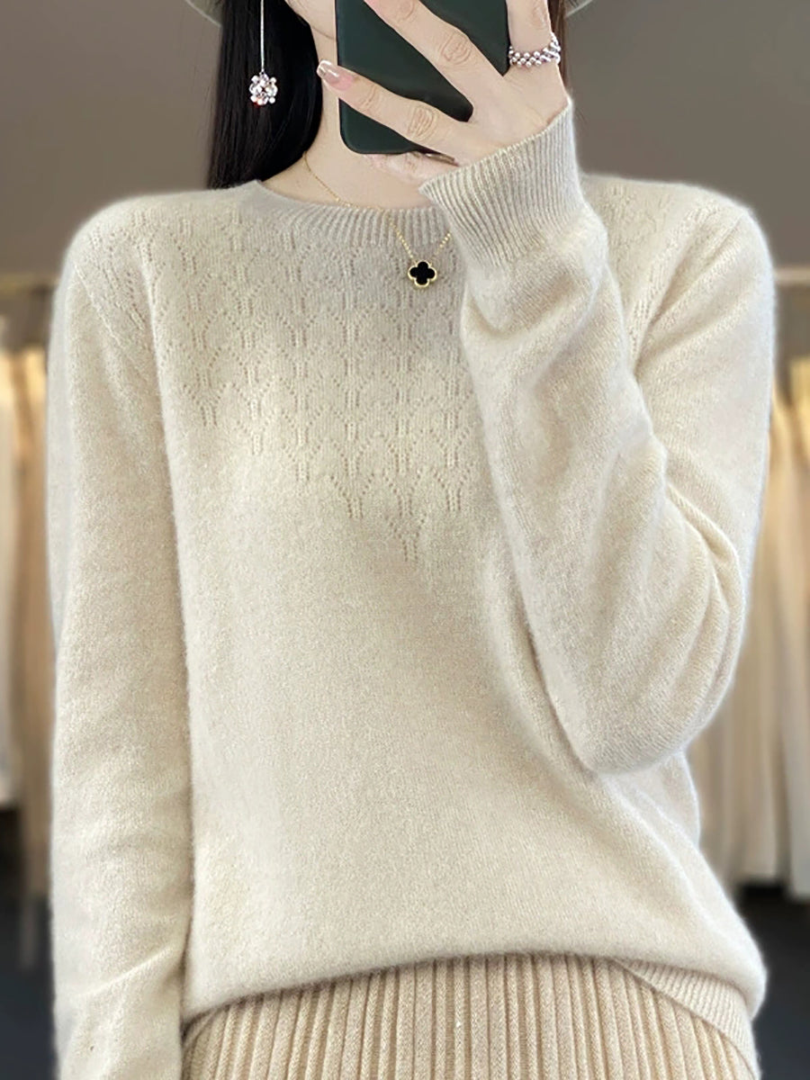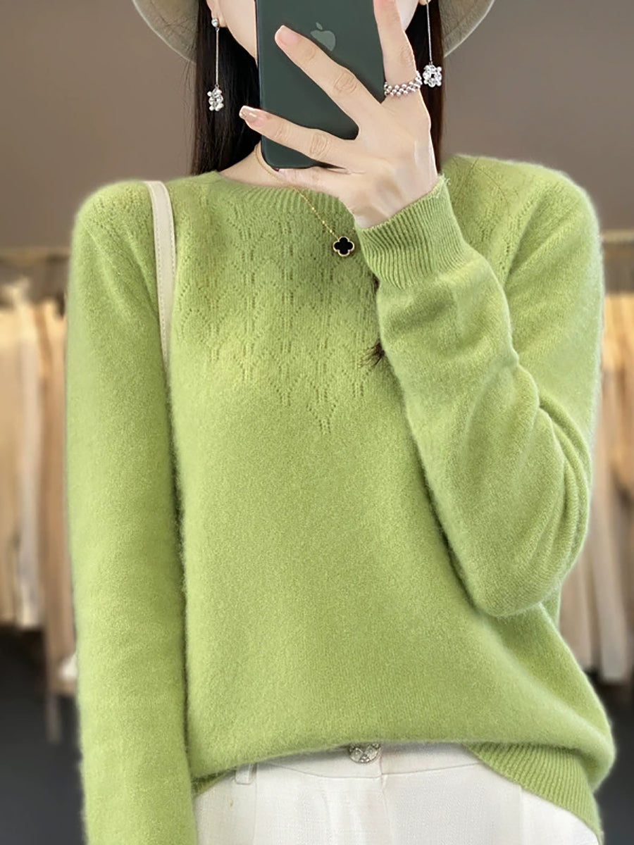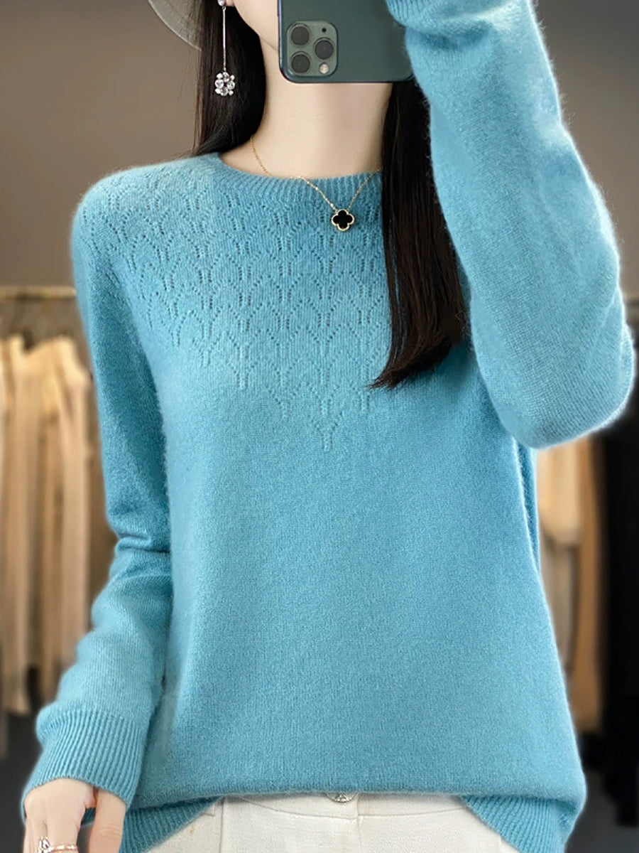 Women Autumn Artsy Pure Color O-Neck Sweater