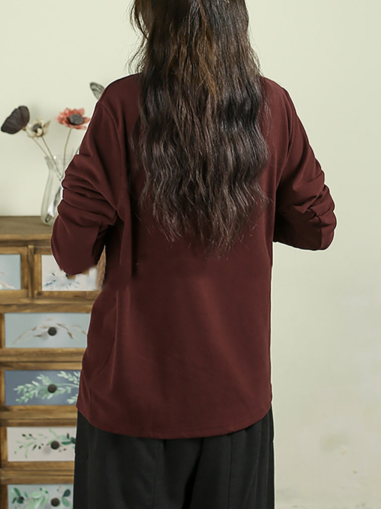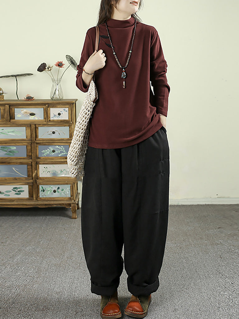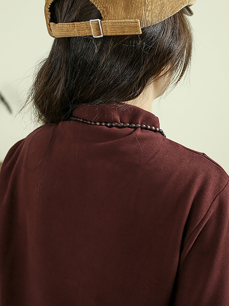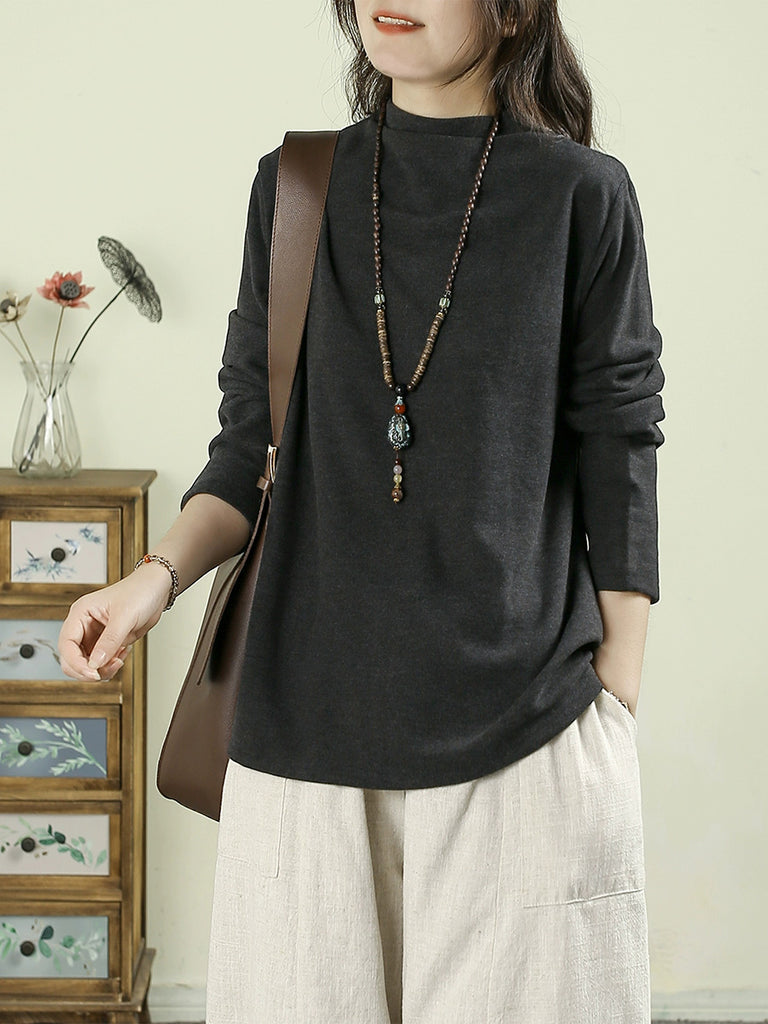 Women Autumn Casual Embroidery Half-Turtleneck Base Blouse