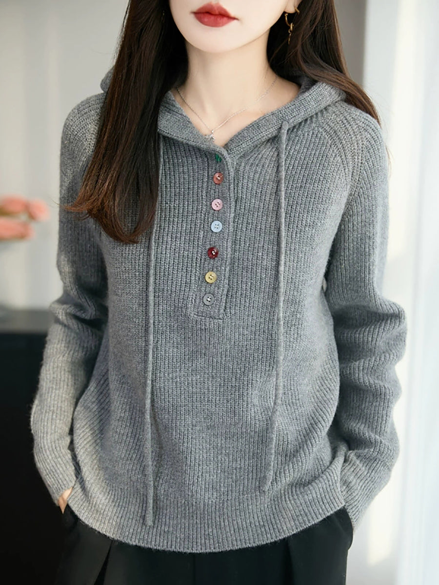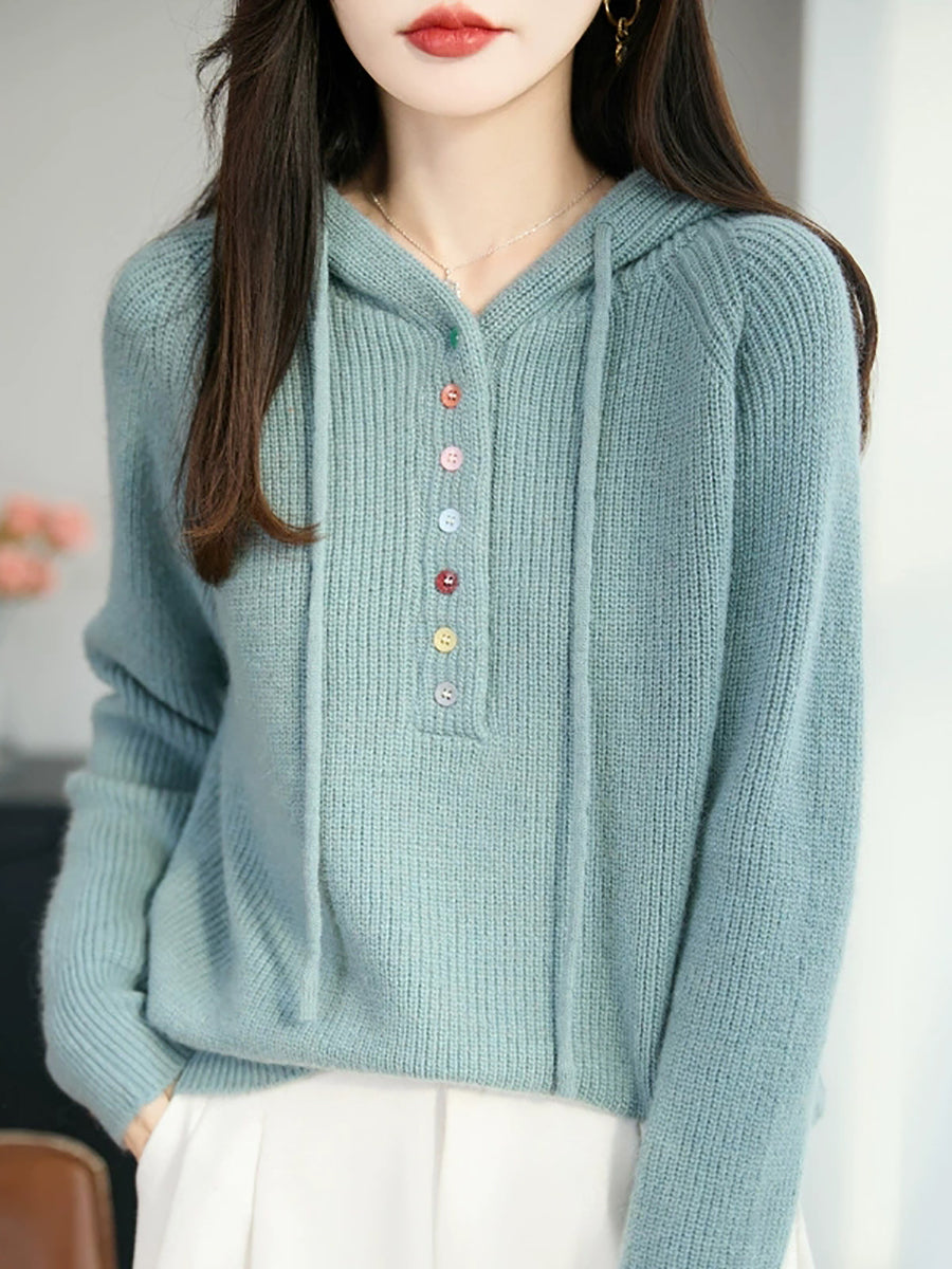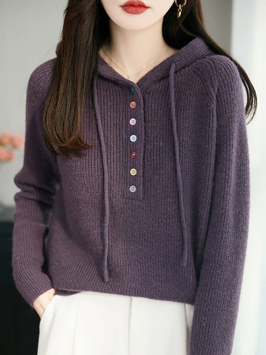 Women Autumn Casual Pure Color Hooded Sweater