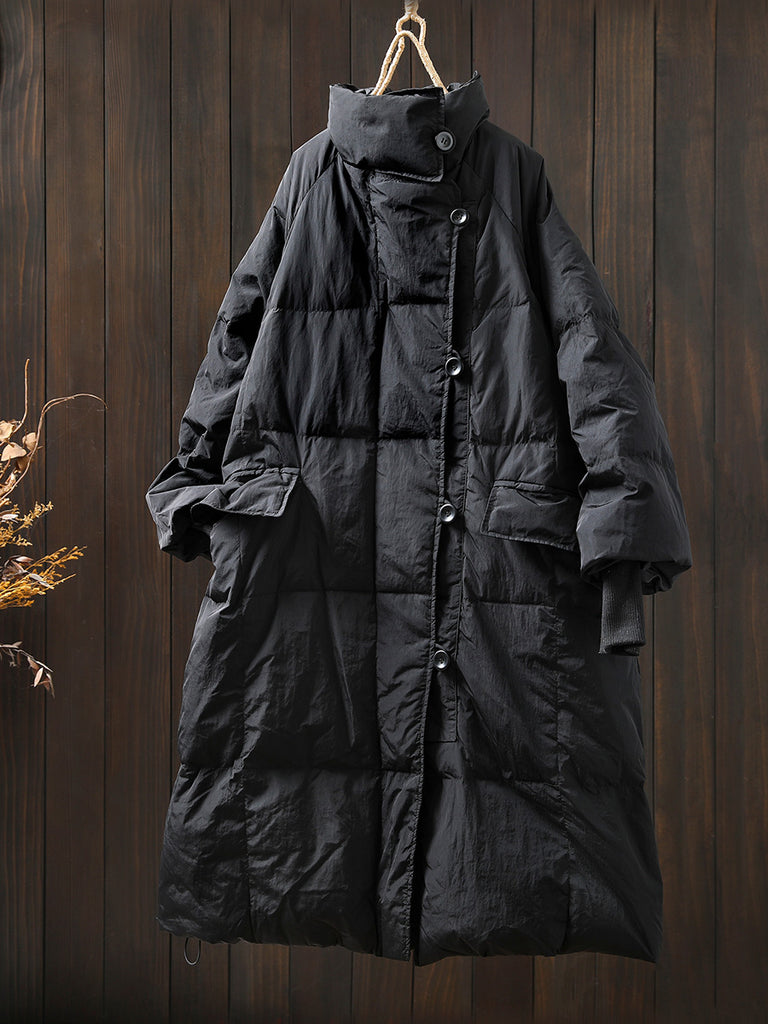 Women Autumn Casual Pure Color Stand Collar Down Coat