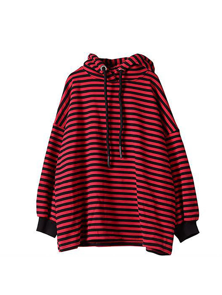 Women Autumn Casual Stripe Fleece-lined Hoodie