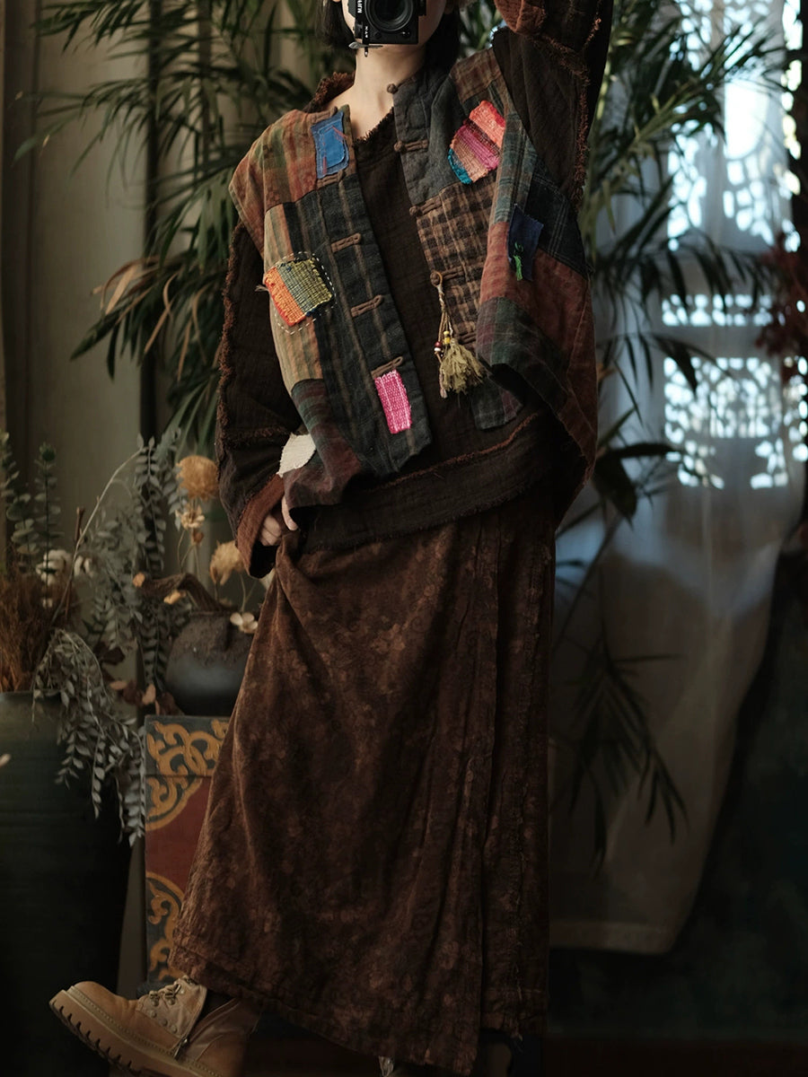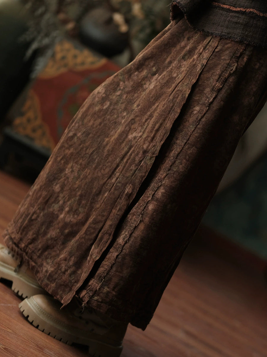 Women Autumn Retro Flower Cotton Straight Skirt