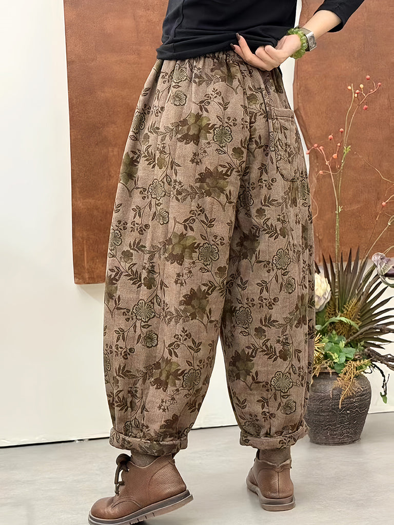 Women Winter Retro Flower Harem Padded Pants