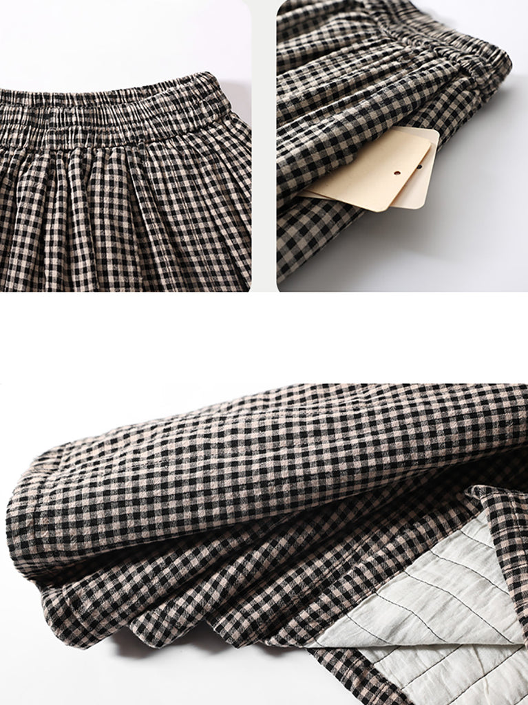 Women Autumn Retro Plaid A-Shape 100%Cotton Skirt