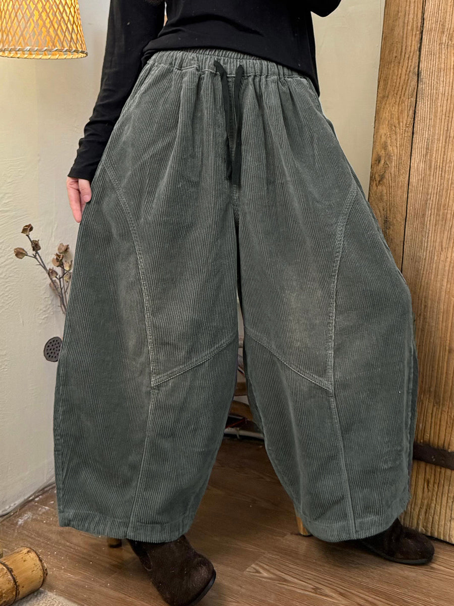 Women Autumn Retro Pure Color Corduroy Harem Pants