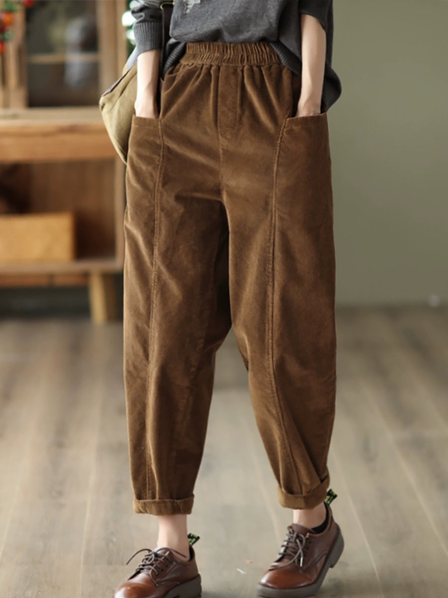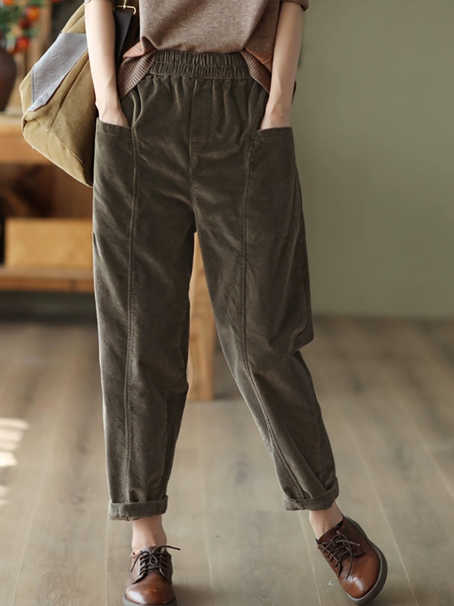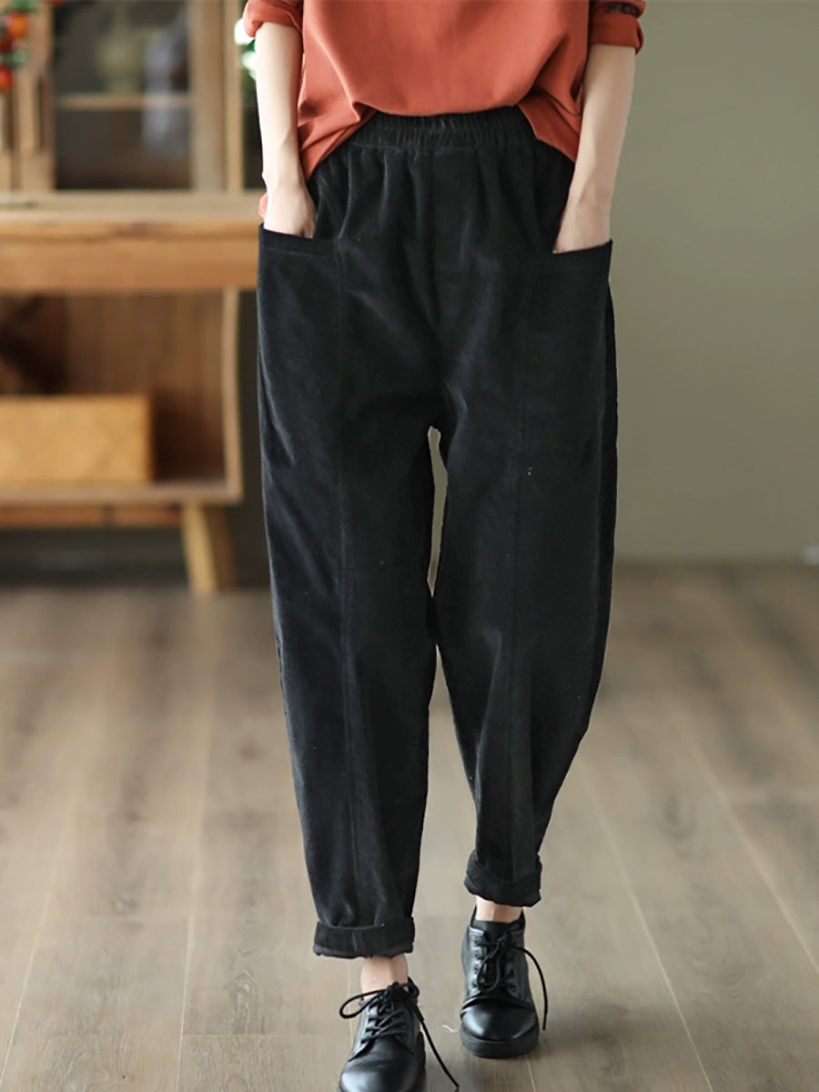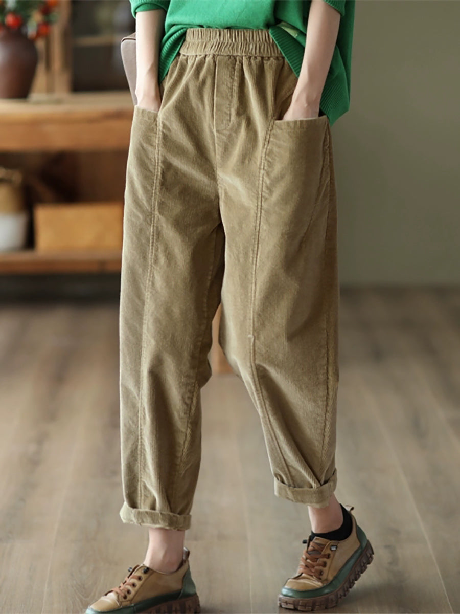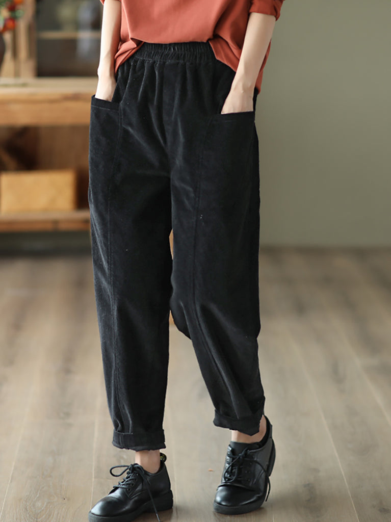 Women Autumn Retro Pure Color Corduroy Harem Pants