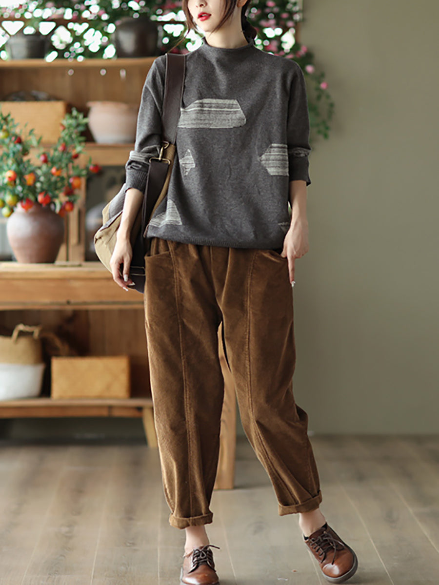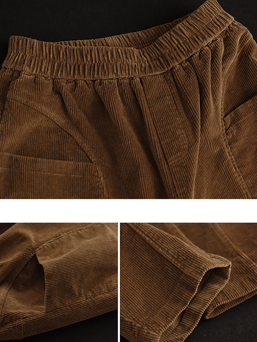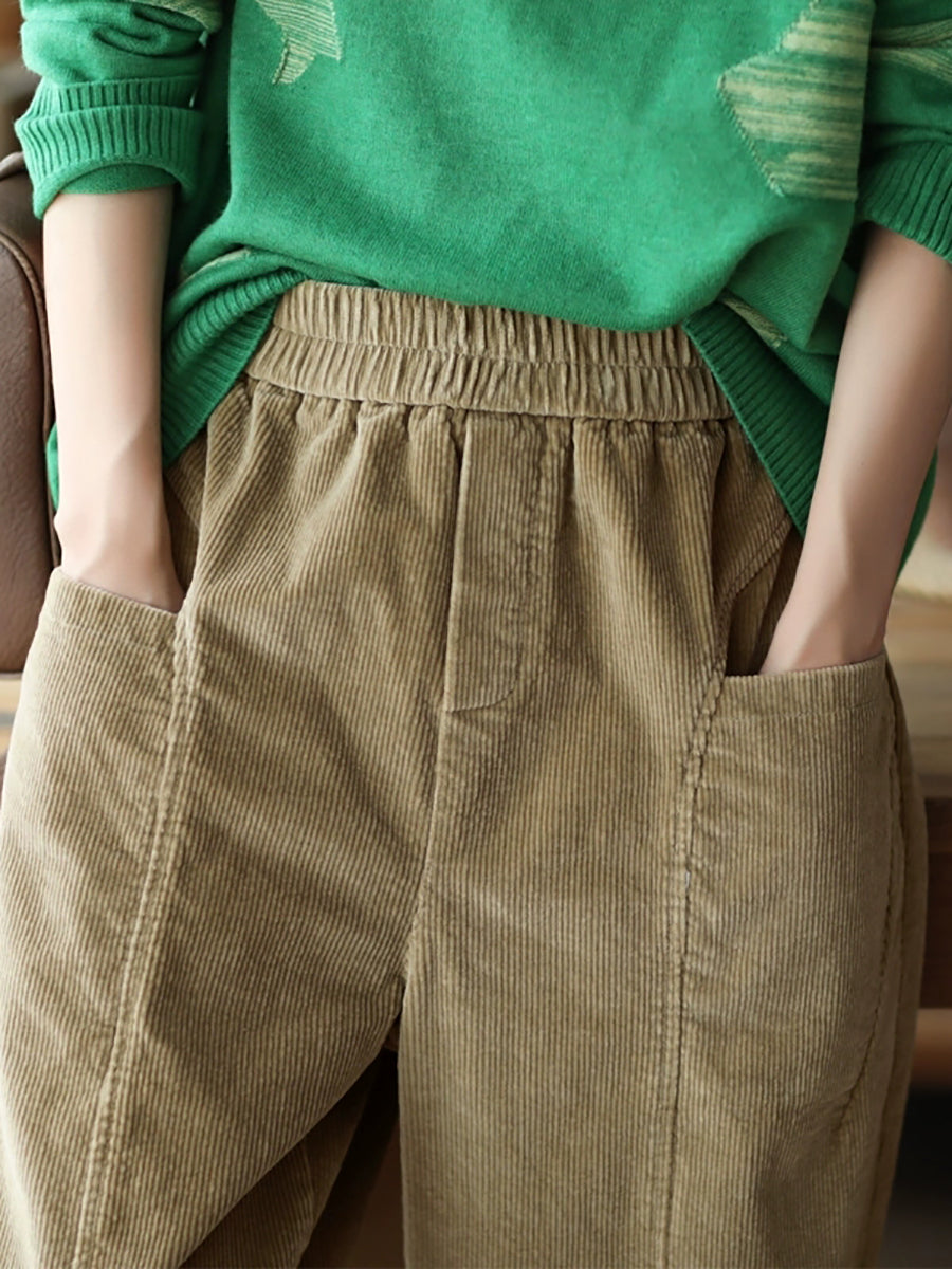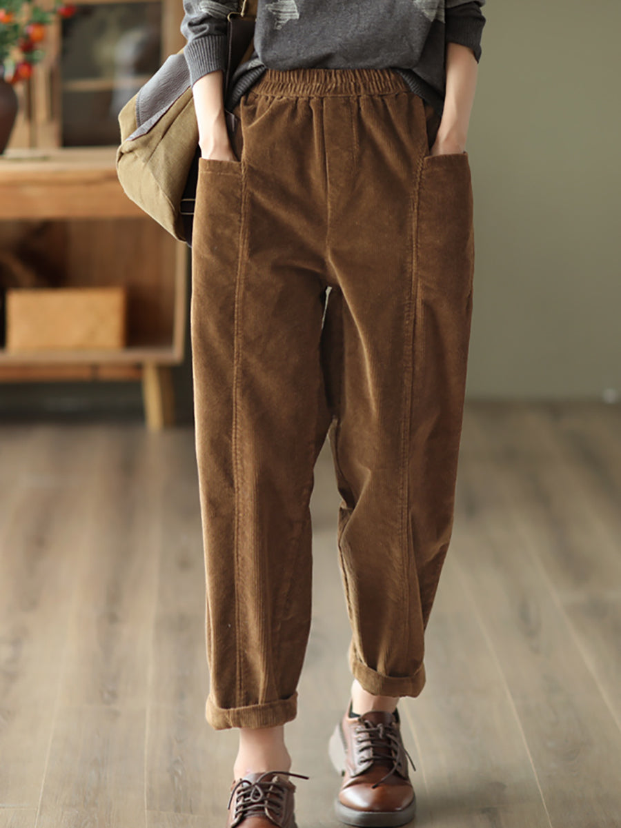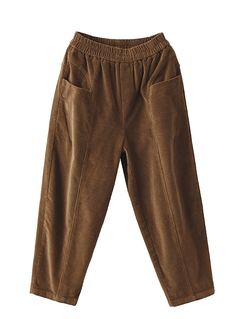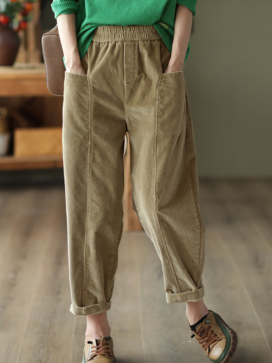Women Autumn Retro Pure Color Corduroy Harem Pants