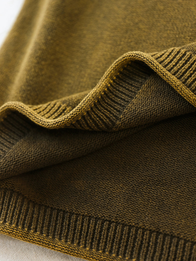 Women Autumn Retro Spliced 100%Cotton O-Neck Sweater