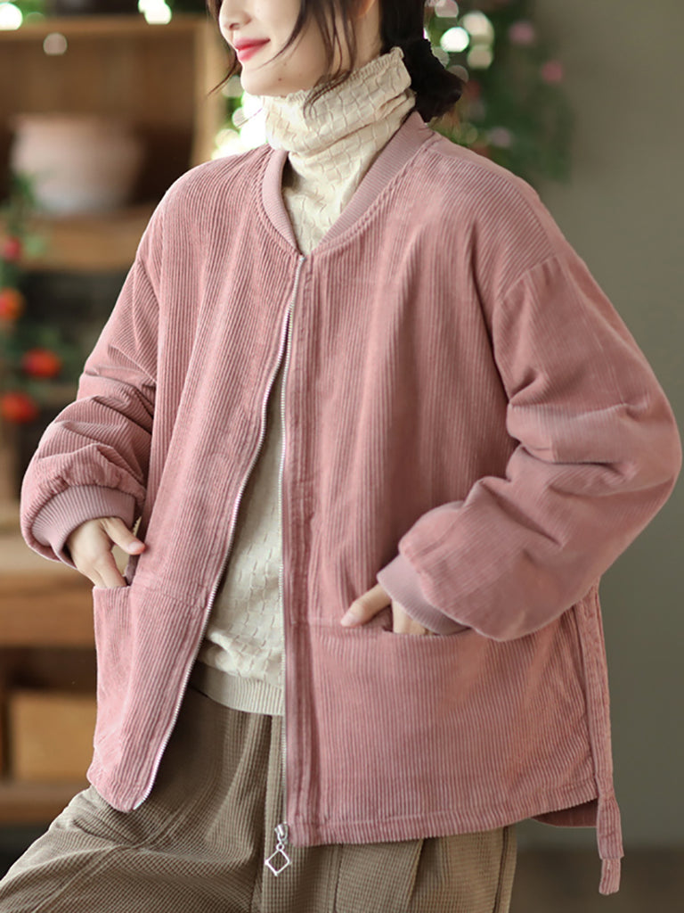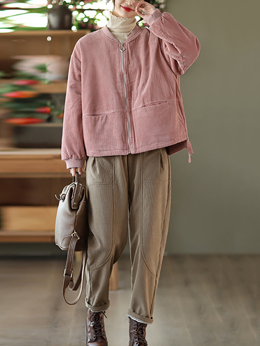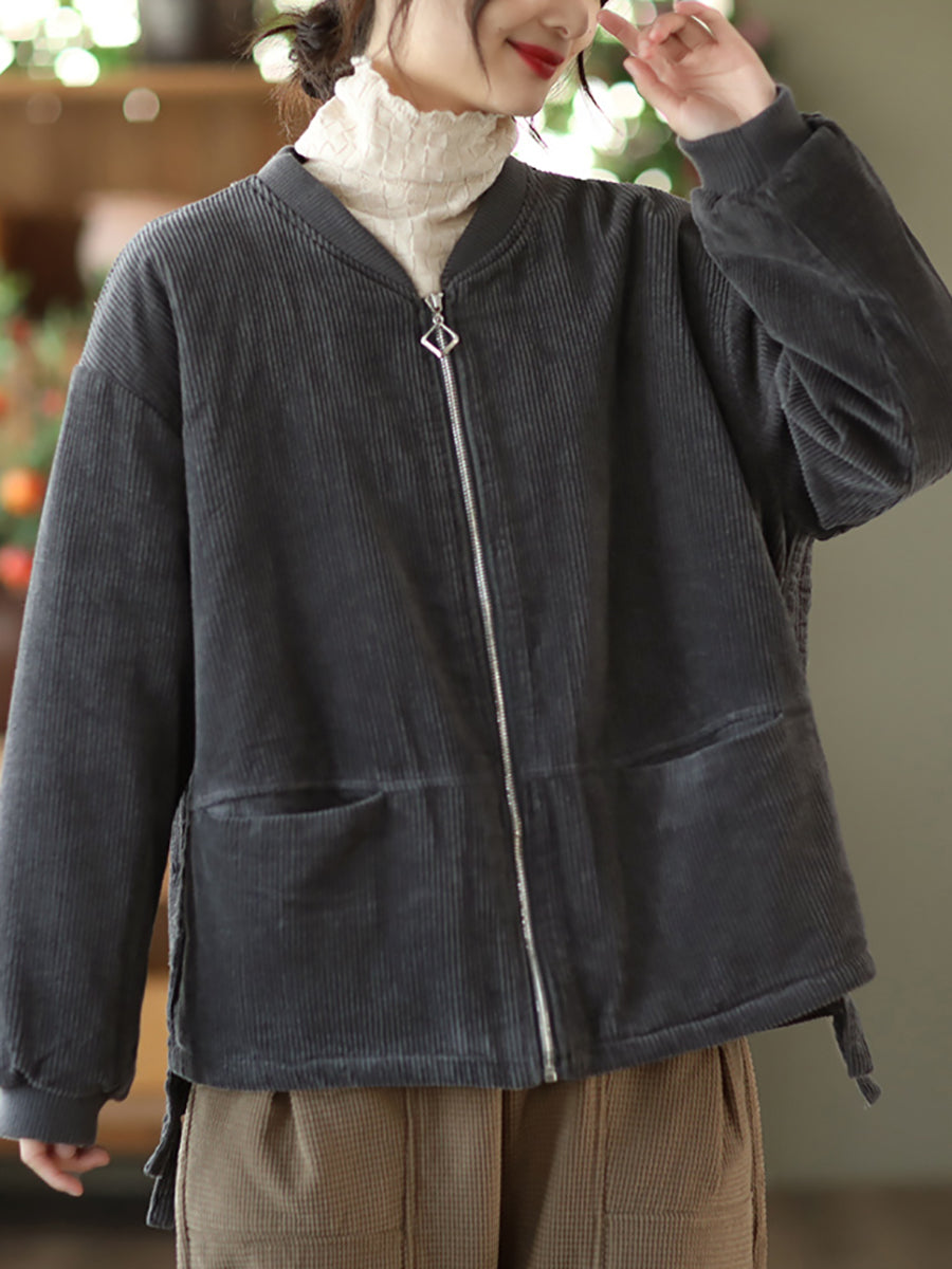 Women Autumn Vintage Pure Color Corduroy Jacket