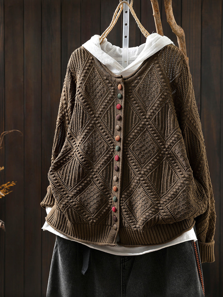 Women Autumn Vintage Rhomboids Knitted O-Neck Sweater