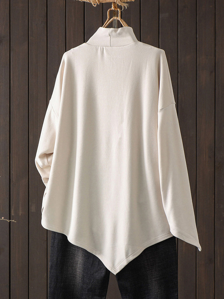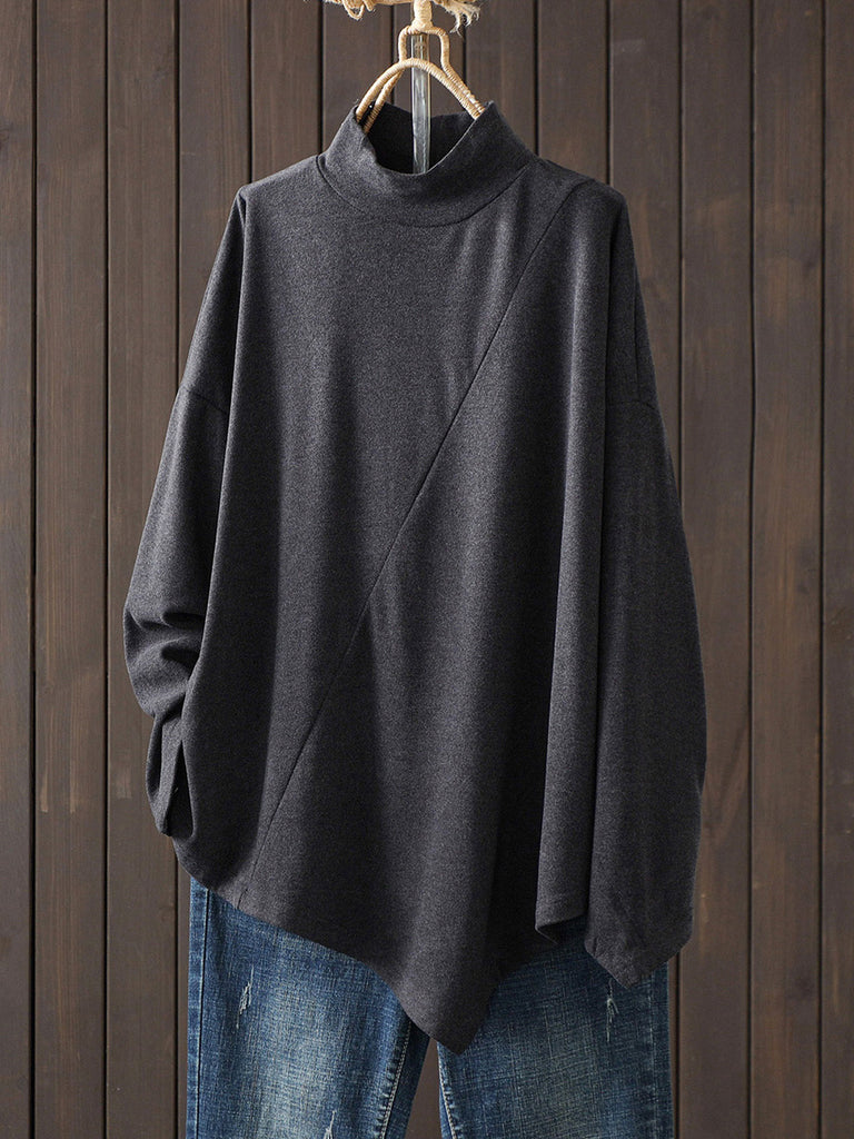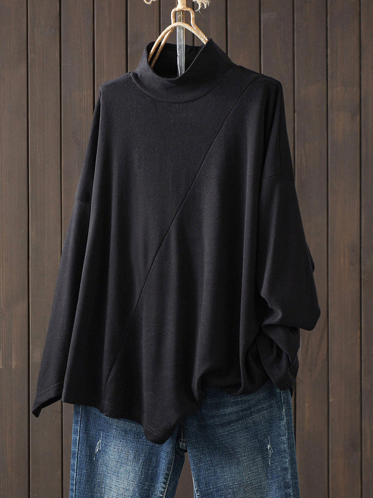 Women Casual Autumn Pure Color Turtleneck Blouse