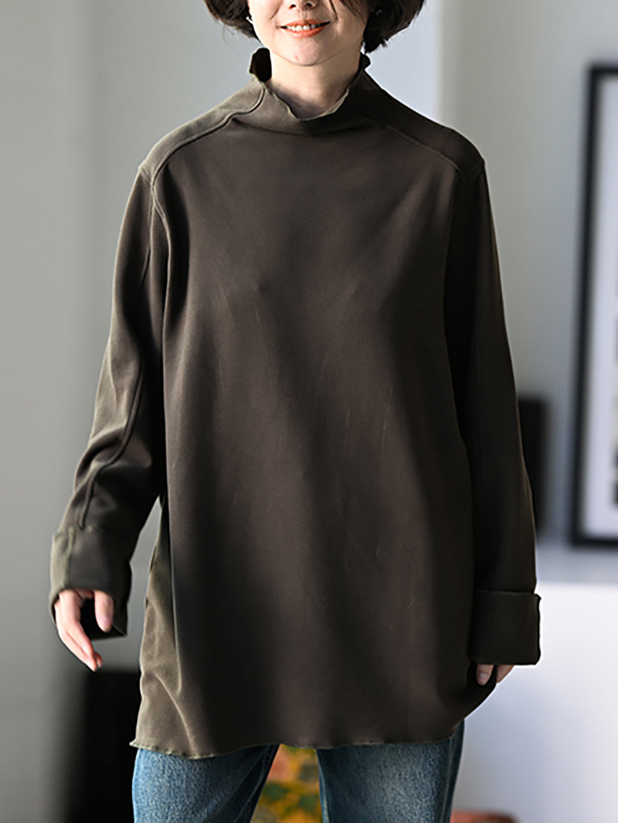 Women Casual Autumn Pure Color Turtleneck Blouse