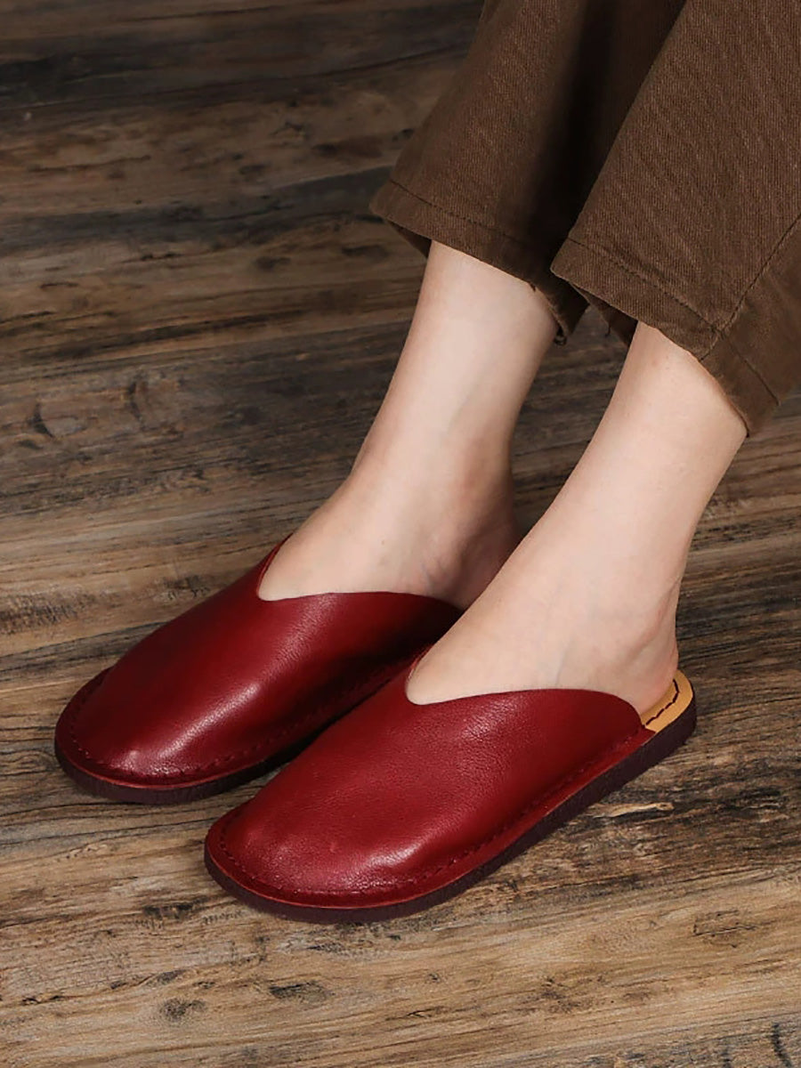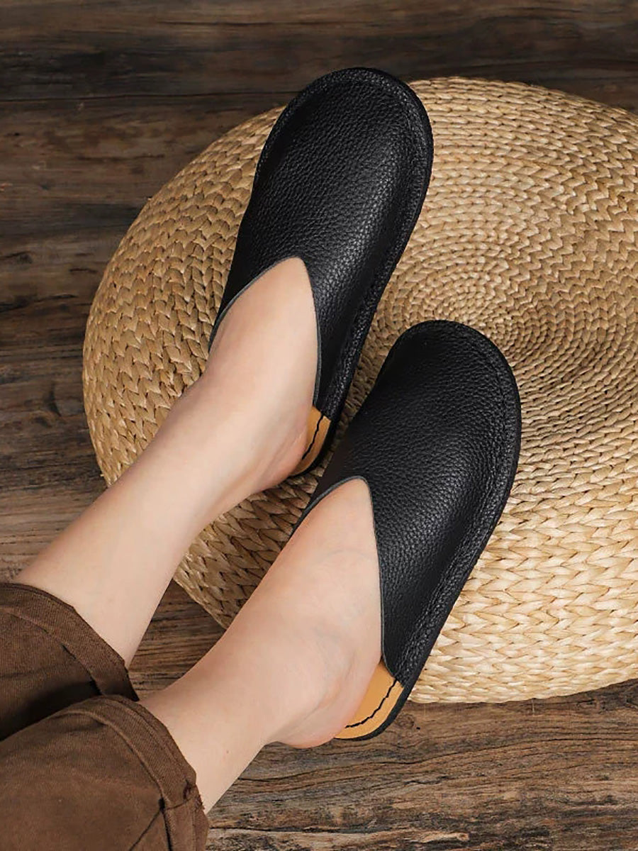 Women Casual Genuine Leather Flat Slippers