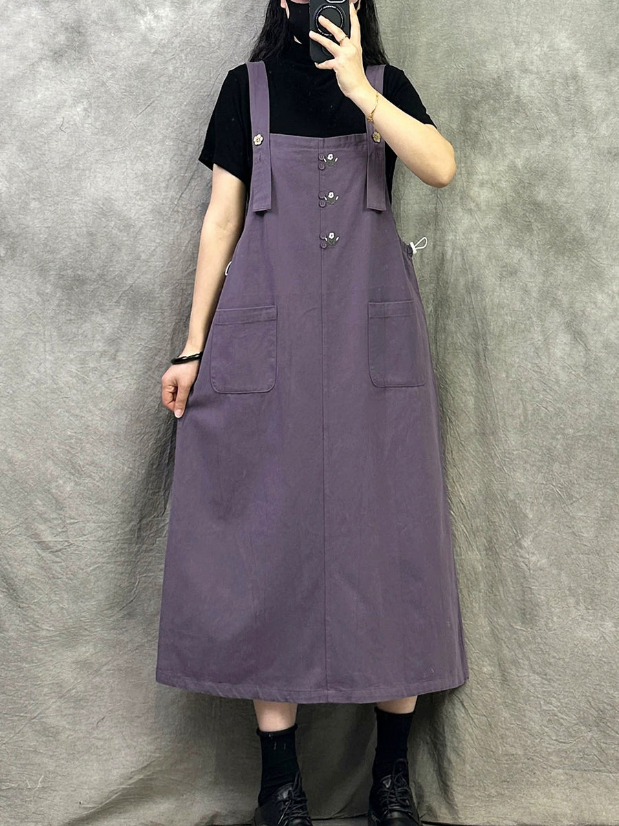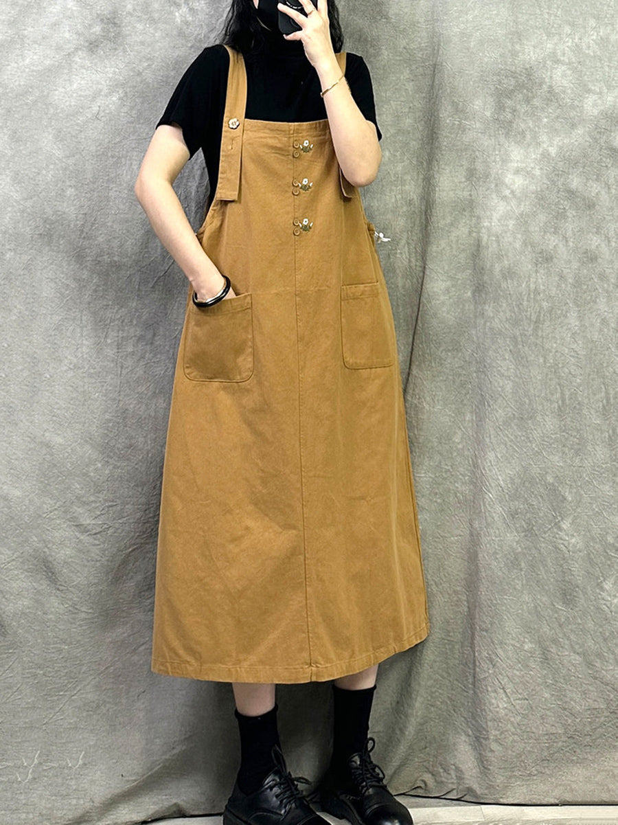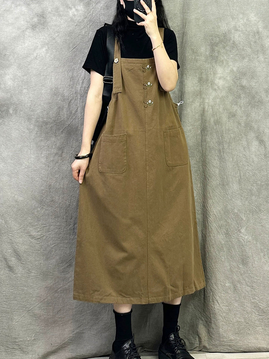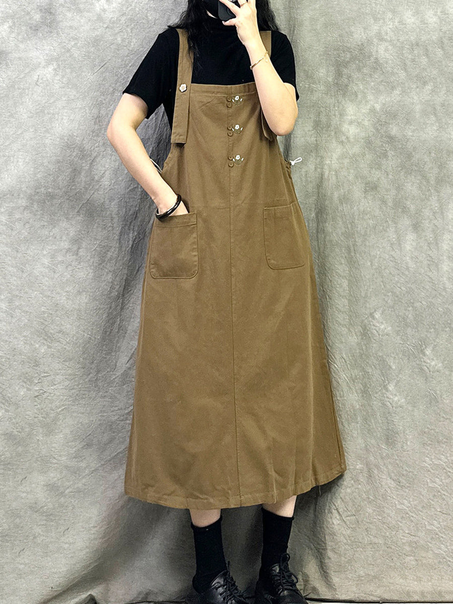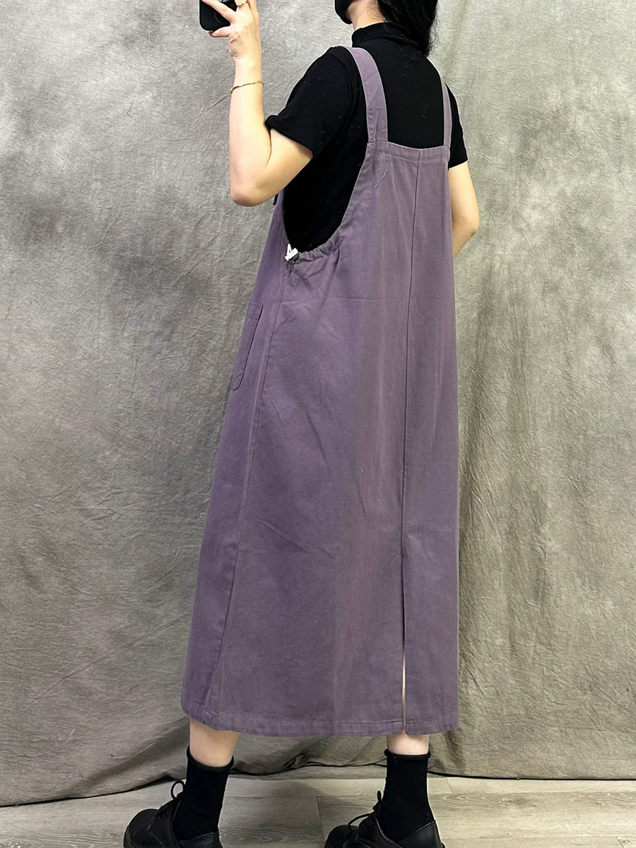 Women Casual Pure Color Cotton Overall Dress