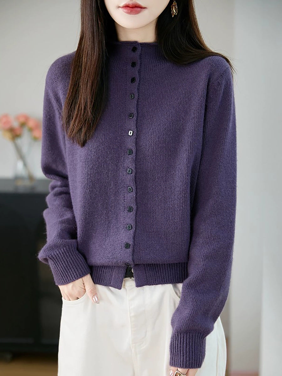 Women Casual Spring Pure Color Half-turtleneck Sweater