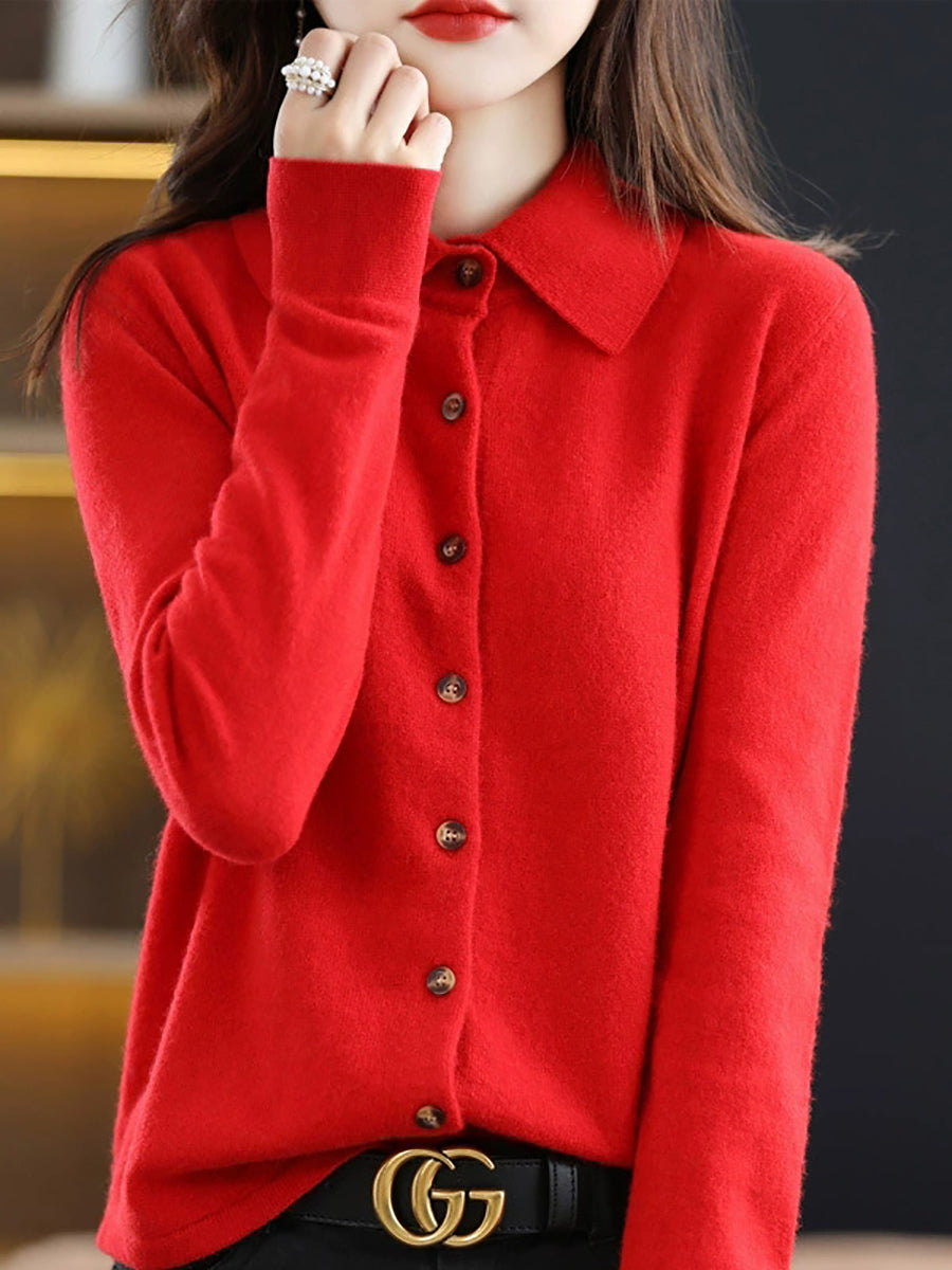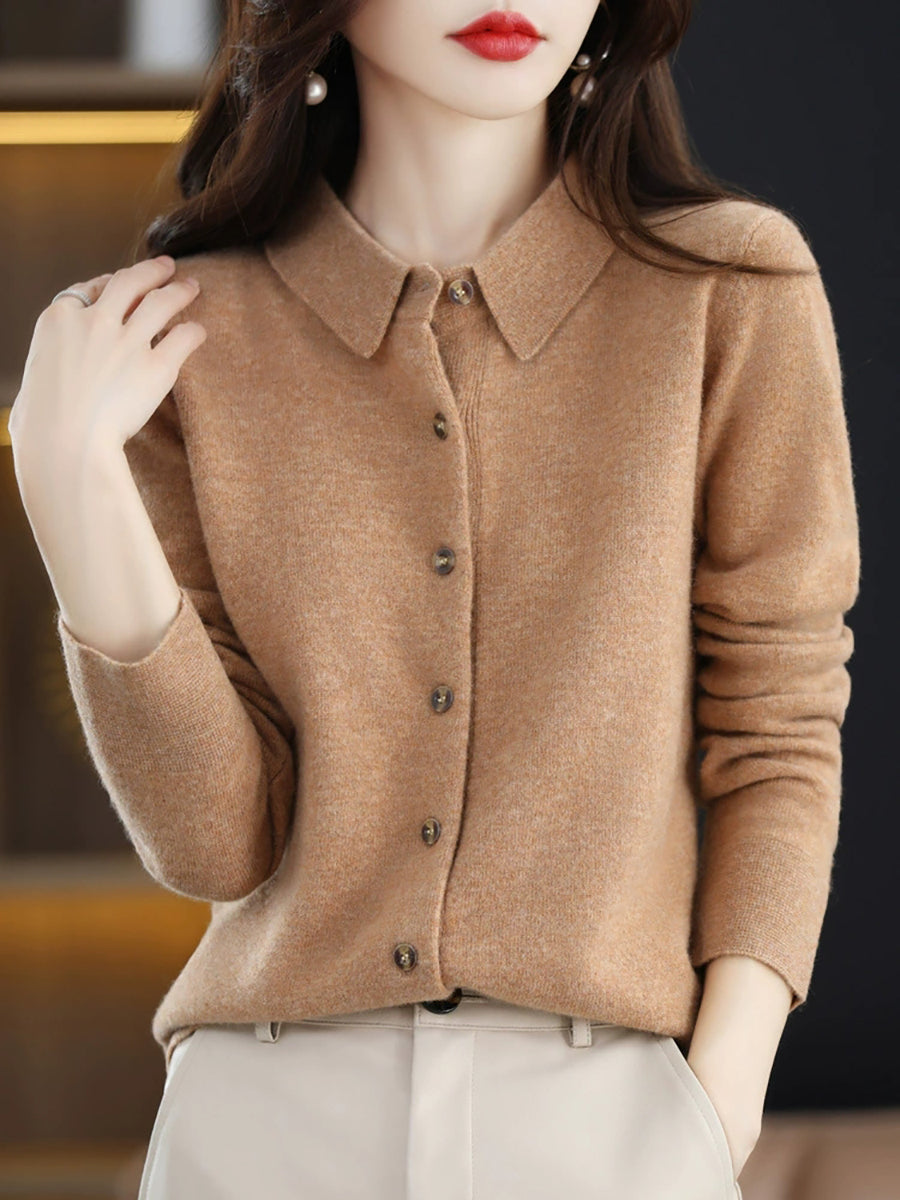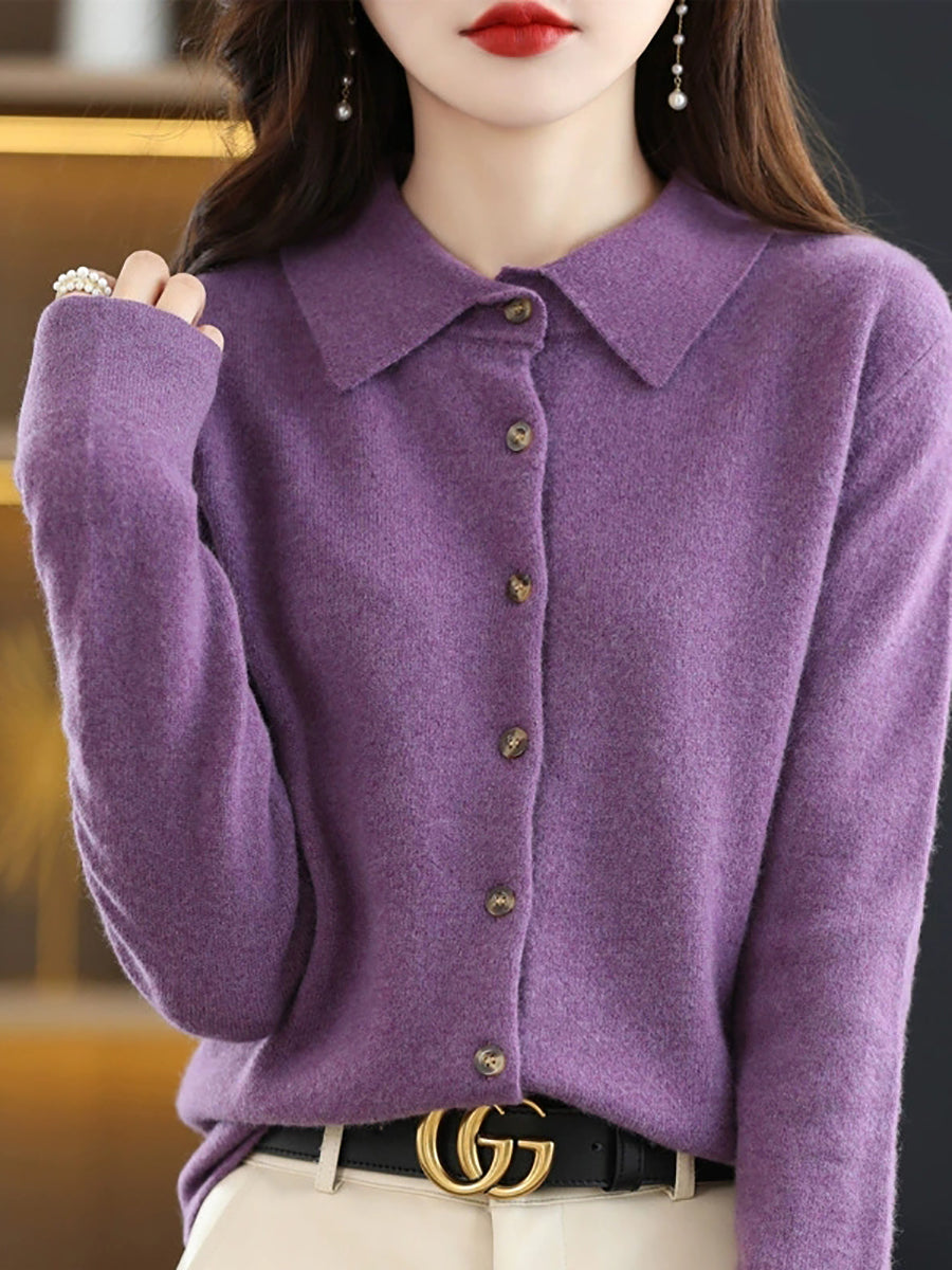 Women Casual Spring Turn-down Collar Cardigan Sweater